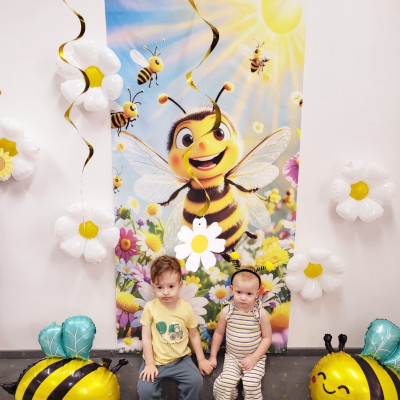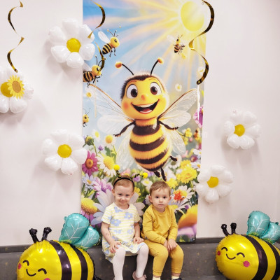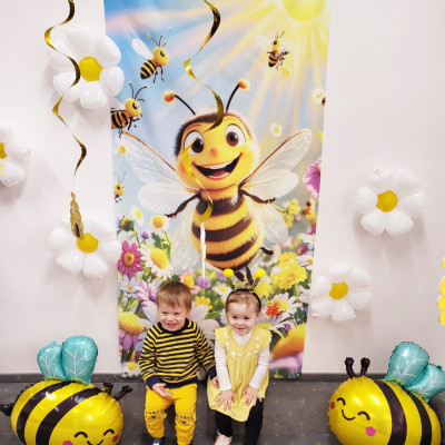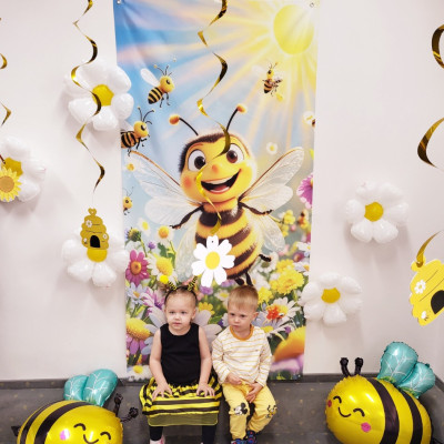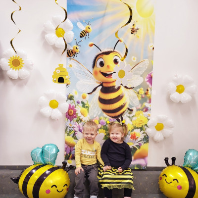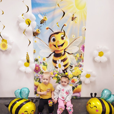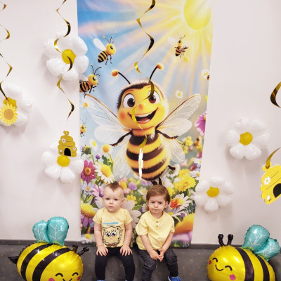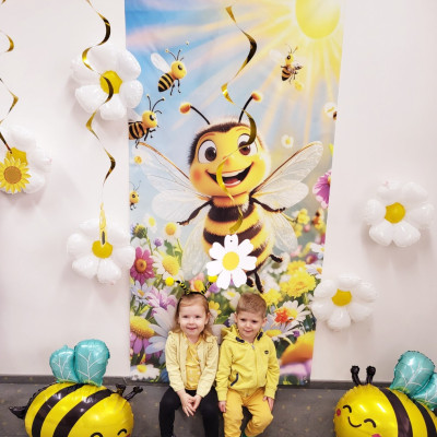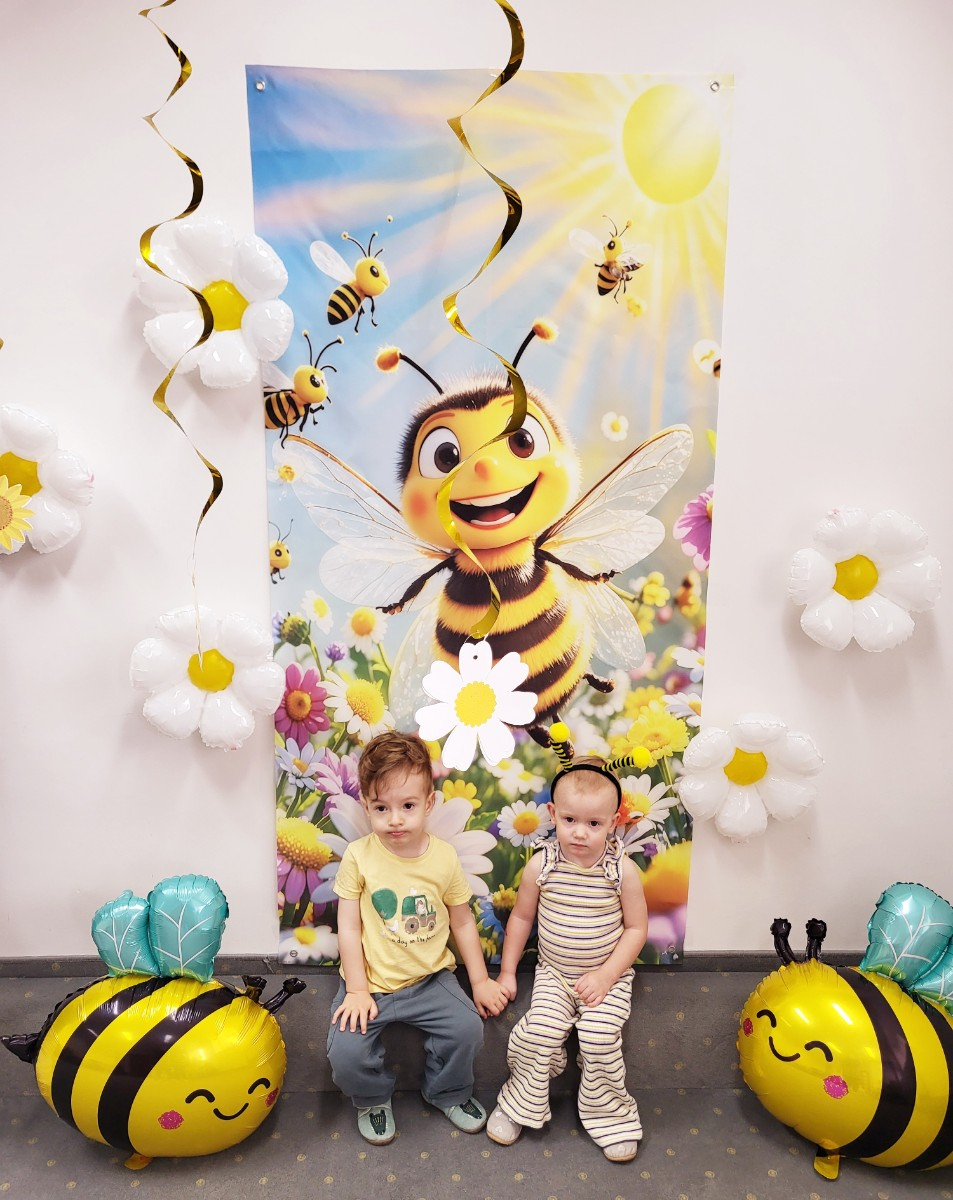 Zdjęcie przedstawia dzieci podczas sesji zdjęciowej