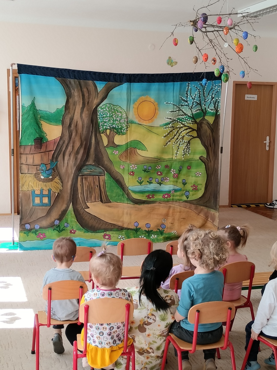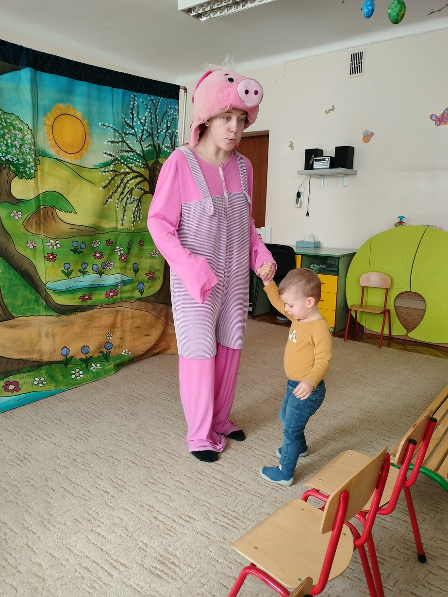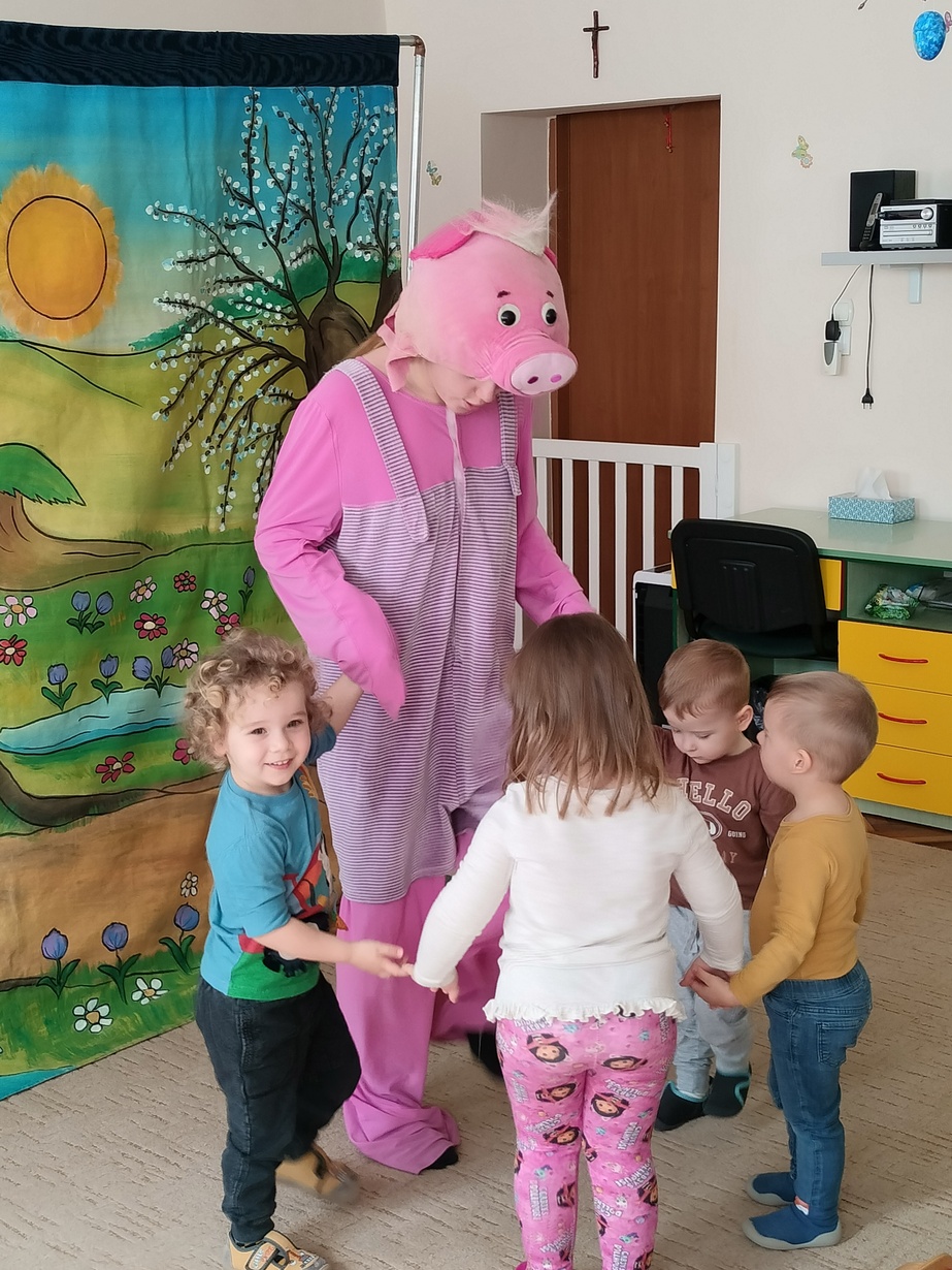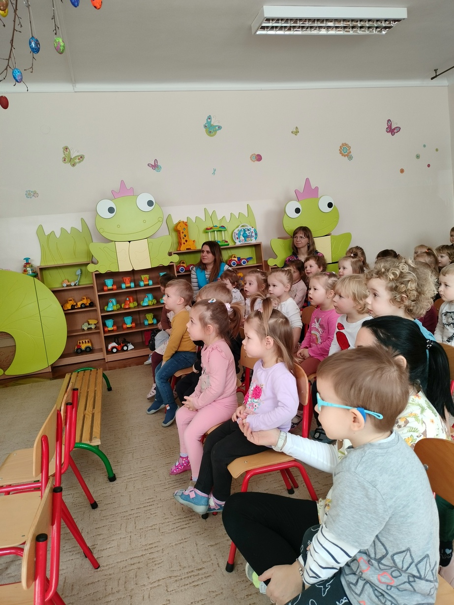 We wtorek 26 marca dzieci z grupy III i IV brały udział w spektaklu teatralnym pt. "Wiosna u Kubusia Puchatka" zaprezentowanym przez aktorów z grupy teatralnej "Krak -Art" z Krakowa. Głównym bohaterem przedstawienia był oczywiście Kubuś Puchatek, który budzi się pewnego ranka i wyczuwa zmiany jakie zaszły w przyrodzie??. W związku z tym wyrusza na poszukiwanie prawdziwej wiosny. Tymczasem, jego przyjaciele ze Stumilowego Lasu już rozpoczęli przygotowania do powitania Pani Wiosny. Dzieci czynnie brały udział w całym przedstawieniu tańczyły, pomagały Królikowi i Kłapouchemu i dobrze się przy tym bawiły?.