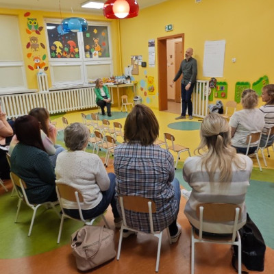 07.11.2025 r. pracownicy Filli Żłobka nr 3 uczestniczyli w spotkaniu szkoleniowym, ze standardów opieki nad dzieckiem do lat 3, które wchodzą w życie 01.01.2026 r. Szkolenie prowadził Pan Przemysław Chruściel psycholog/terapeuta z fundacji Profil z Rzeszowa. W spotkaniu również uczestniczyła Dyrektor Zespołu Żłobków Miejskich, Pani Monika Kośla. Następnie odbyło się spotkanie z rodzicami dzieci uczęszczających do naszej Filii ,którym również zostały przybliżone standardy wchodzące w życie, Pan Przemysław opowiedział o tym jak wyglądały Mentoringi, które przeprowadzał w naszej placówce, a rodzice mieli okazję do zadania pytań. Dziękujemy wszystkim rodzicom, którzy zechcieli uczestniczyć w spotkaniu.