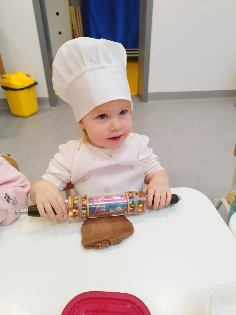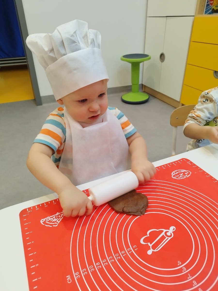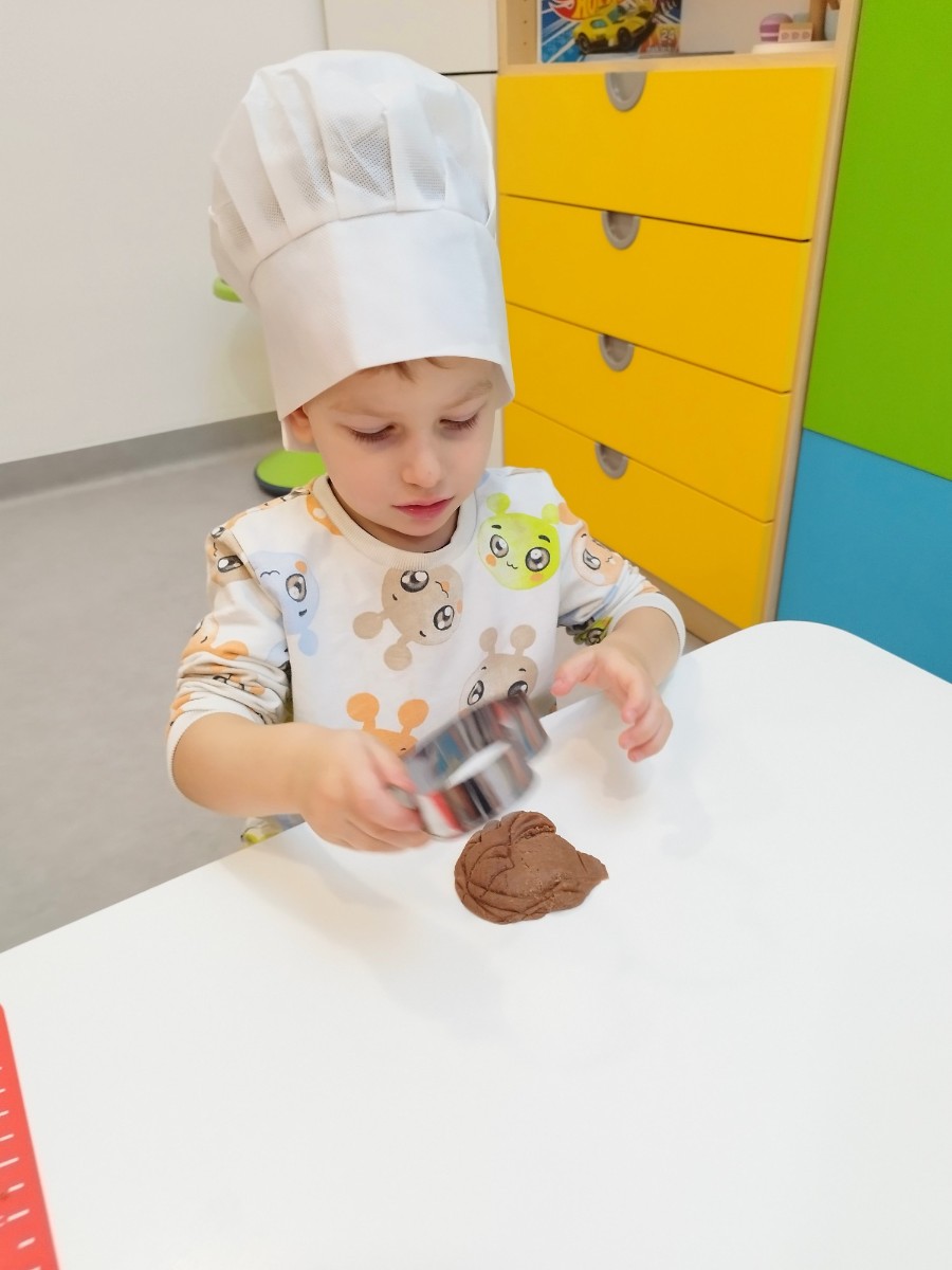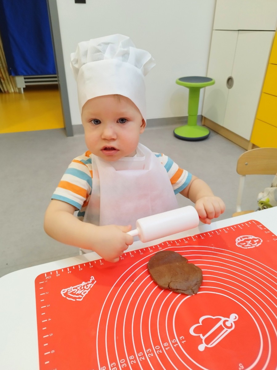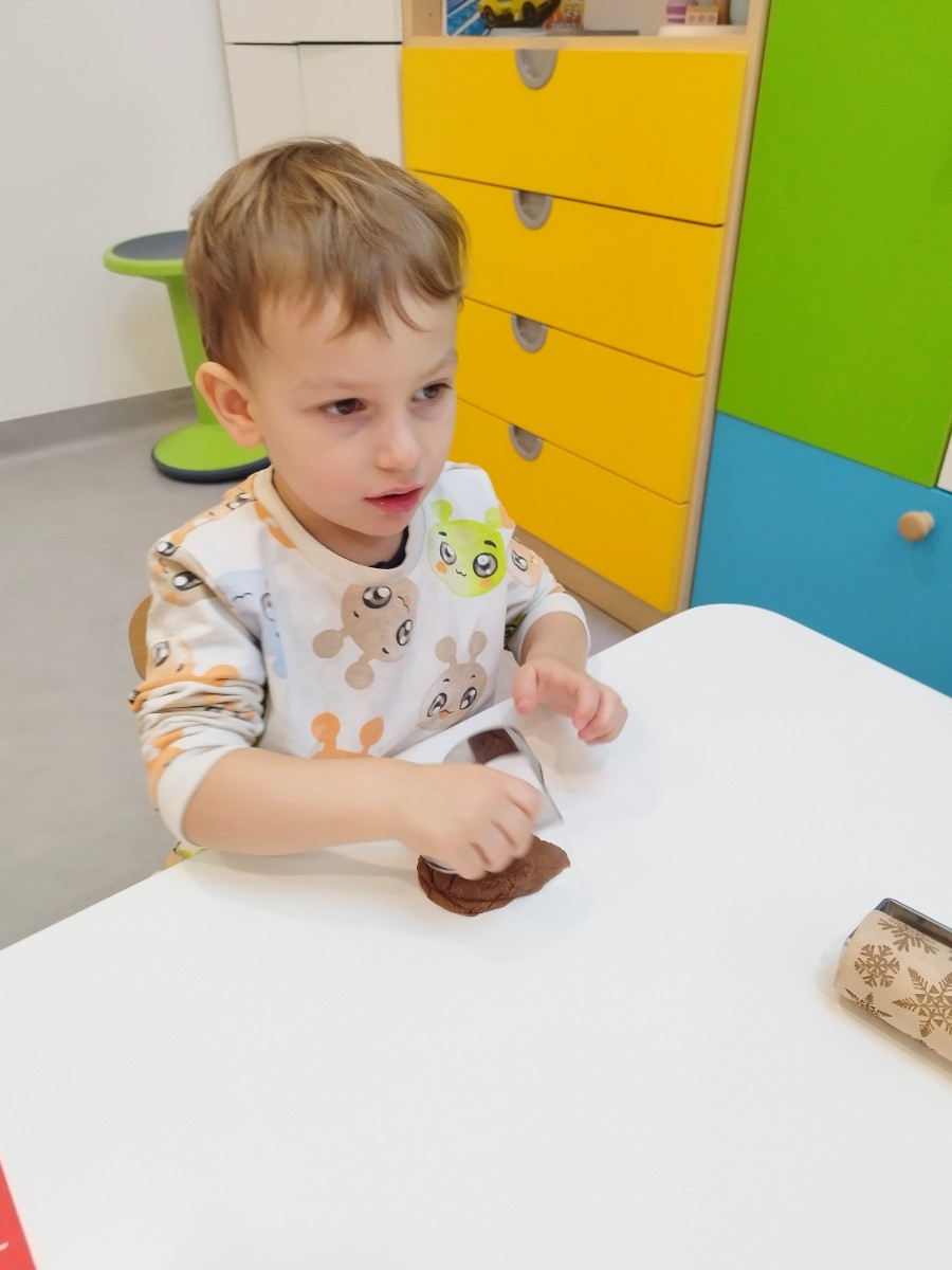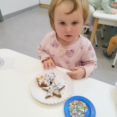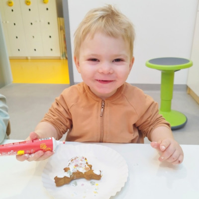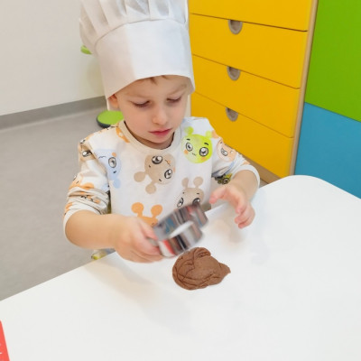 Zdjęcie przedstawia dzieci podczas przygotowywania świątecznych pierniczków