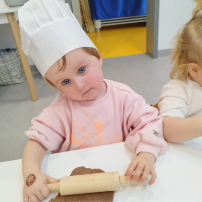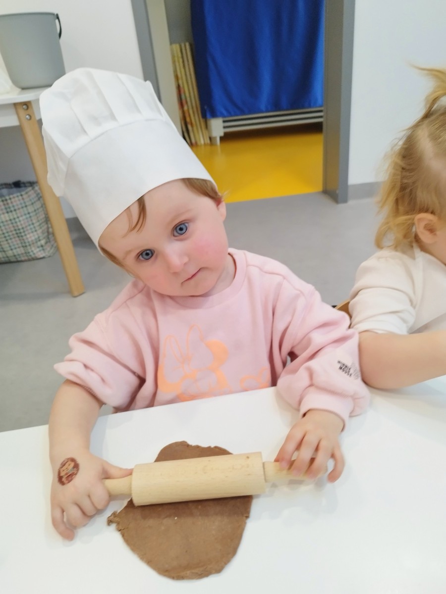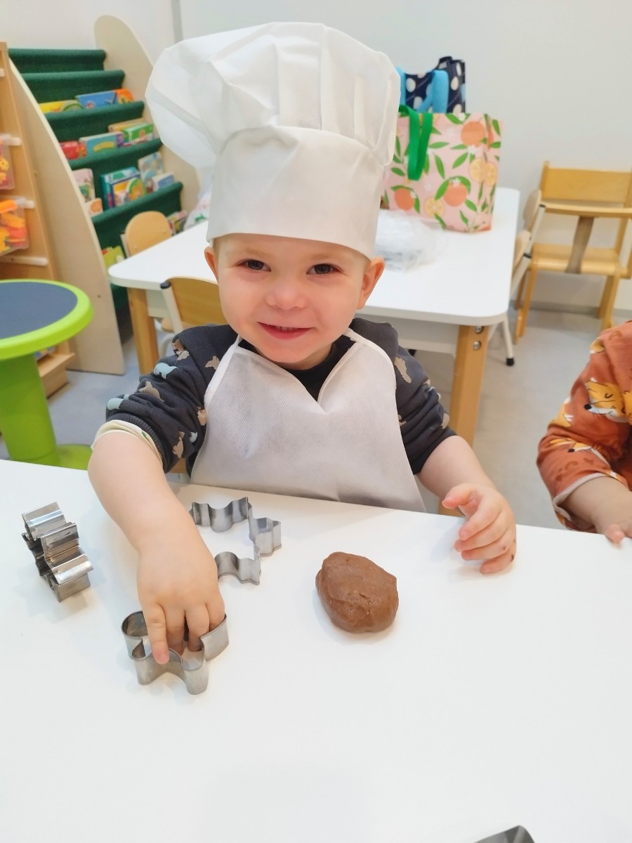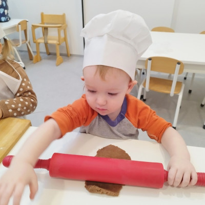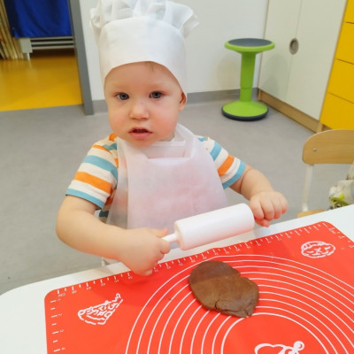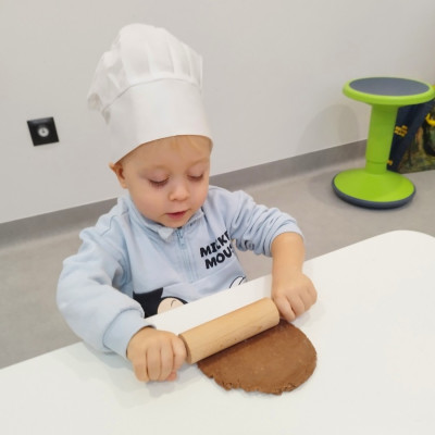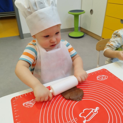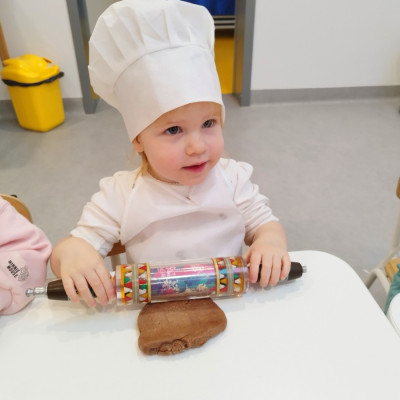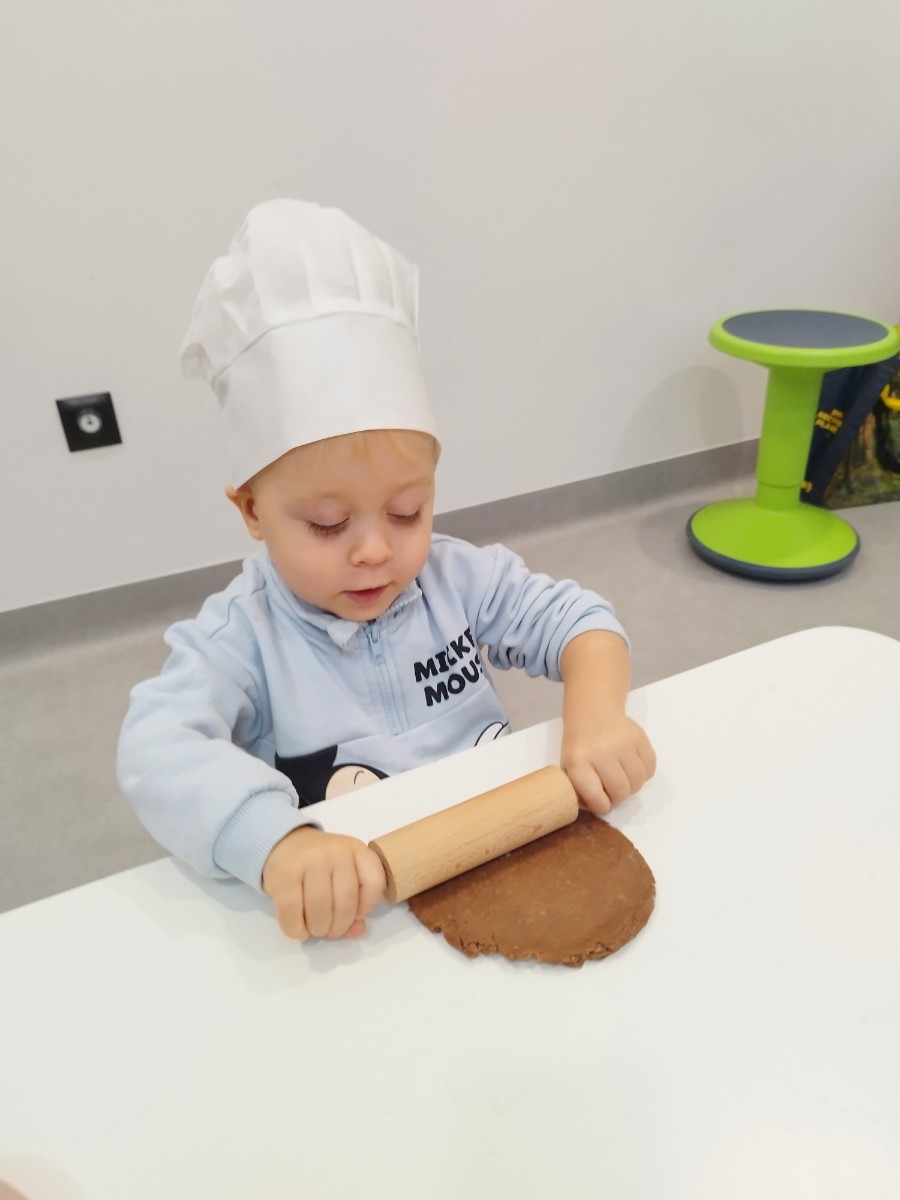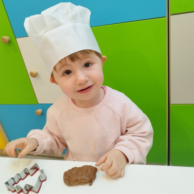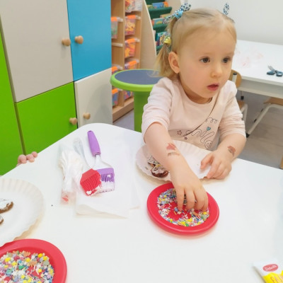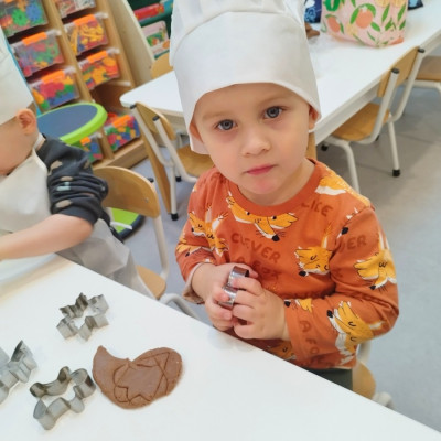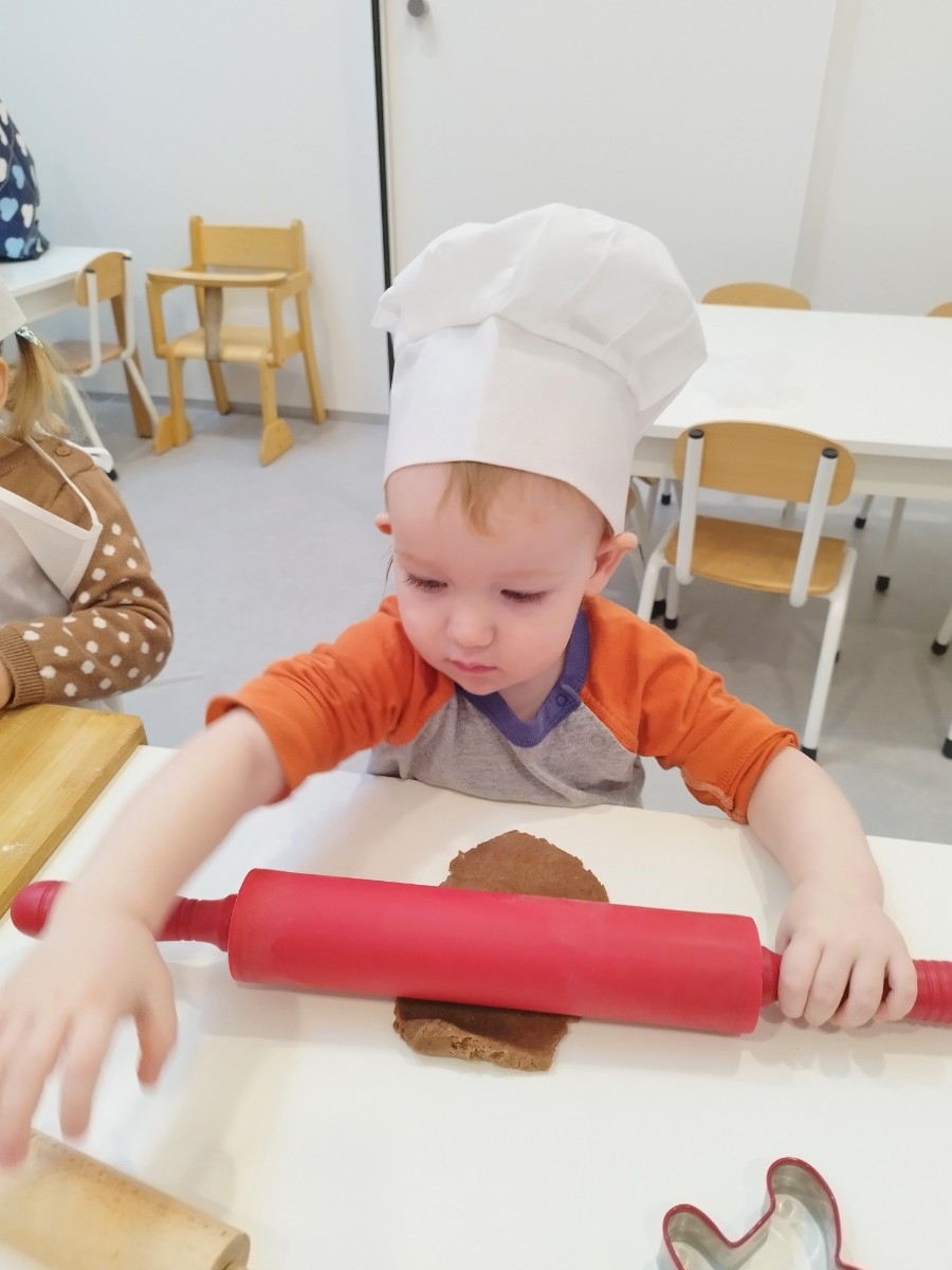 Zdjęcie przedstawia dzieci podczas przygotowywania świątecznych pierniczków