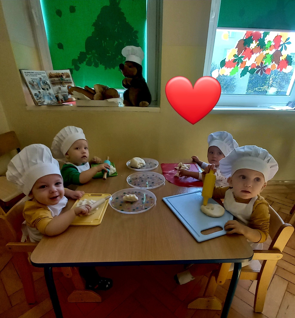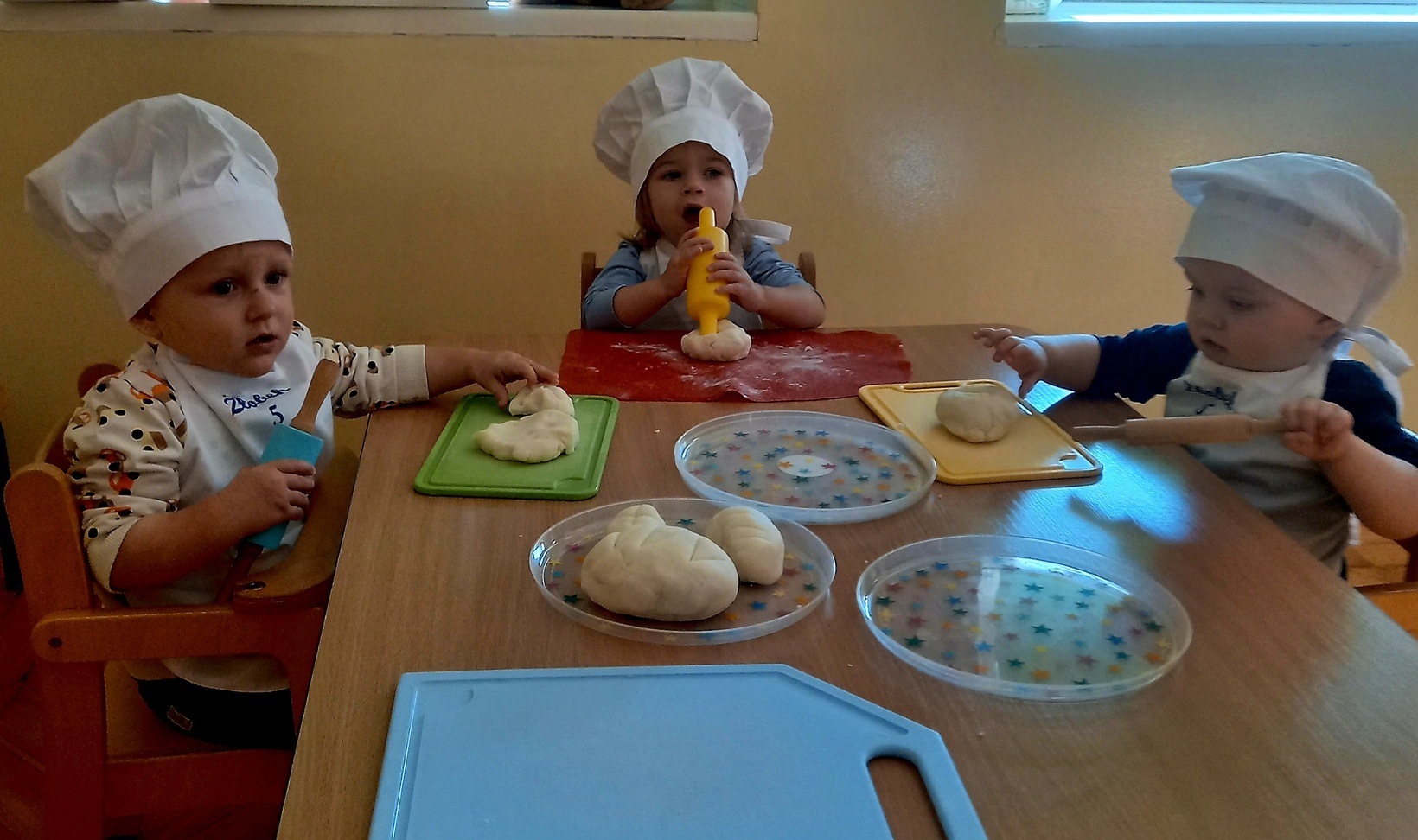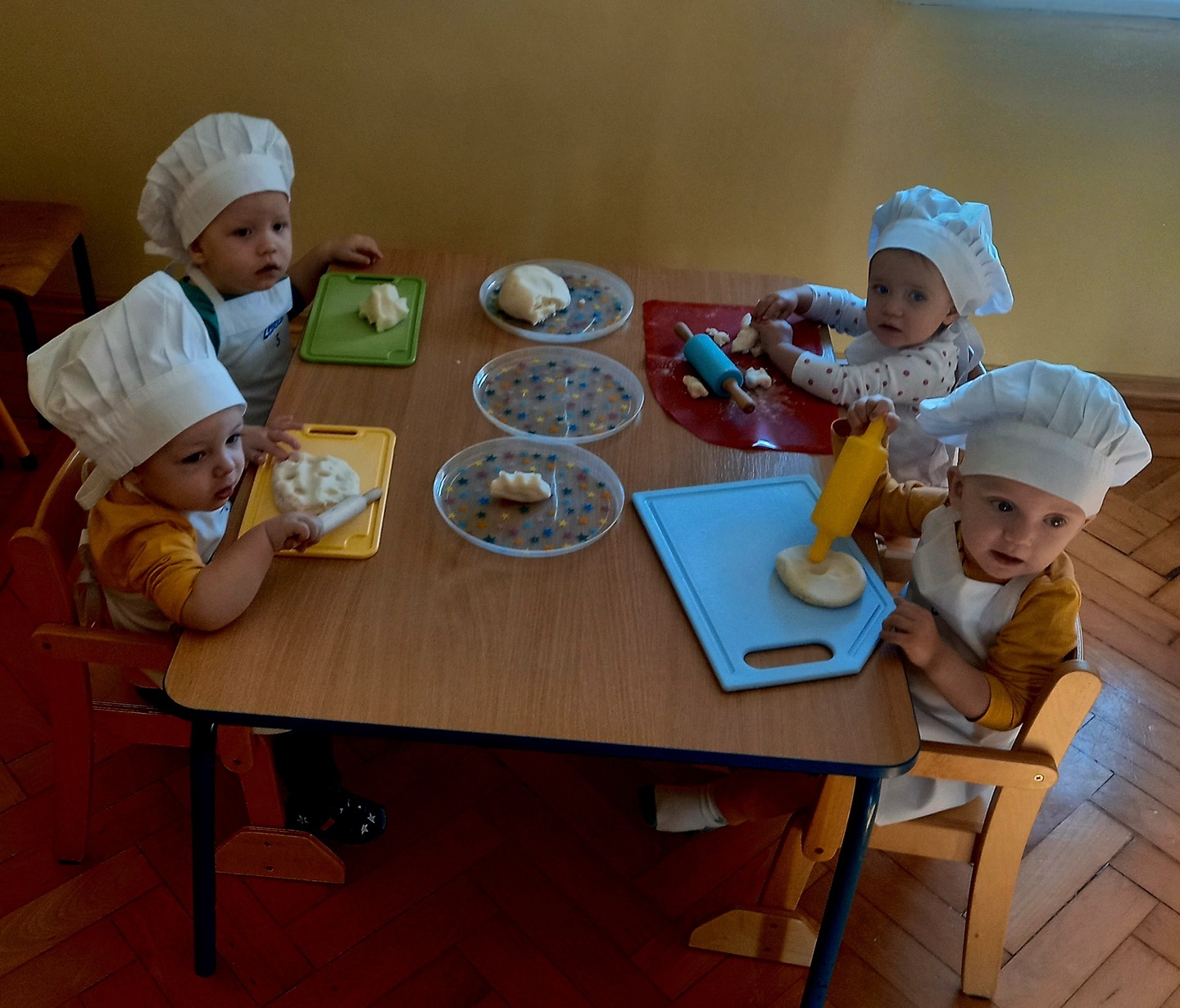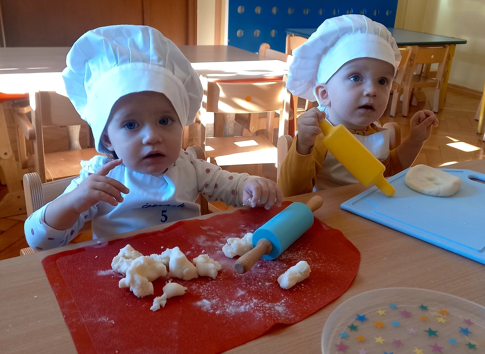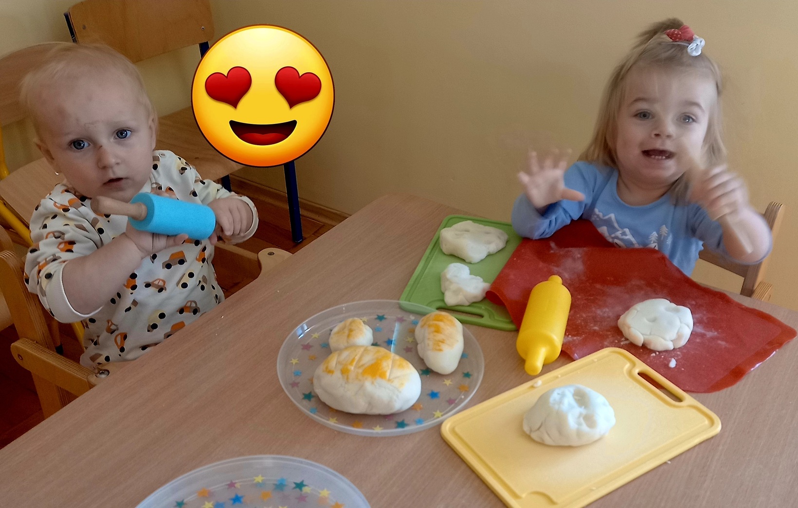 16 października dzieci z gr.1 obchodziły Dzień Chleba co wiązało się z zapoznaniem ich z czego i jak powstaje chleb; oglądały różne rodzaje pieczywa oraz same wykonały chlebki.Kontakt z ciastem i kuchennymi akcesoriami sprawił im wiele radości. ?