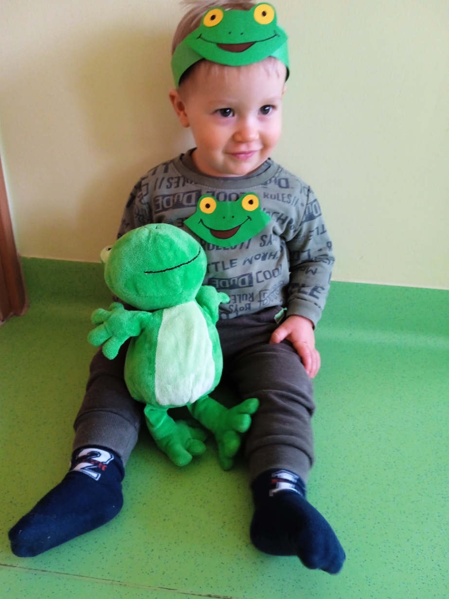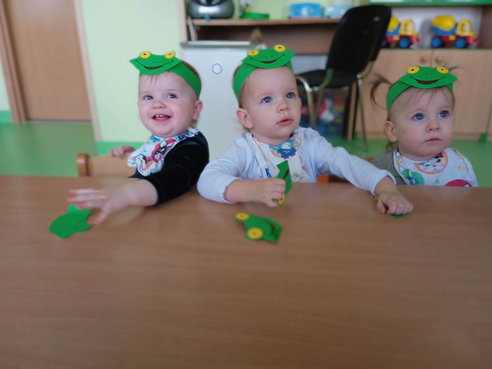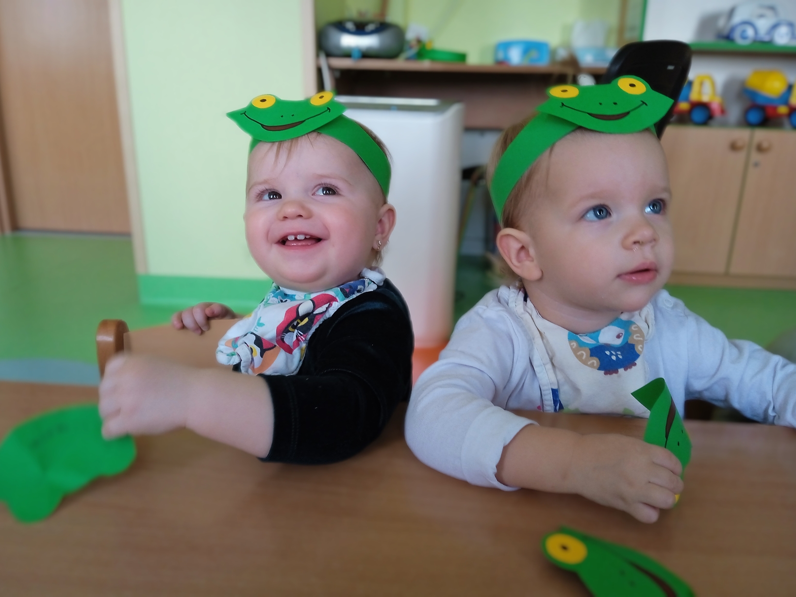 Nazwa naszej grupy maluszków ŻABKI zobowiązuje, dlatego w tym tygodniu obchodziliśmy Światowy Dzień Żaby. W tym dniu dzieci na naszej sali królował kolor zielony oraz maskotki, opaski i znaczki z podobiznami żabek. Obowiazkowo zaśpiewaliśmy piosenkę pt. "Była sobie żabka mała".