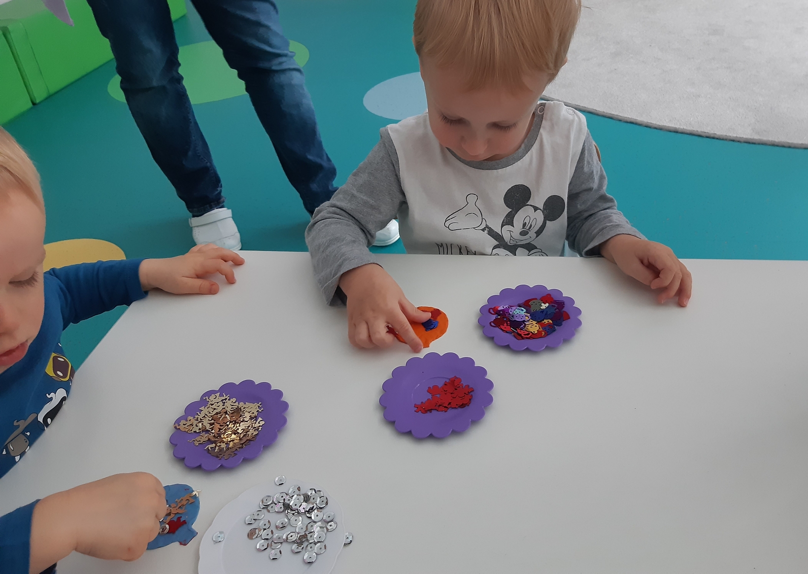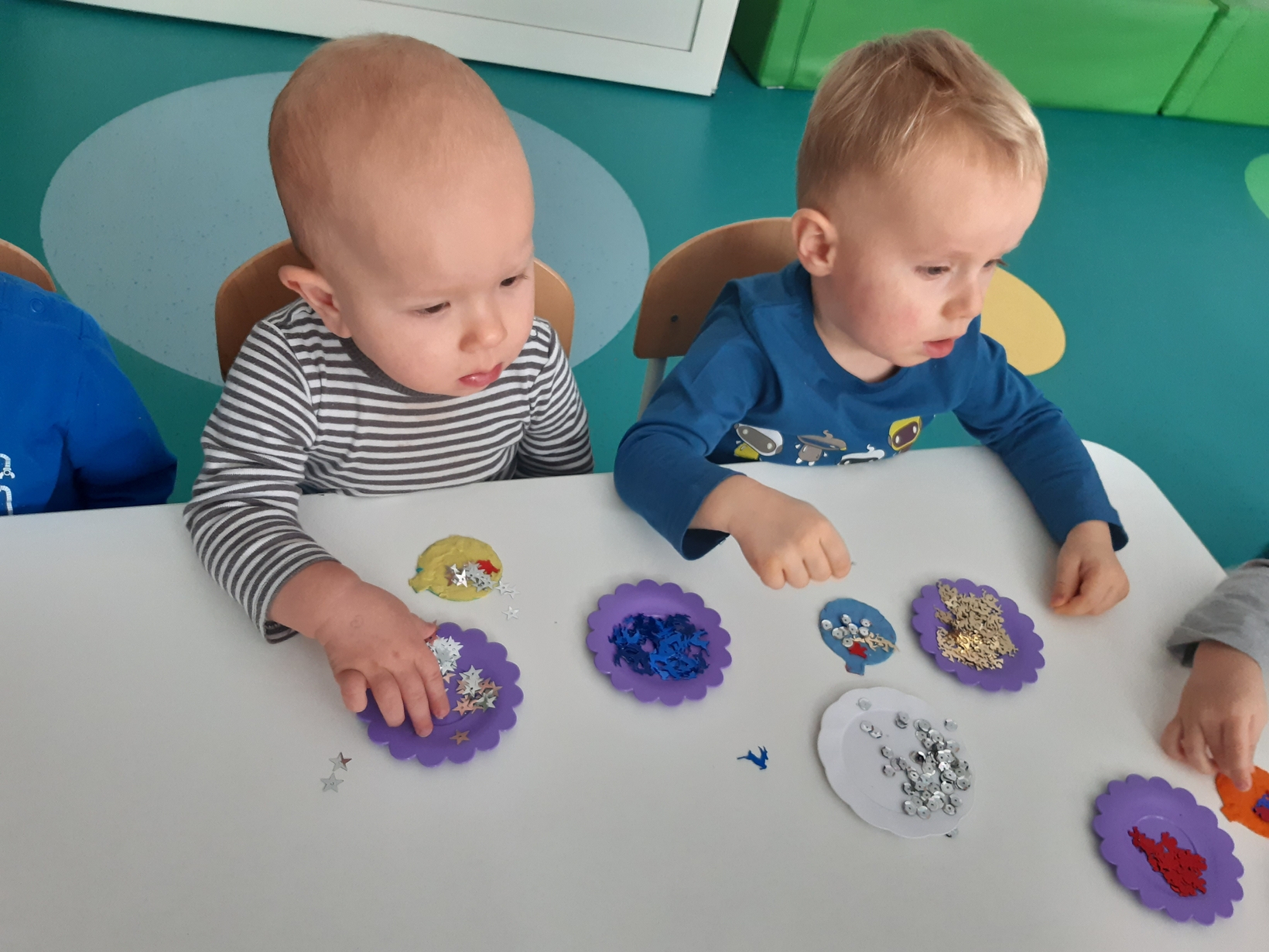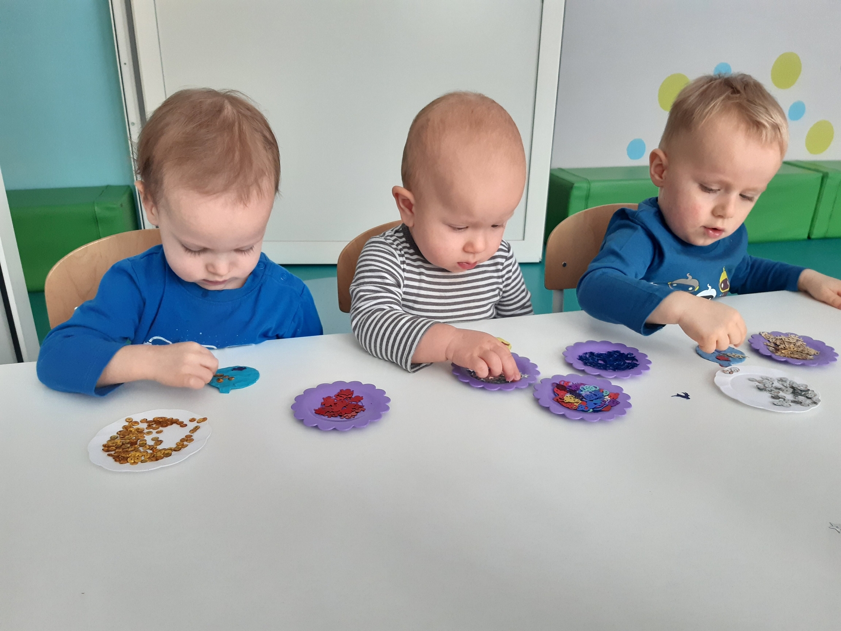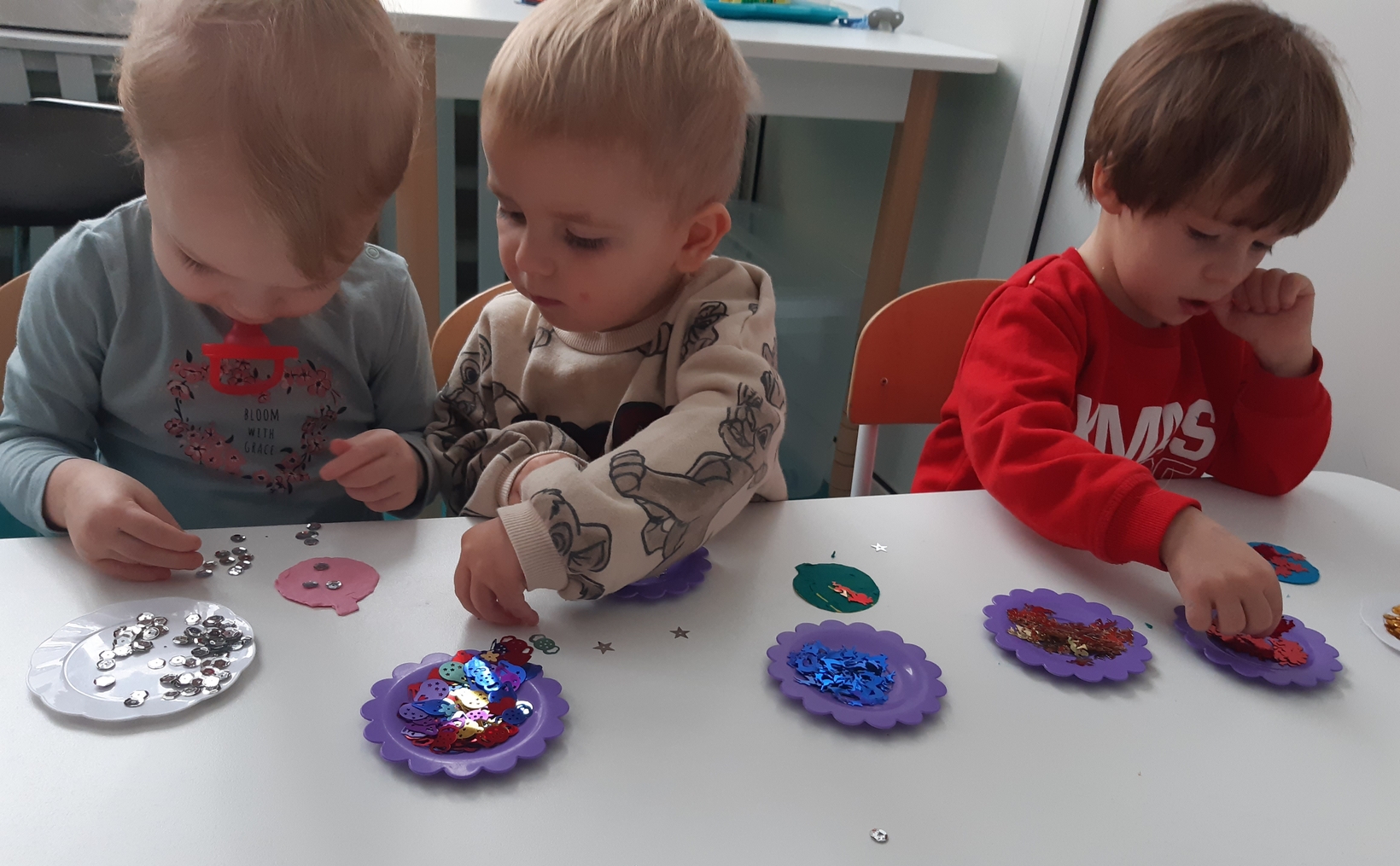Także na grupie Żabki okres przedświąteczny okazał się czasem intensywnych przygotowań do świąt . W ramach zajęć panie opiekunki na tej grupie starały się zaznajomić dzieci z bożonarodzeniowymi tradycjami i obyczajami. Dzieci z tej grupy wykonały pracę plastyczną której tematem była świąteczna choinka oraz kolorową bombę, którą doklejały do przygotowanych kartek świątecznych. Do wykonania tych prac dzieci wykorzystały plastelinę, cekiny, brokat, kolorowe kuleczki .