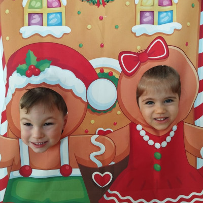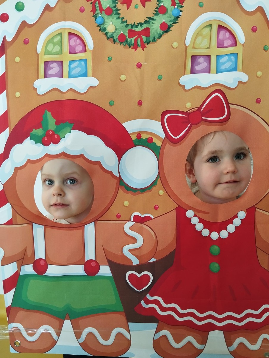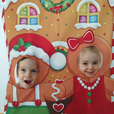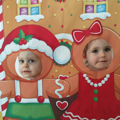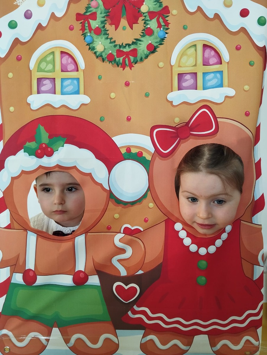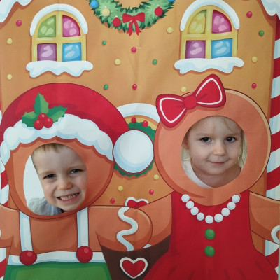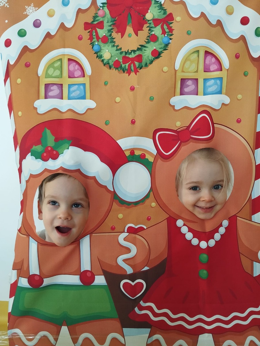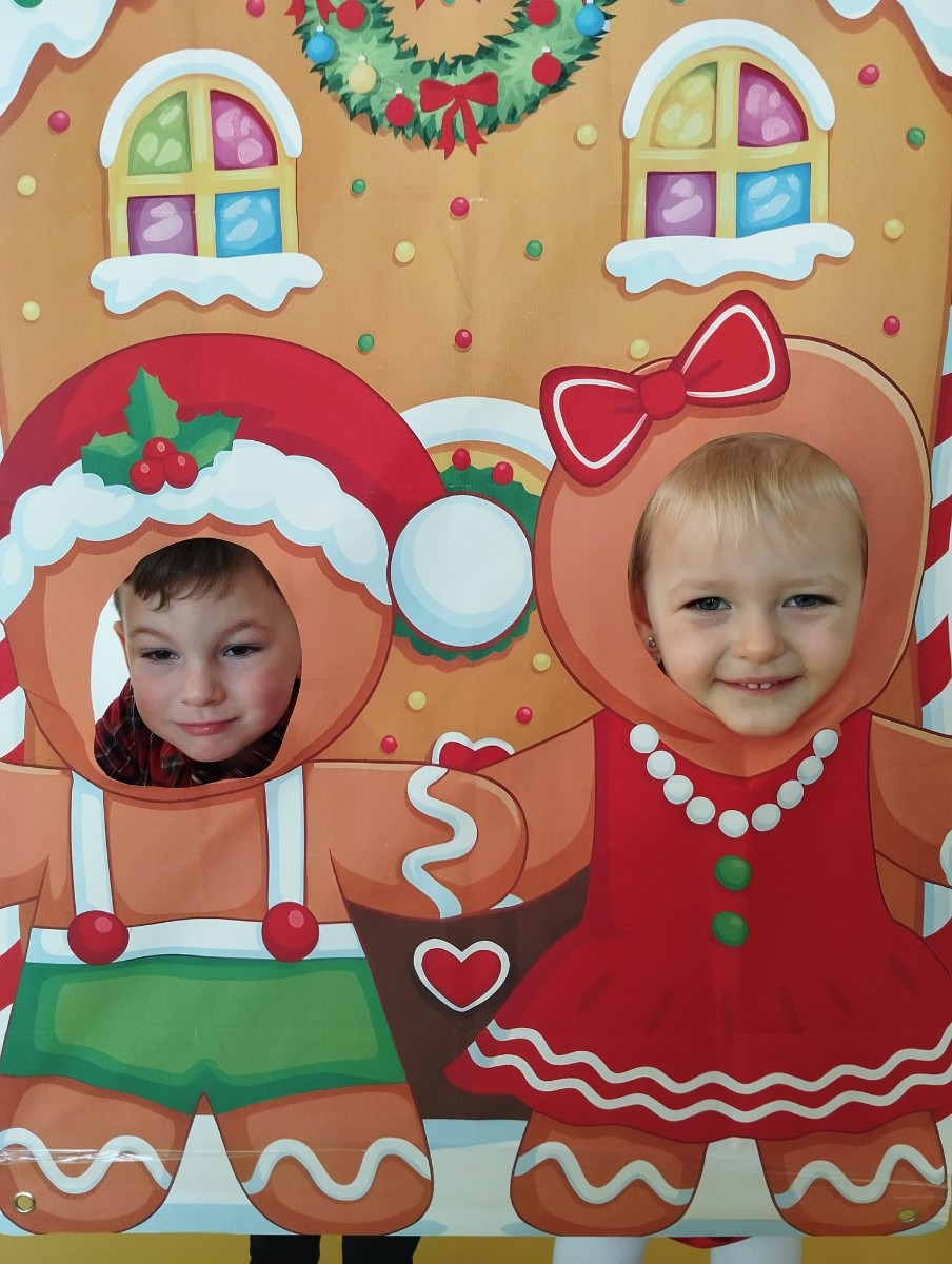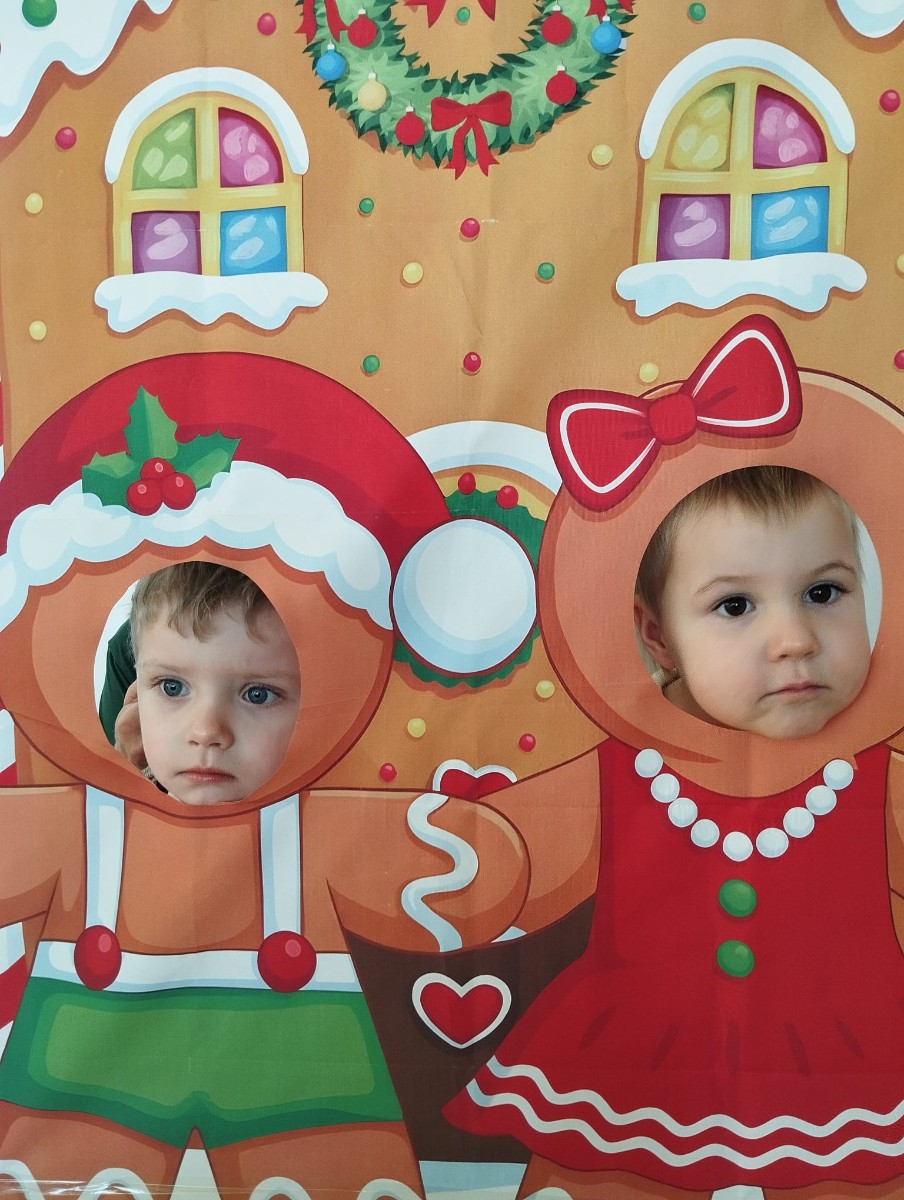 Zdjęcie przedstawia dzieci podczas sesji świątecznej