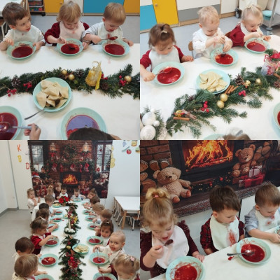 Zdjęcia przedstawiają dzieci podczas wspólnej Świątecznej Wigilii