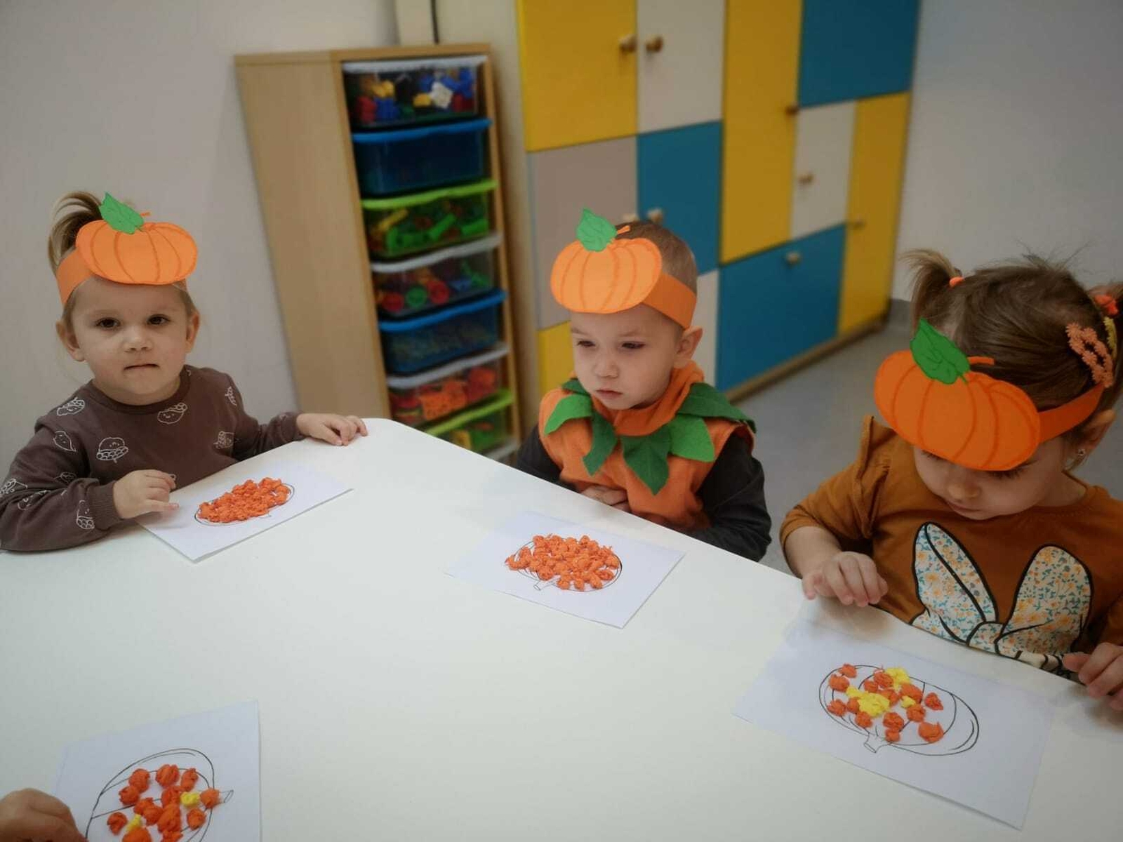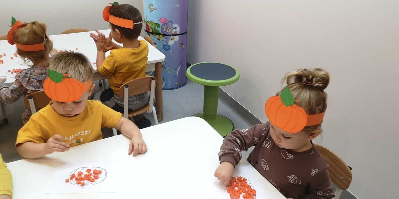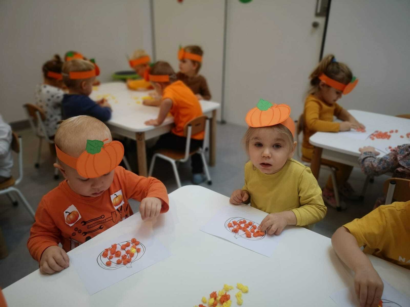 Na zakończenie pracowitego dnia dzieci wykonały pracę plastyczną z wykorzystaniem szablonu dyni i bibuły.