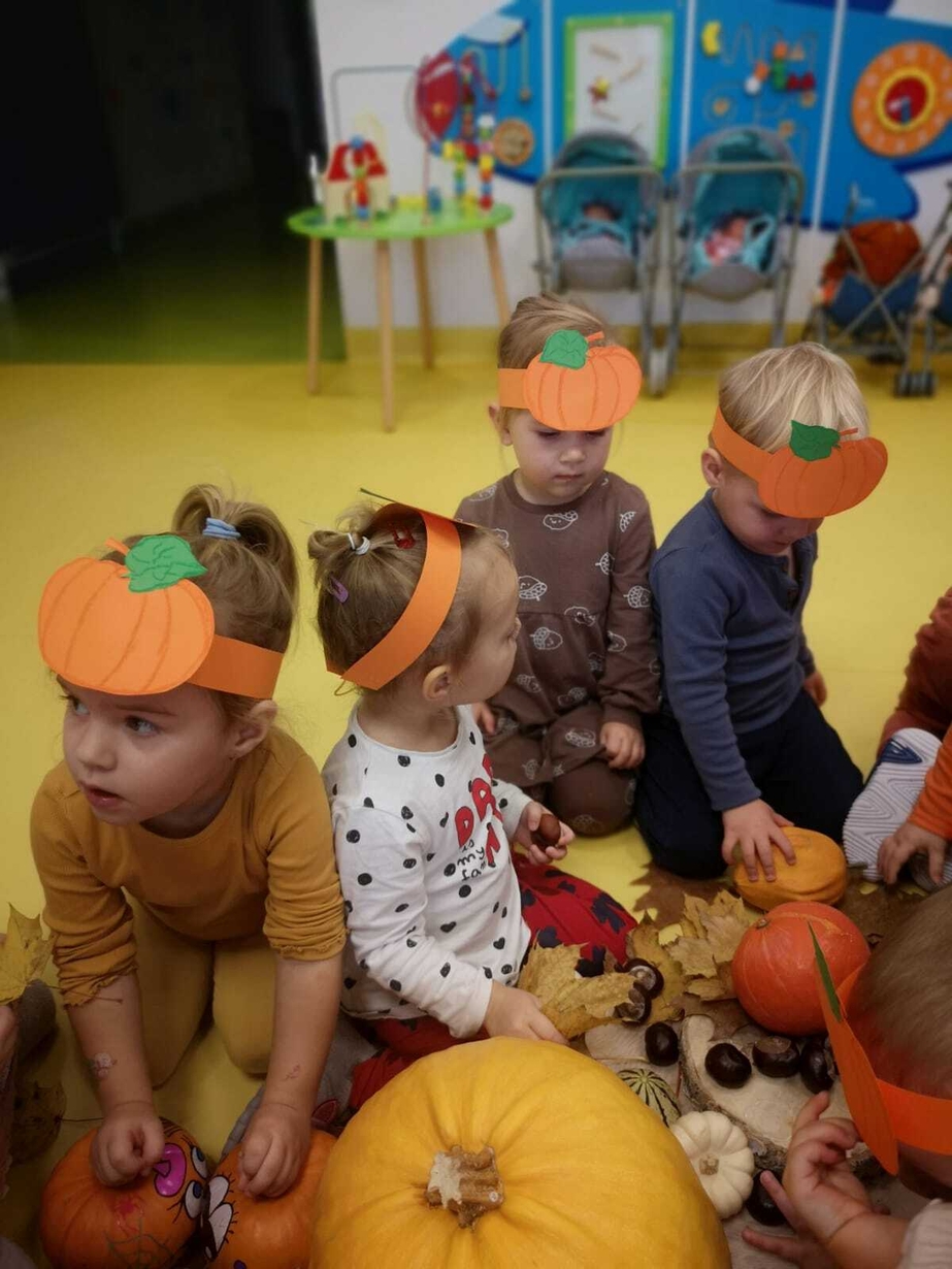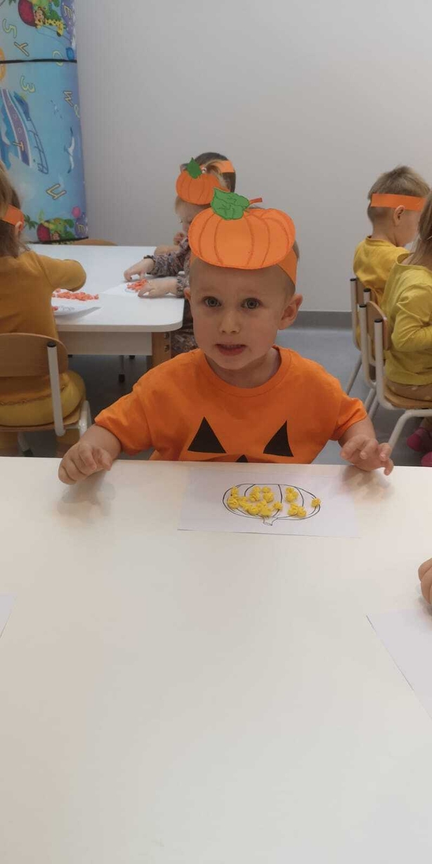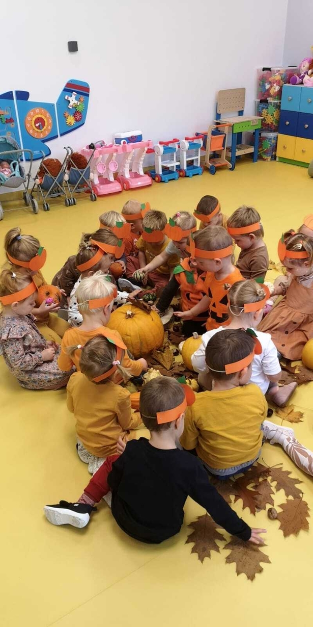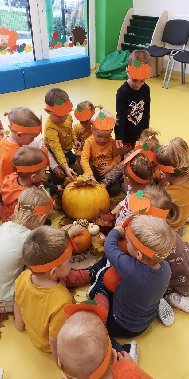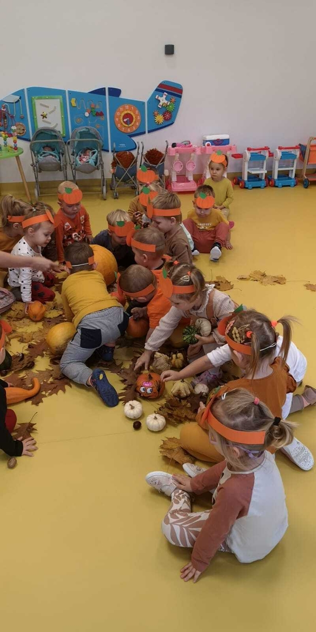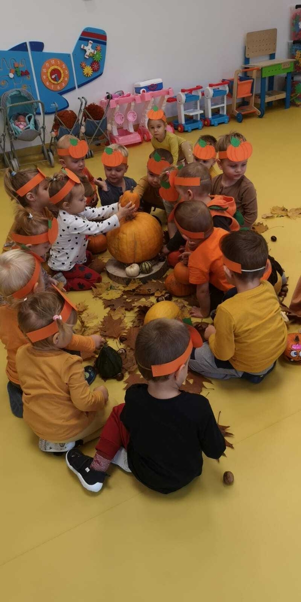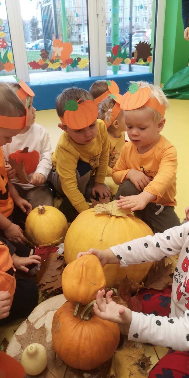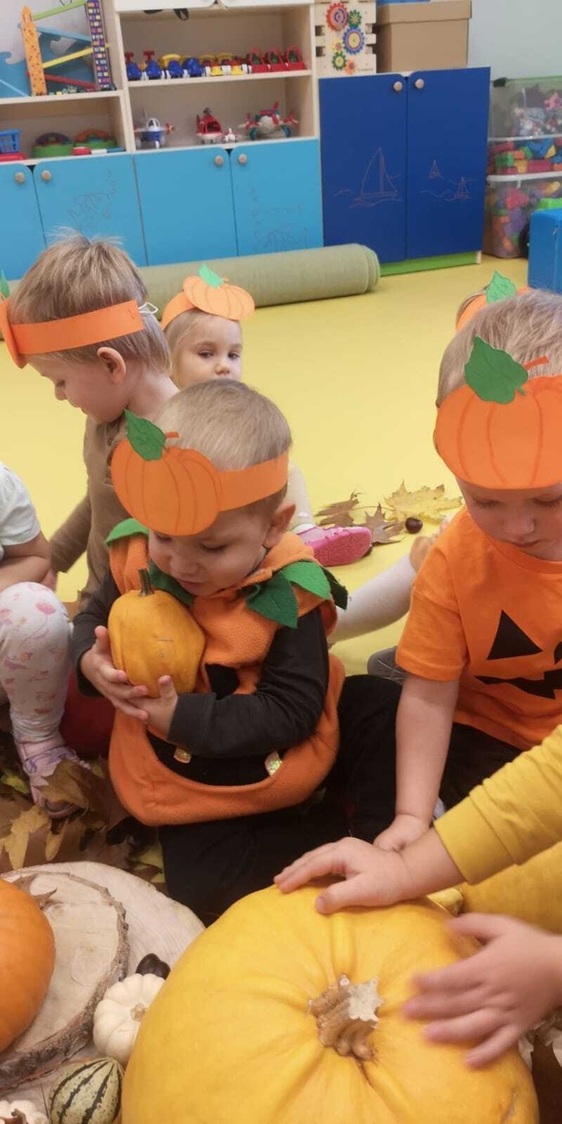 We wtorek 31.10.2023 obchodziliśmy na grupie Rybek "Święto Dyni". Dzieci mogły zobaczyć i dotknąć dynie o różnej wielkości i kolorystyce. Z wykorzystaniem liści i kasztanów stworzyły piękny stroik. Było dużo radości i śmiechu.