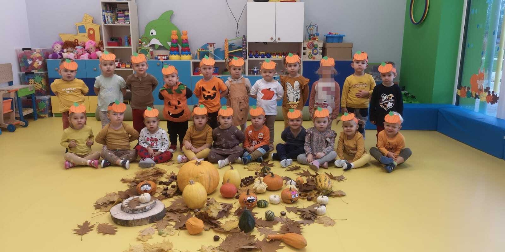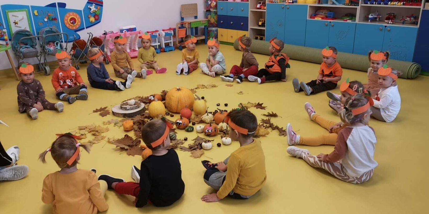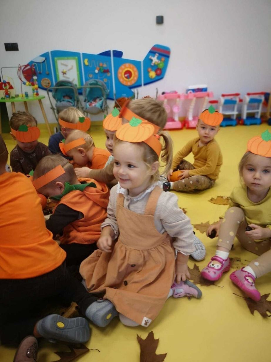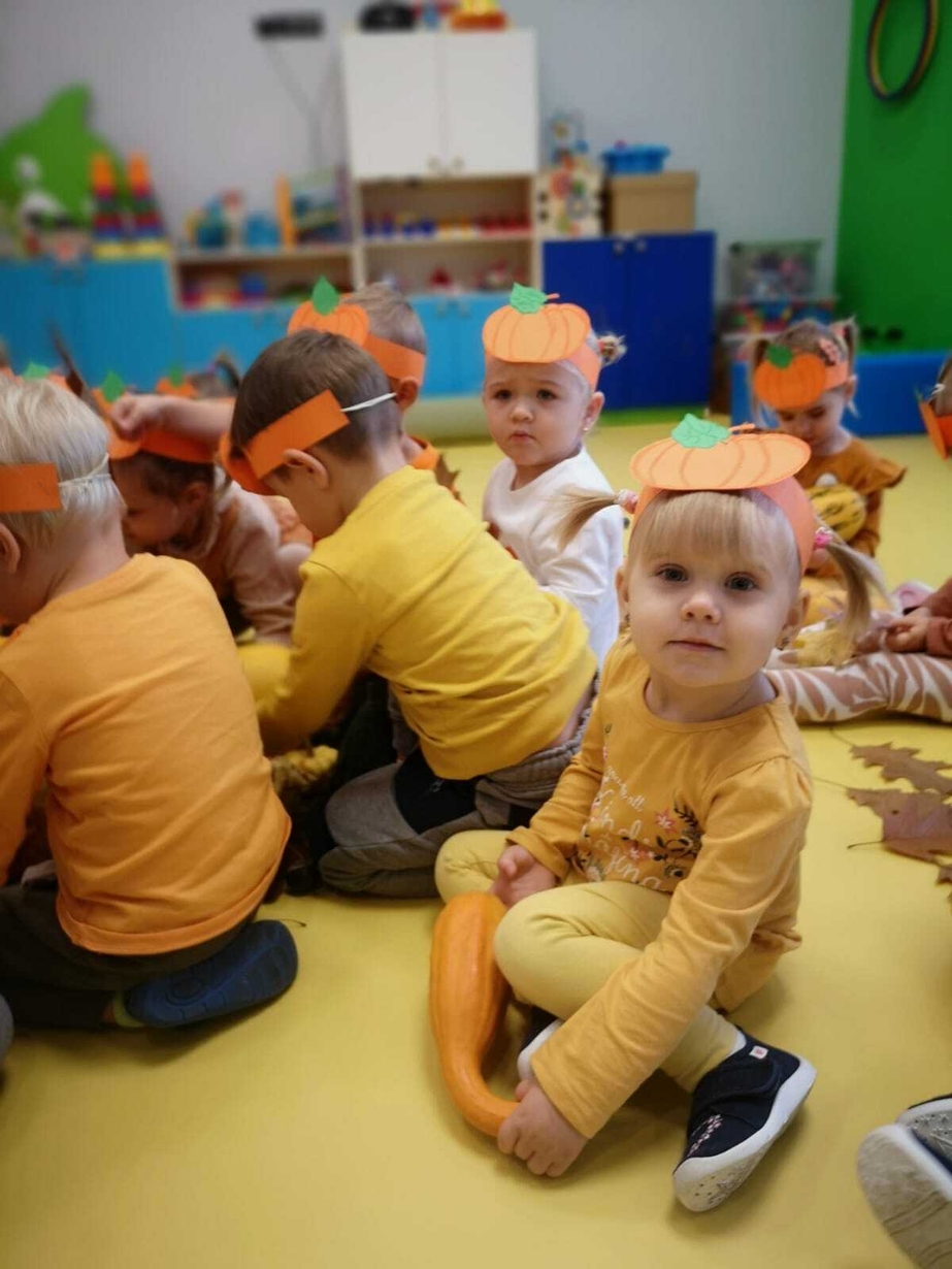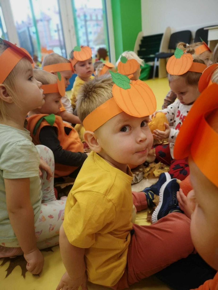 We wtorek 31.10.2023 obchodziliśmy na grupie Rybek "Święto Dyni". Dzieci mogły zobaczyć i dotknąć dynie o różnej wielkości i kolorystyce. Z wykorzystaniem liści i kasztanów stworzyły piękny stroik. Było dużo radości i śmiechu.
