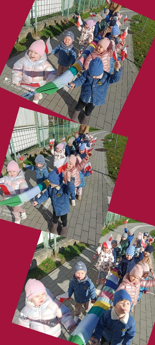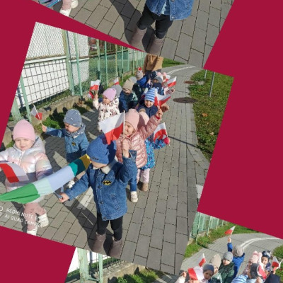 Zdjęcia przedstawiają dzieci świętujące Dzień Niepodległości.