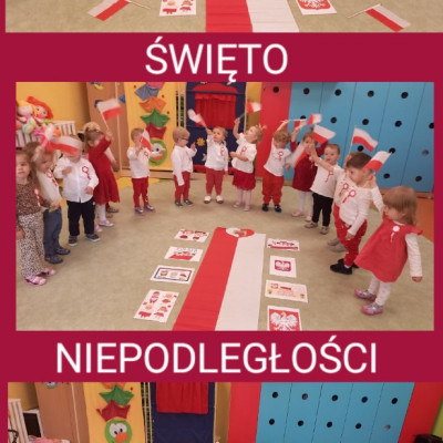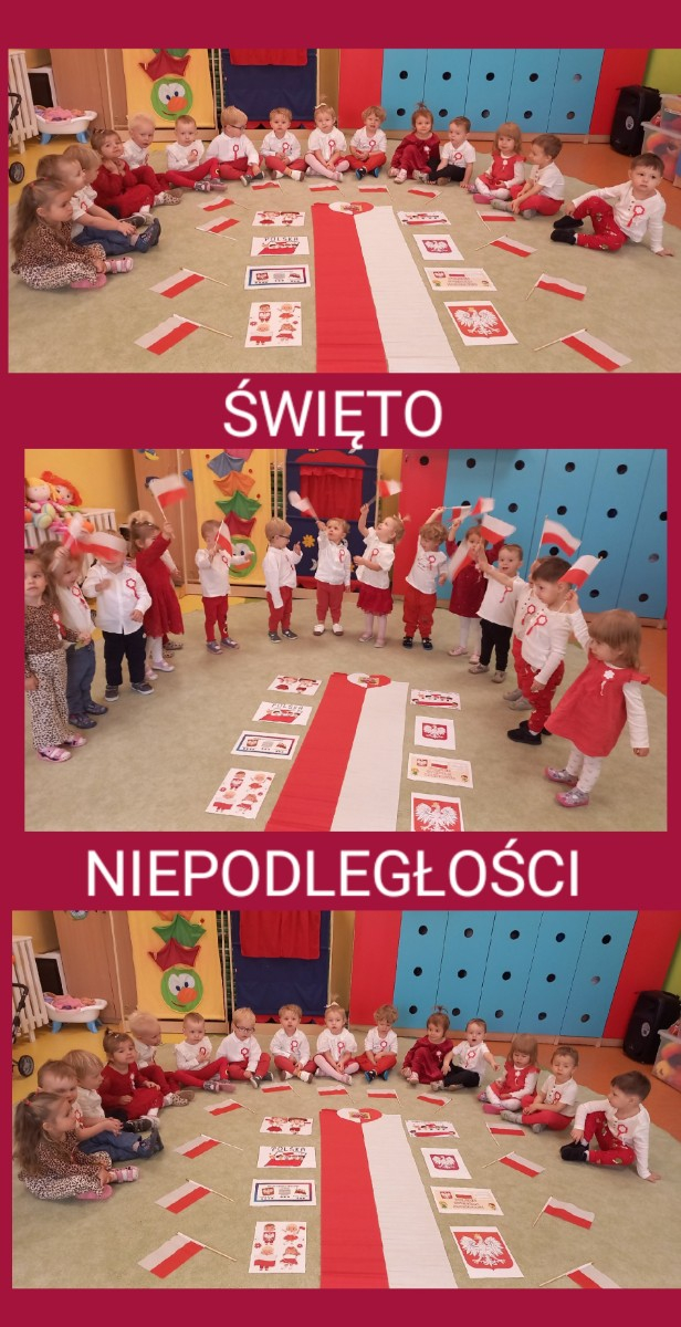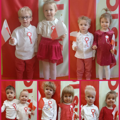 Dzisiaj na grupie Rybki dzieci świętowały Dzień Niepodległości. Poznały symbole narodowe naszego kraju oraz wysłuchały hymnu narodowego. Na koniec wspólnie wykonały pracę plastyczną.