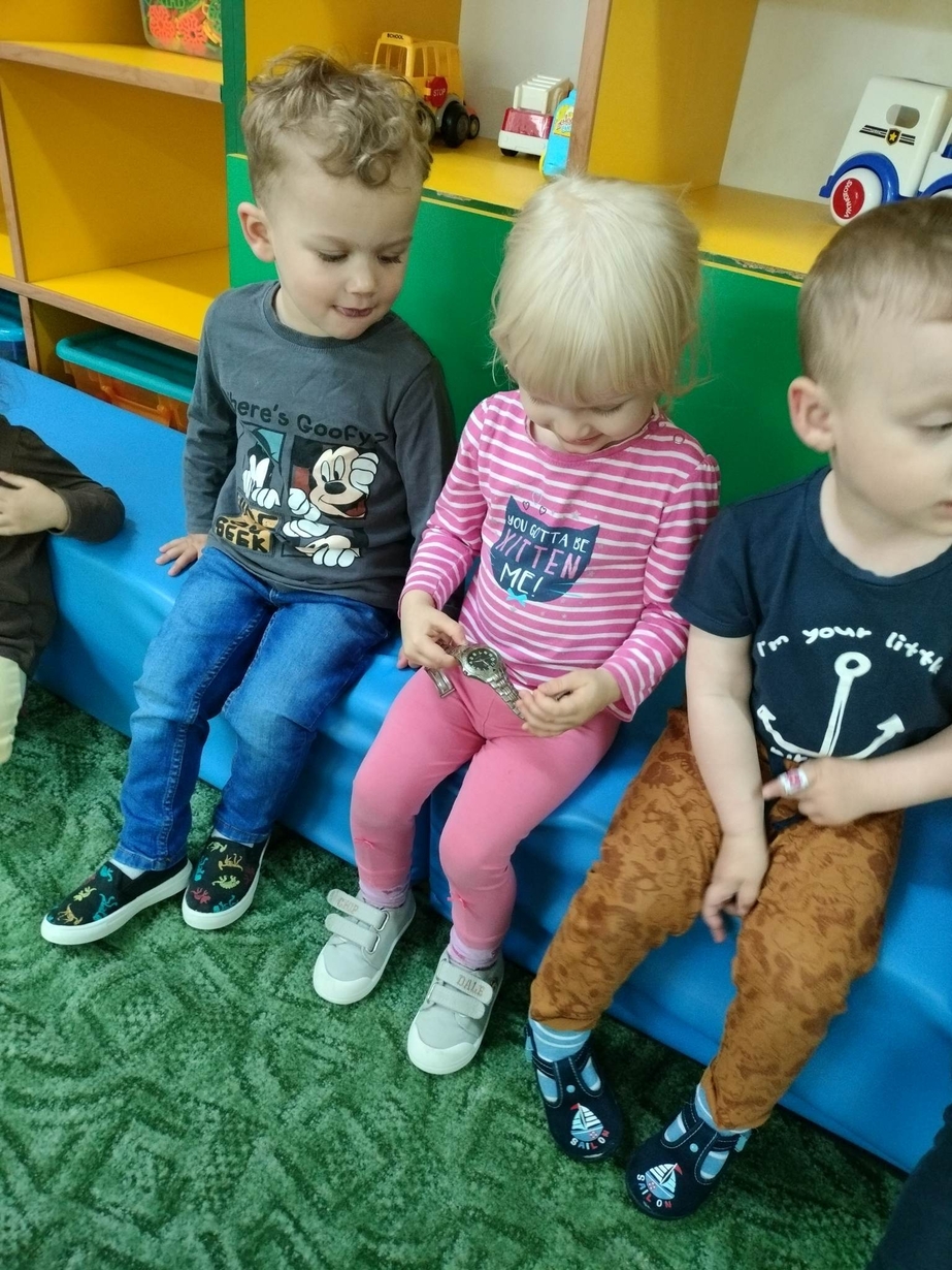 Szczęśliwi czasu nie licza czyli to i owo o zegarach. Dzisiaj nasze kochane "Misie" poznały moc działnia zegarów, dowiedziały się jak dawniej odmierzano czas za pomoca jakich innych zegarów niż dotychczasowych nowosci. Usłyszały bicie i muzykę zegarow, zaśpiewały piosenke "Panie Janie". Z zaciekawieniem ogladaly przyniesione zegary przez panią opiekunkę....