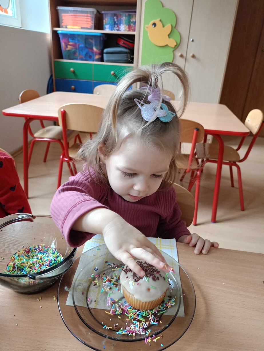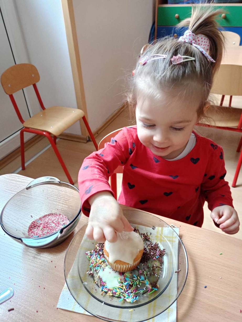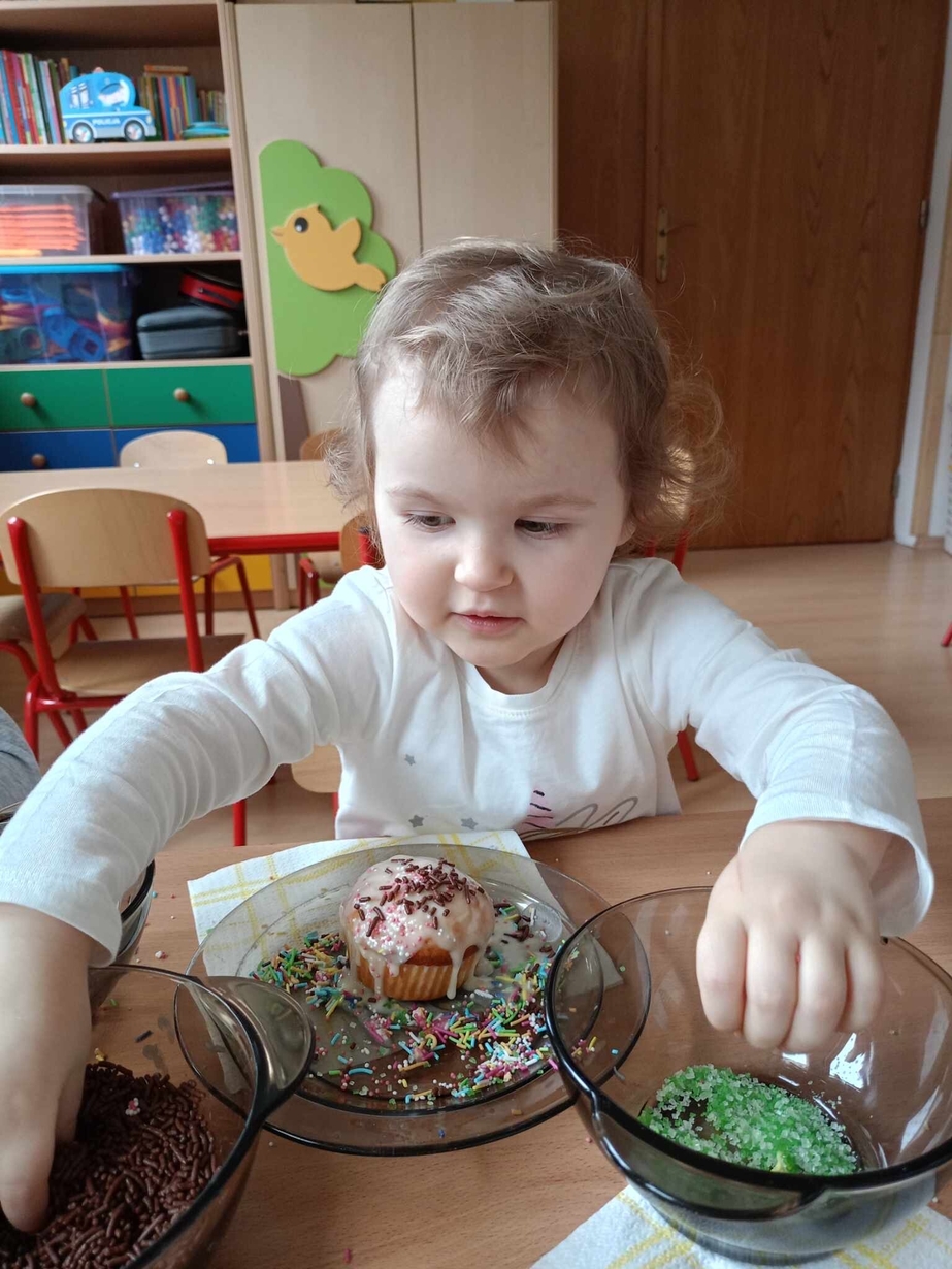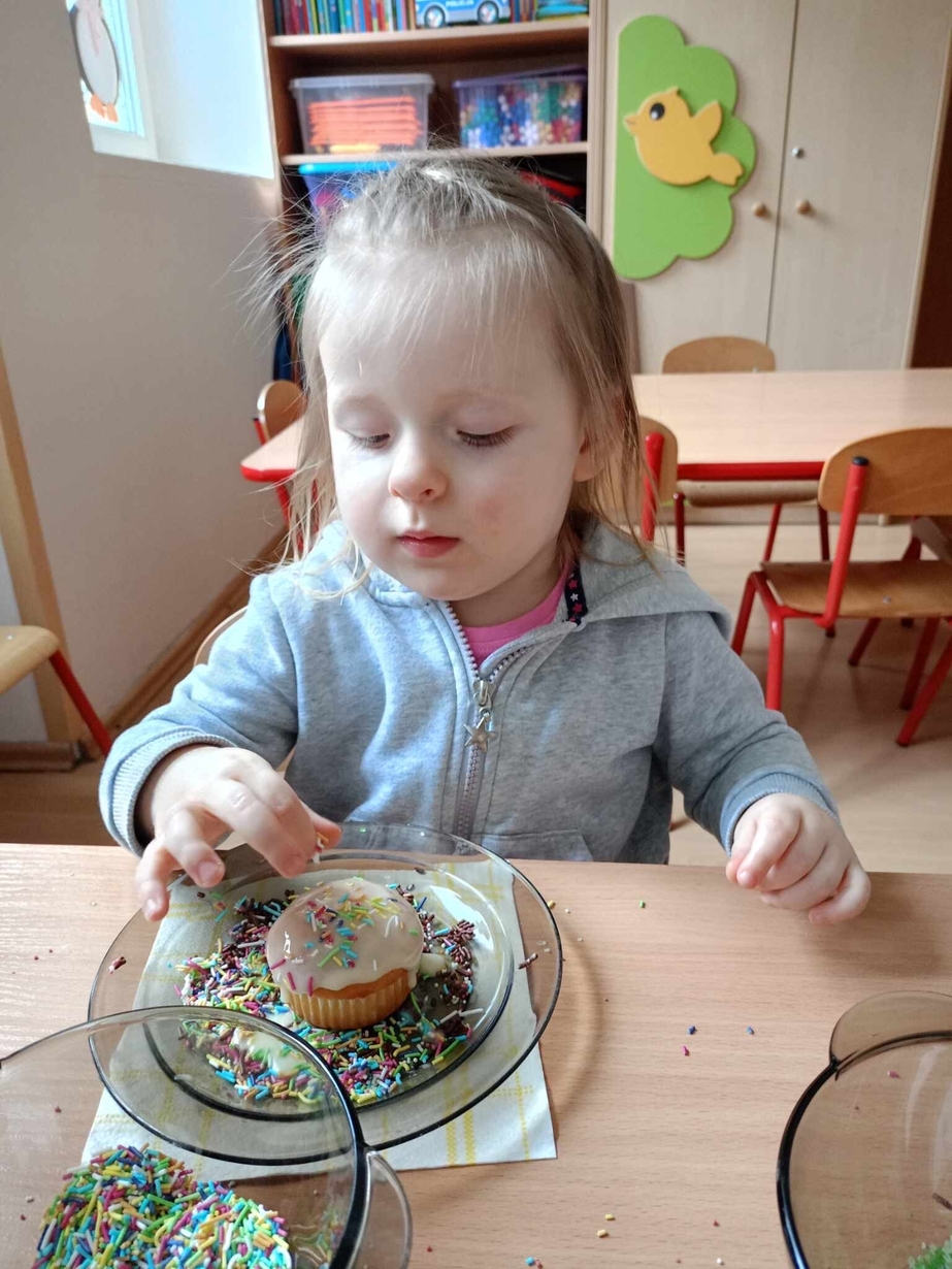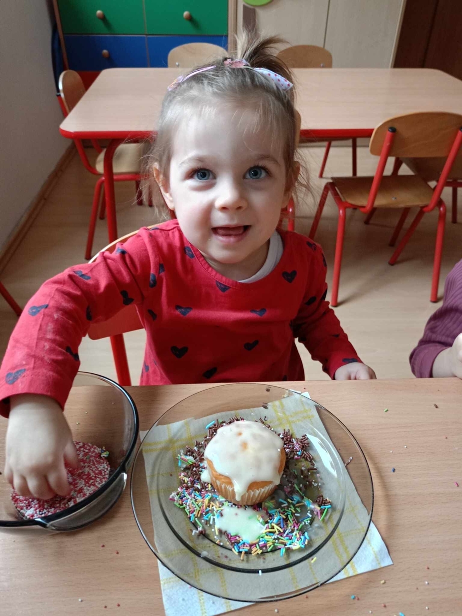 Misie ? dekorowały swoje babeczki ? lukrem i kolorowymi, cukrowymi posypkami.