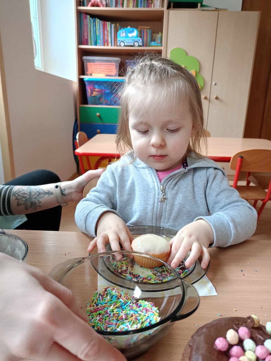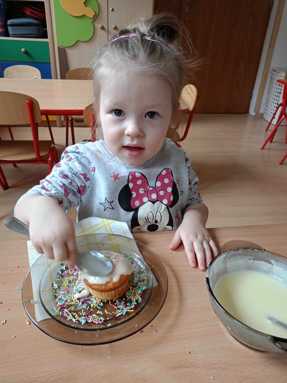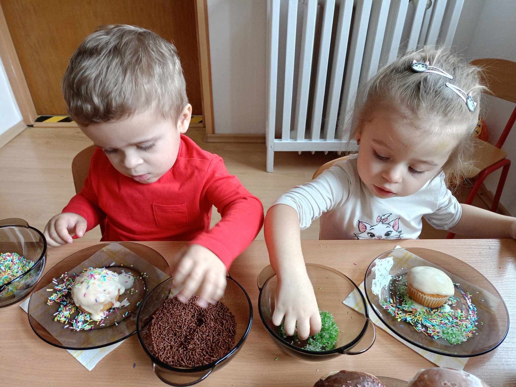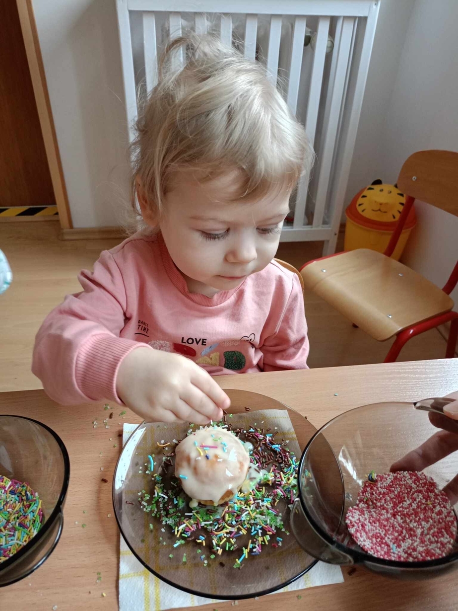 Misie ? dekorowały swoje babeczki ? lukrem i kolorowymi, cukrowymi posypkami.