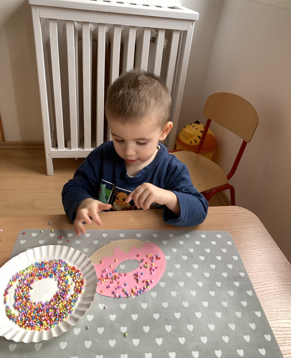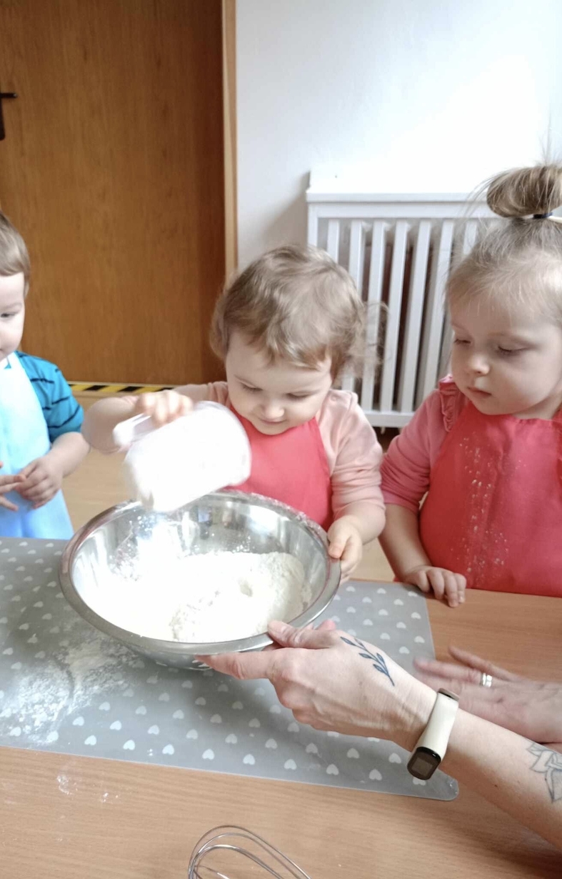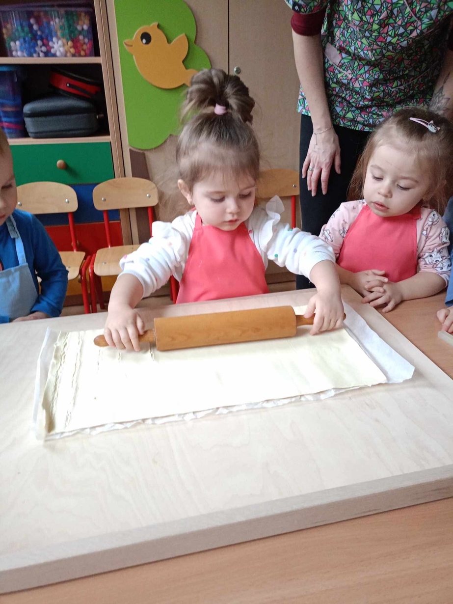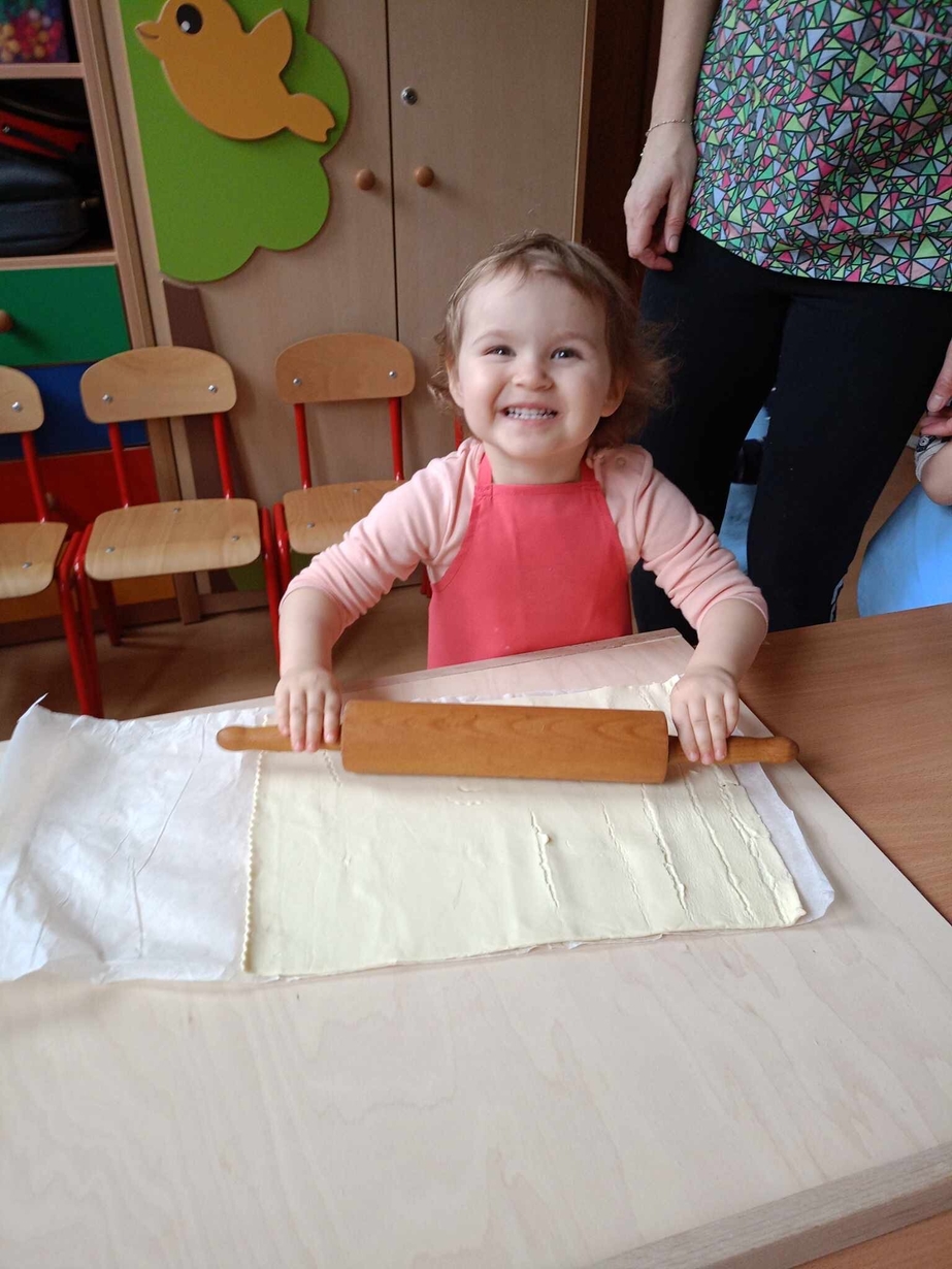 Dzieci przygotowały ciasto, próbowały wyciąć ,,Faworki", oraz wykonały pracę plastyczną.