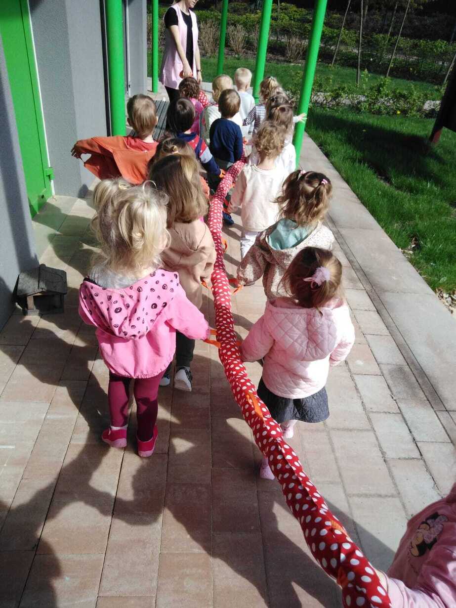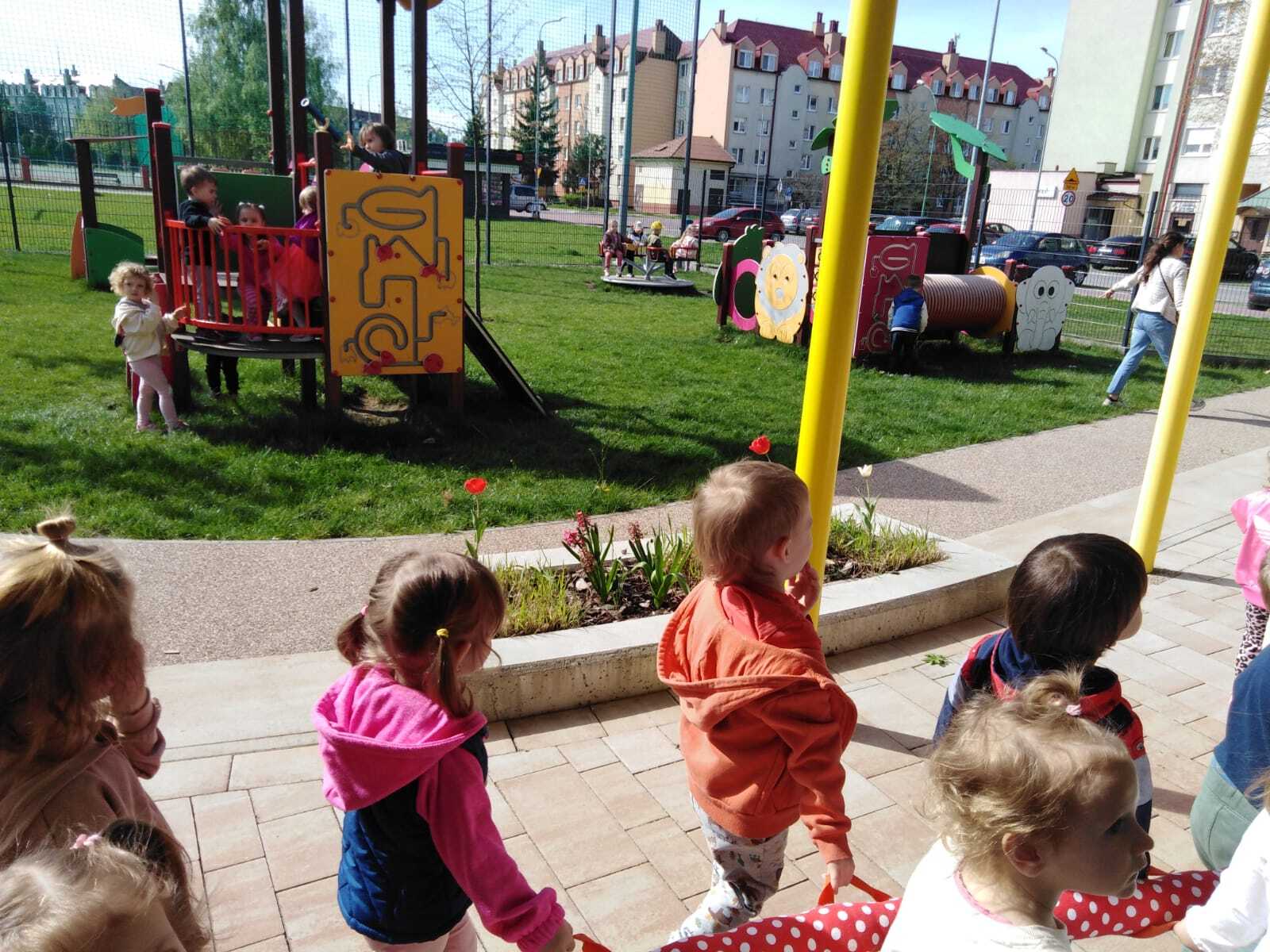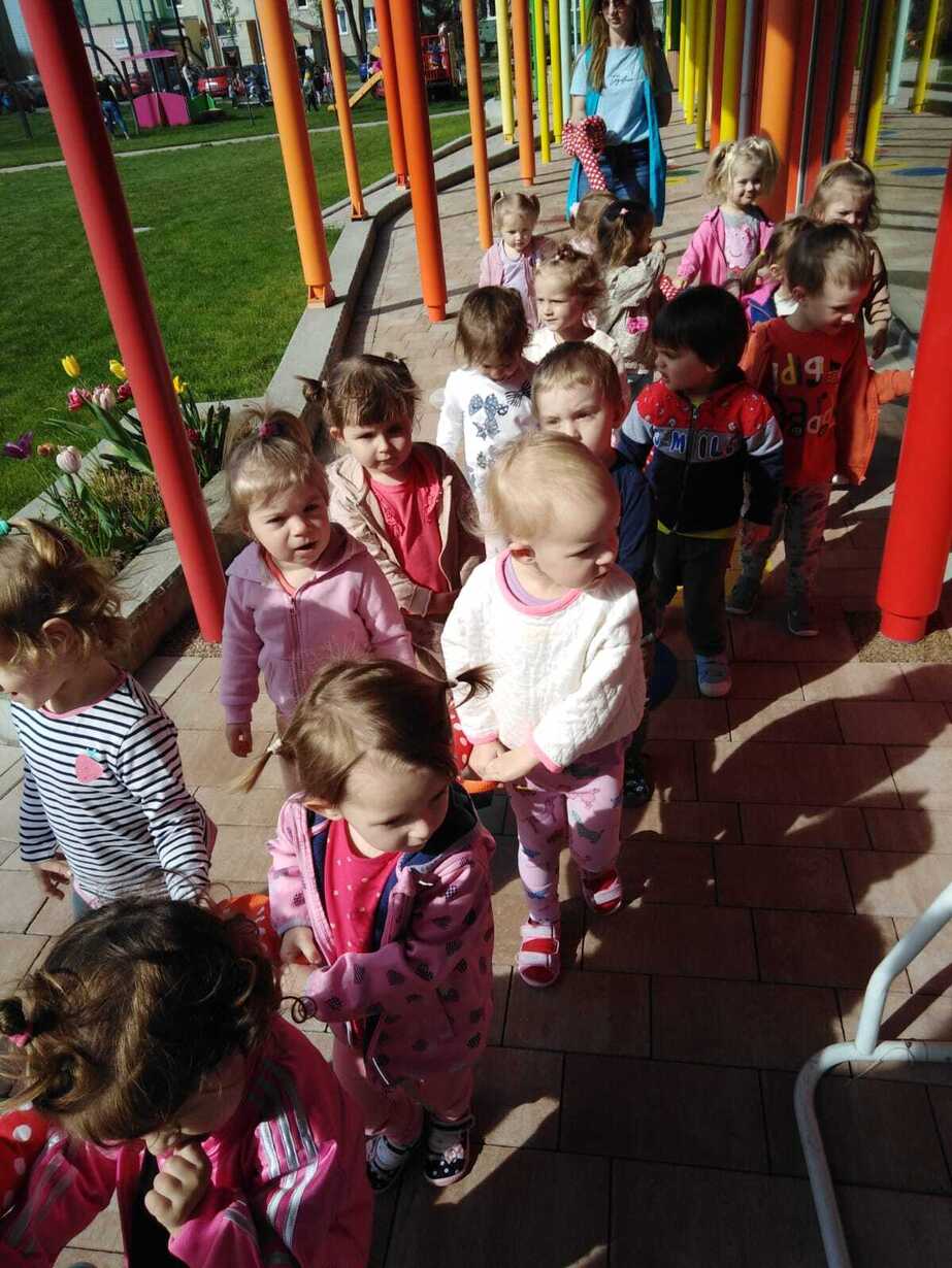 Maluszki z naszego żłobka korzystajac z pięknej pogody wyruszyły na spacery ?