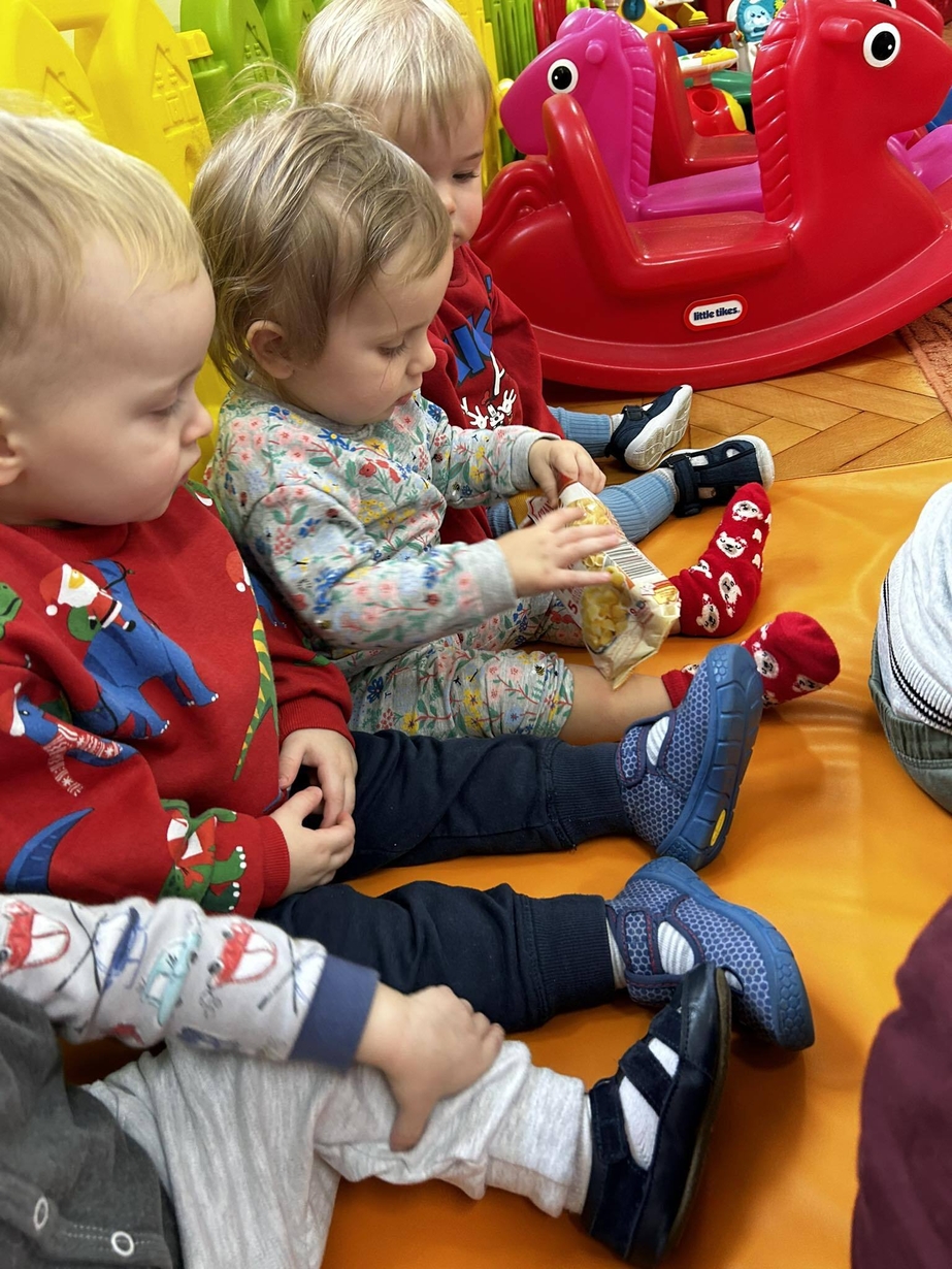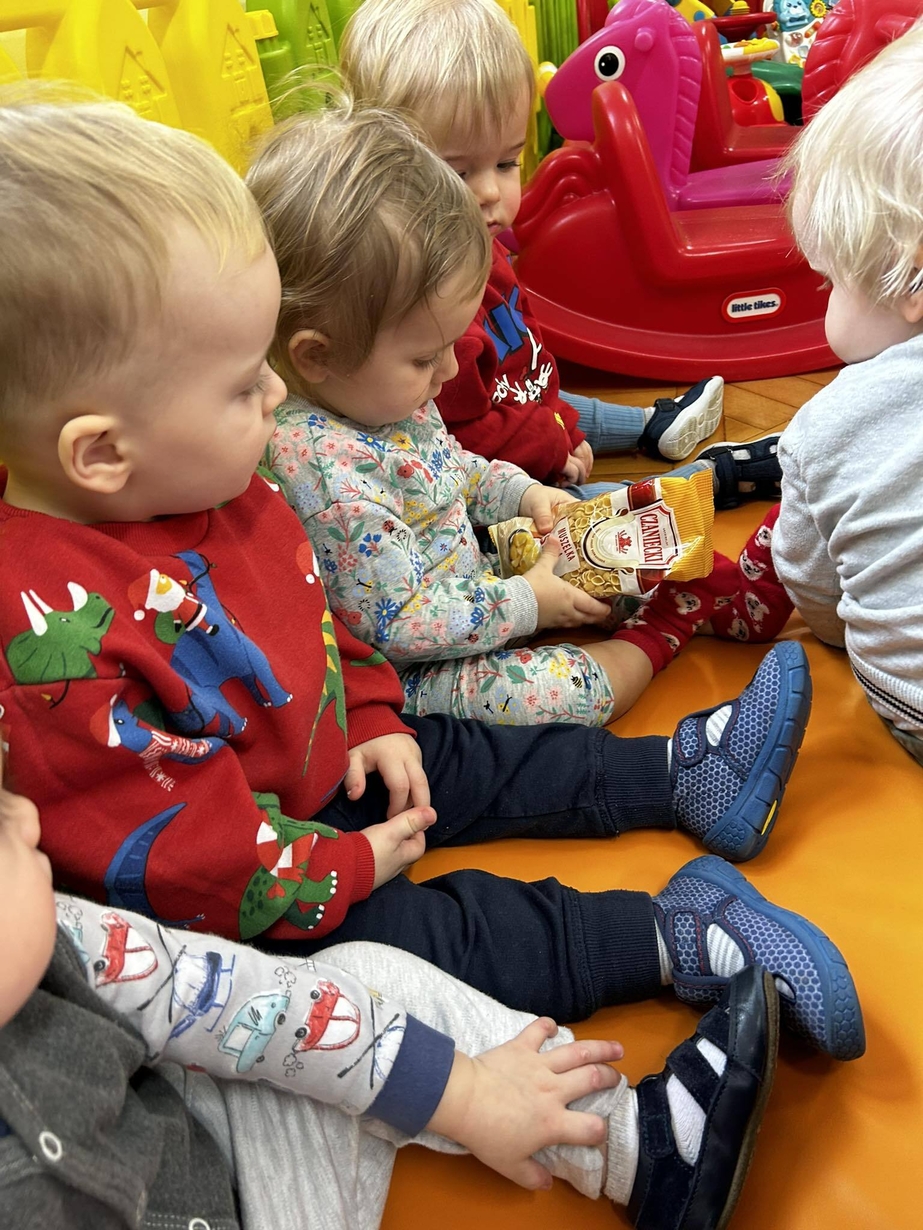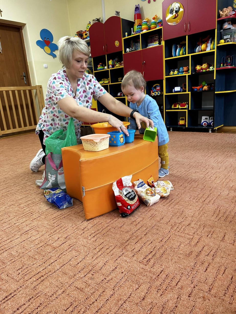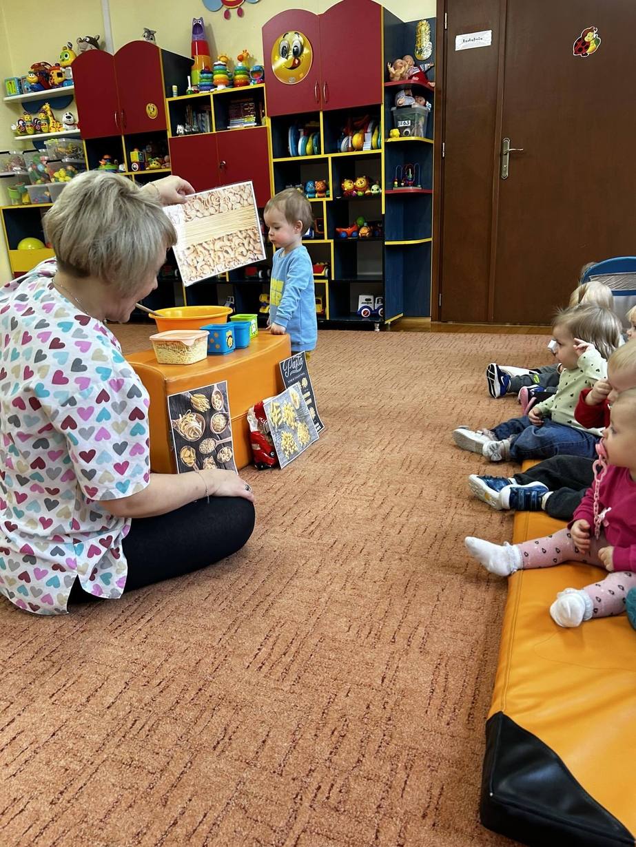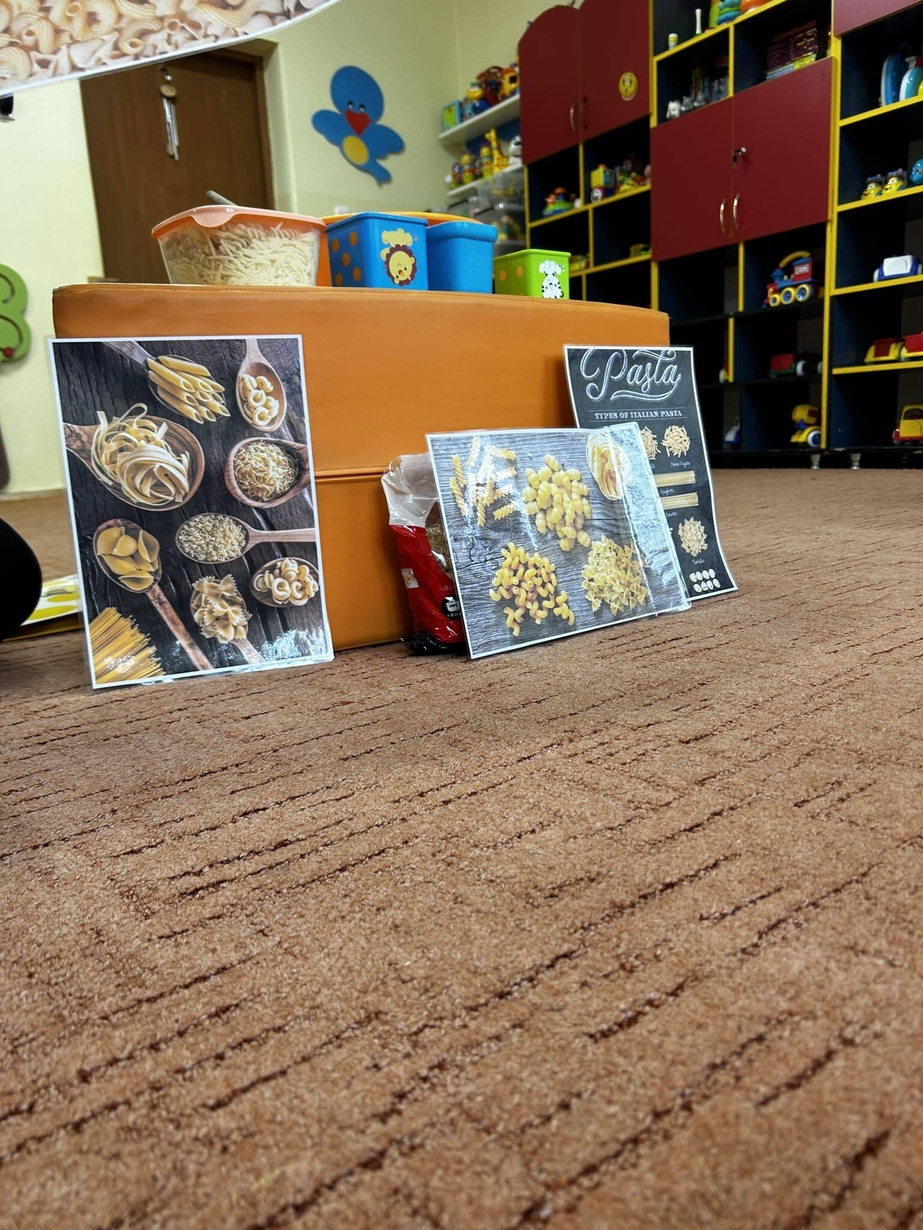 Na piedestale i jako danie główne były makarony, maluszki mogły zamieszać makaron, dotknąć nawet ugotowany makaron.