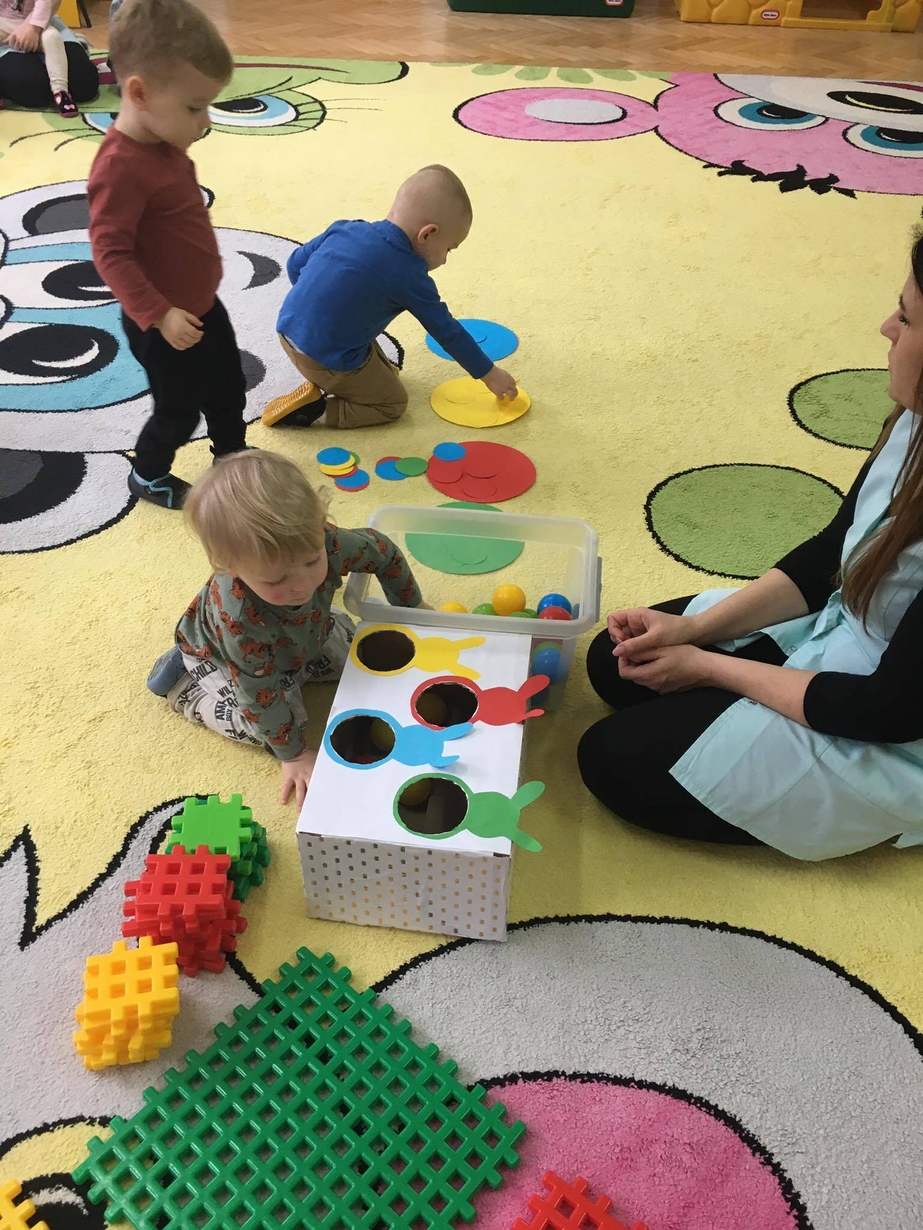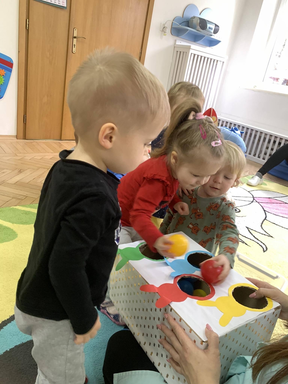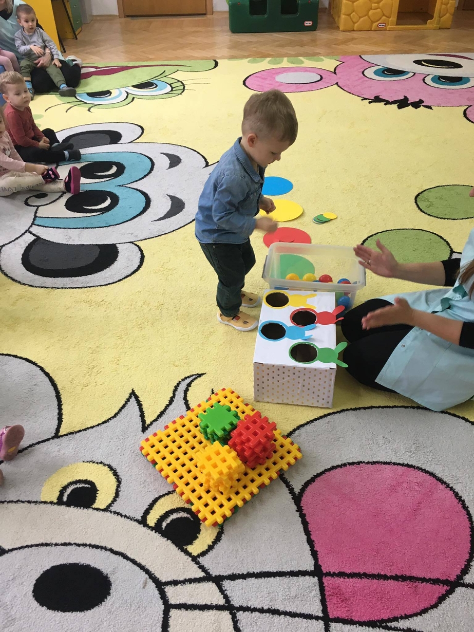 Podczas zajęć MISIE utrwalały umiejętności rozpoznawania kolorów .