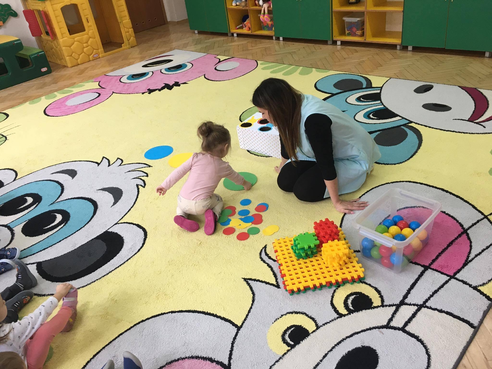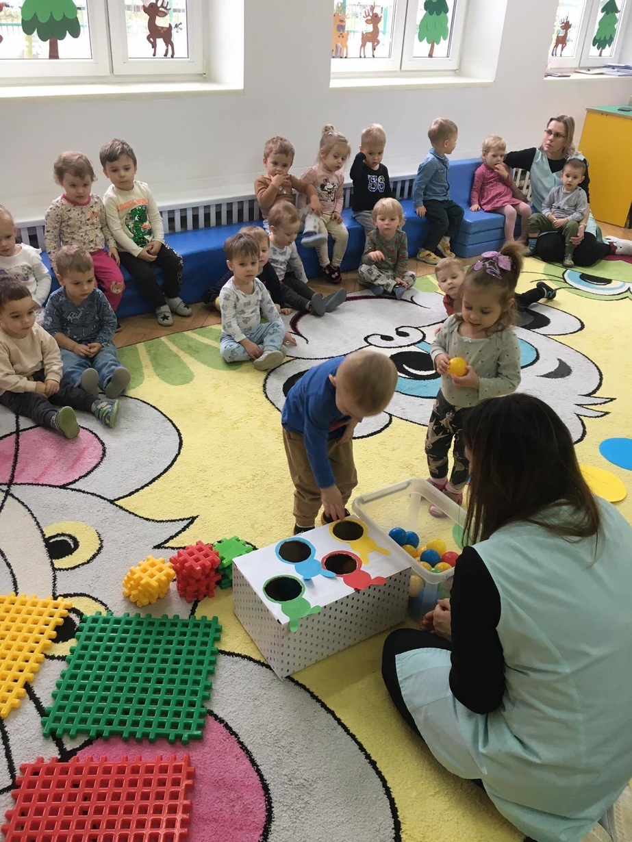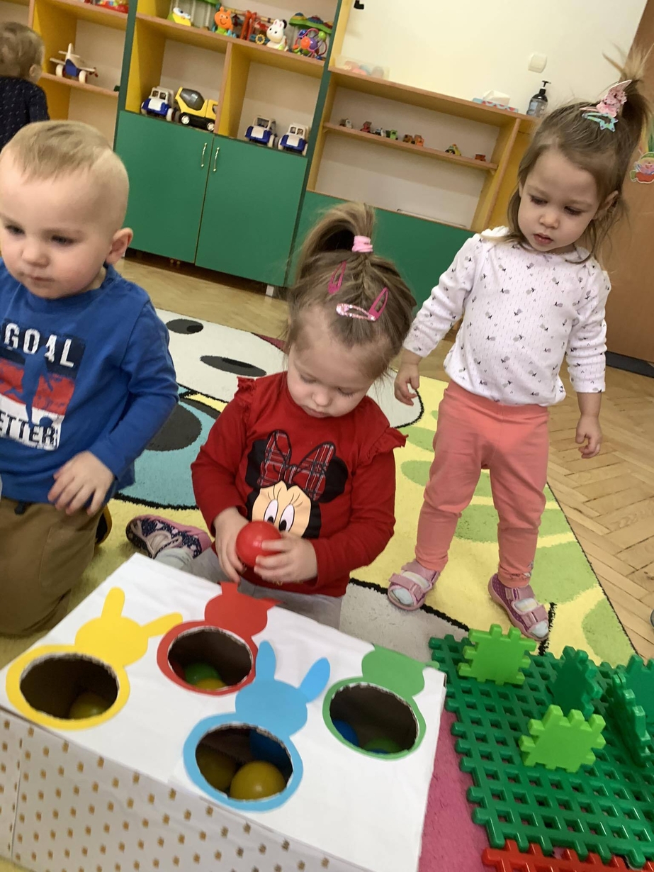 Podczas zajęć MISIE utrwalały umiejętności rozpoznawania kolorów .