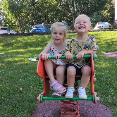 Zdjęcia przedstawiają dzieci bawiące się na świeżym powietrzu