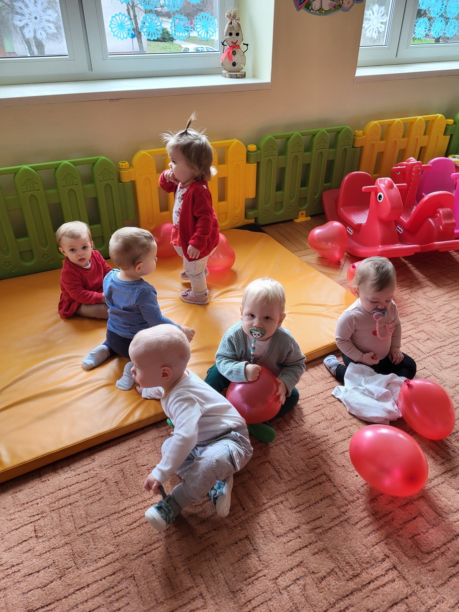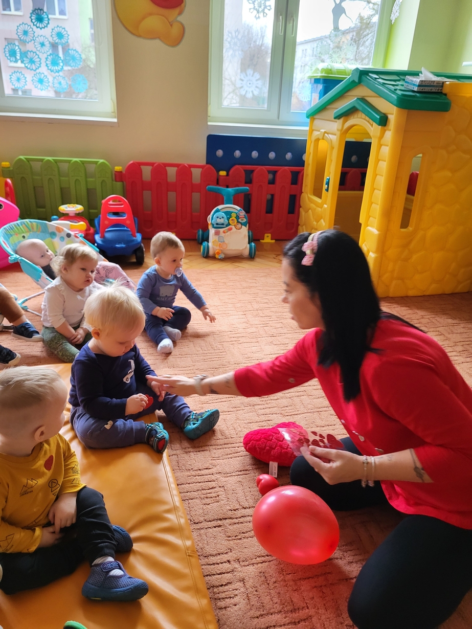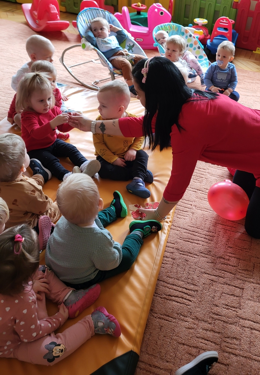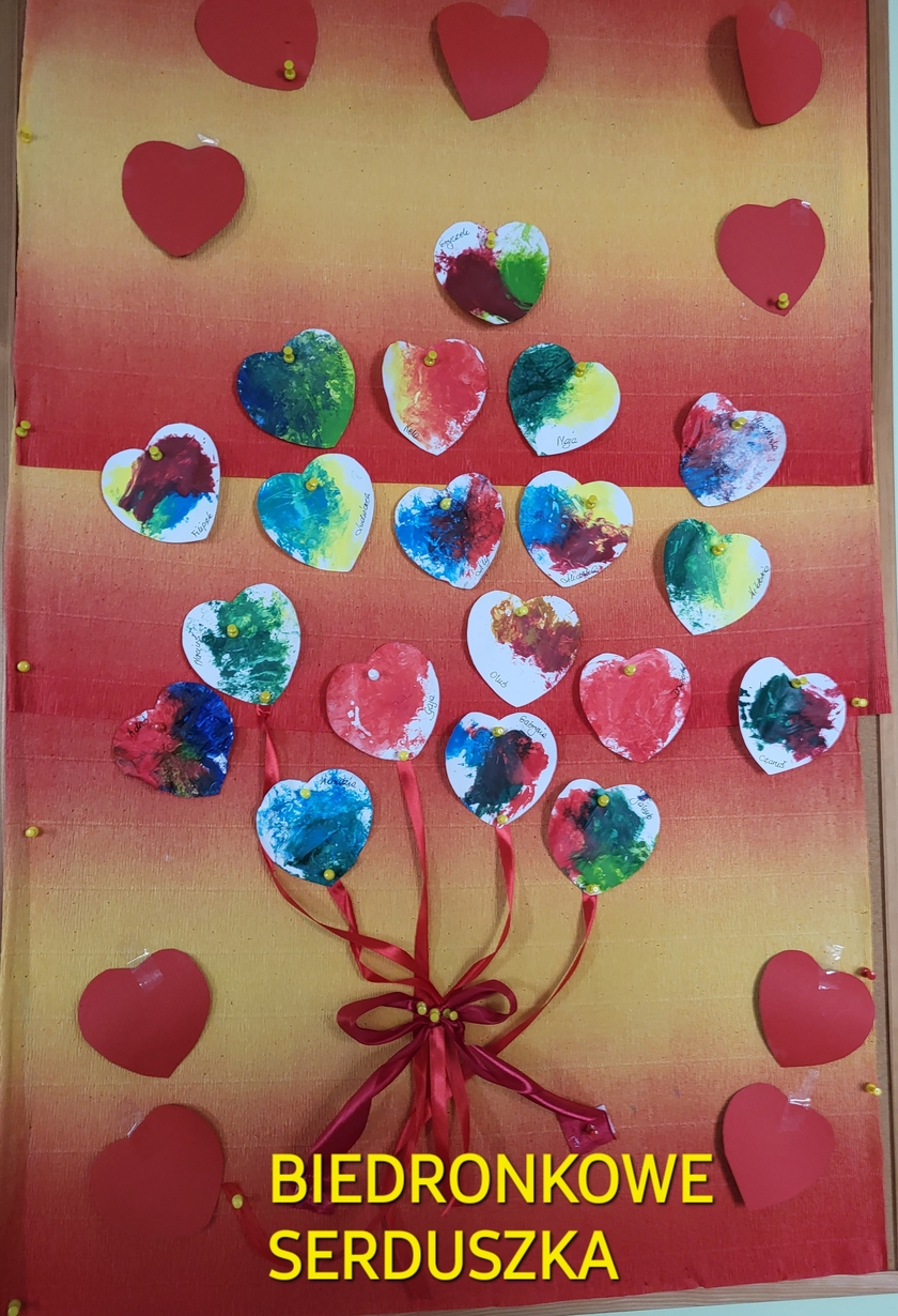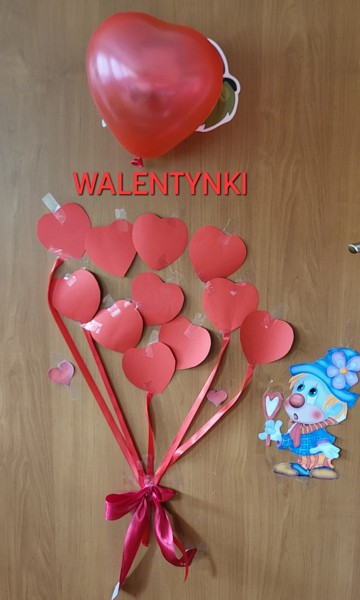 Biedronki obchodziły Walentynki.W sali królował kolor czerwony,a głównym symbolem dekoracji były czerwone serduszka.