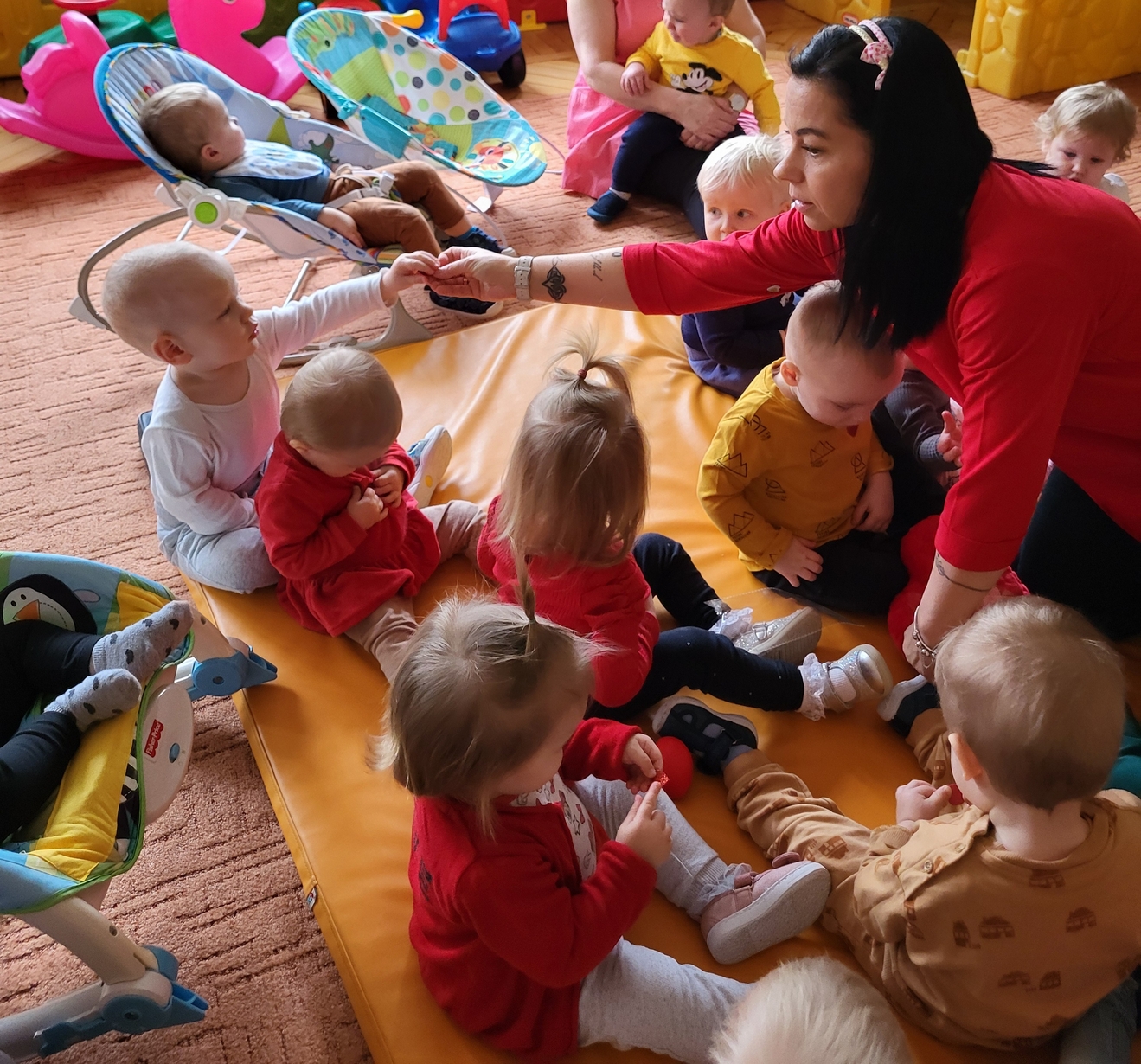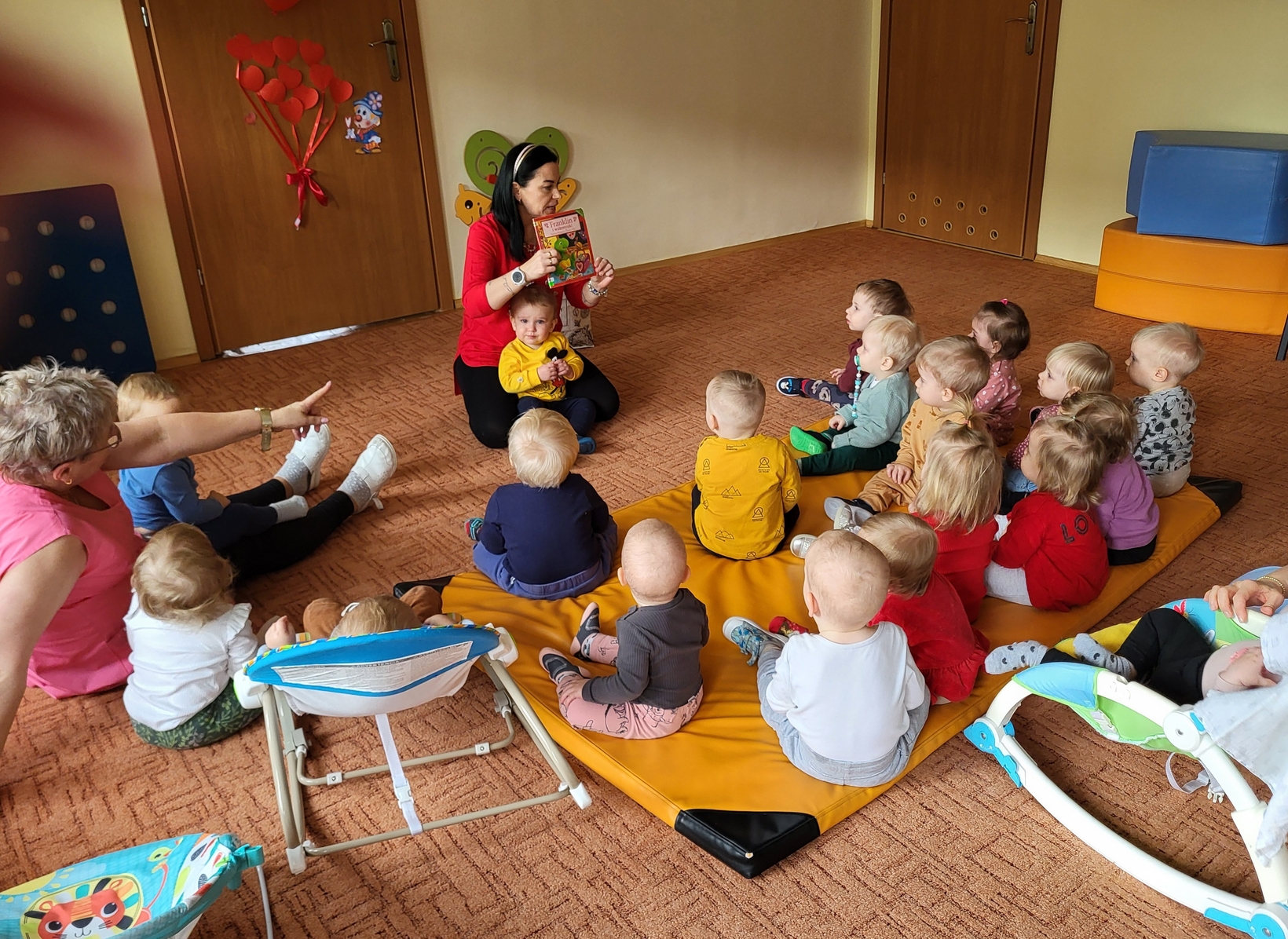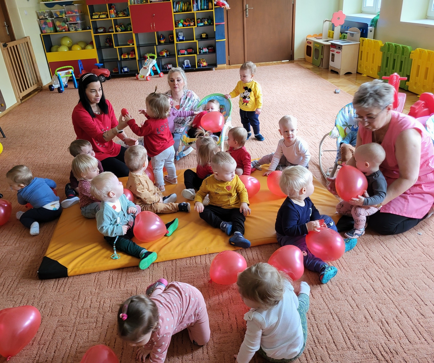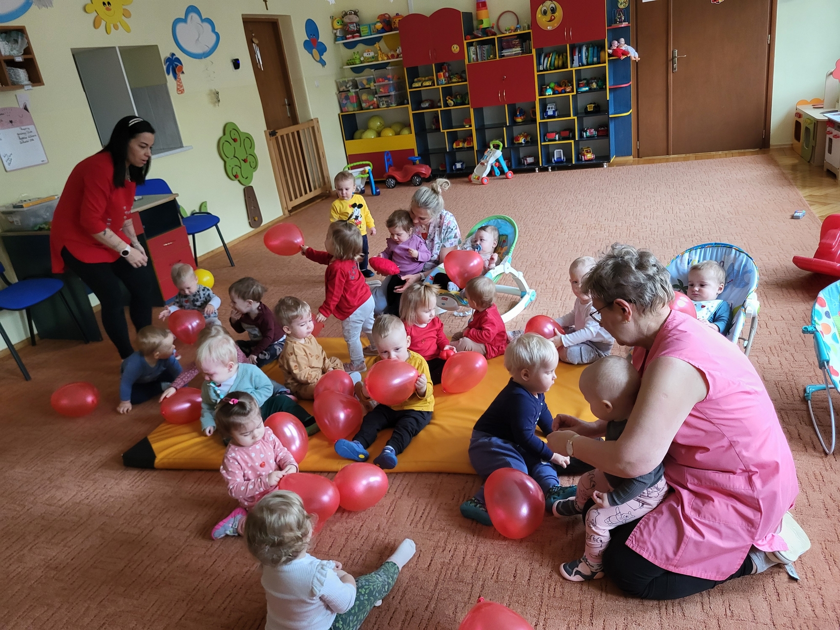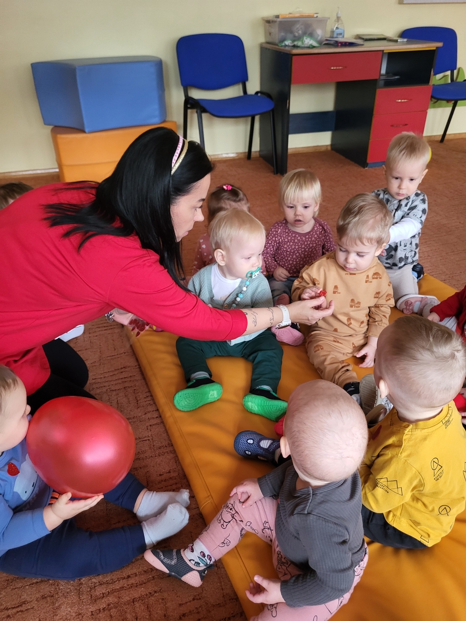 Biedronki obchodziły Walentynki.W sali królował kolor czerwony,a głównym symbolem dekoracji były czerwone serduszka.