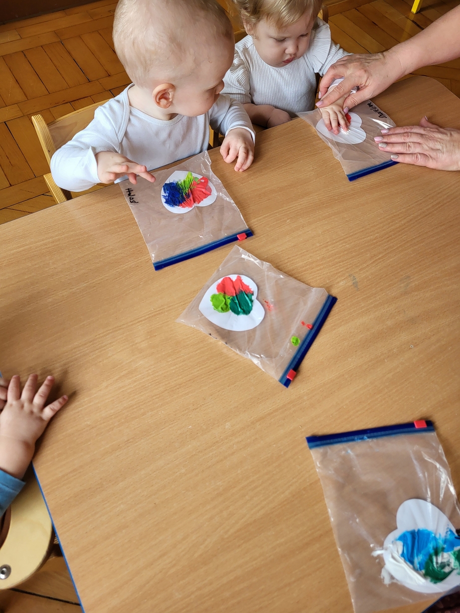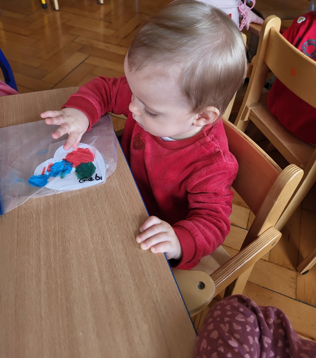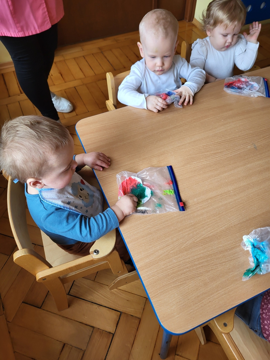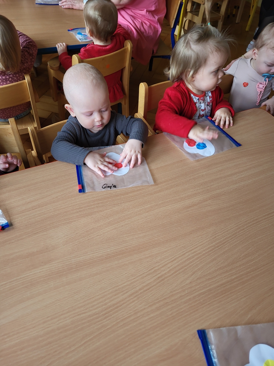 Maluszki zrobiły własne kolorowe serca ćwicząc przy tym paluszki.