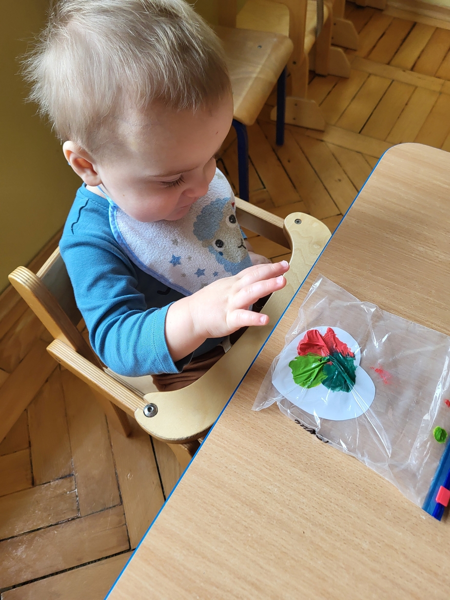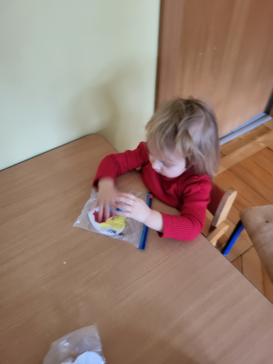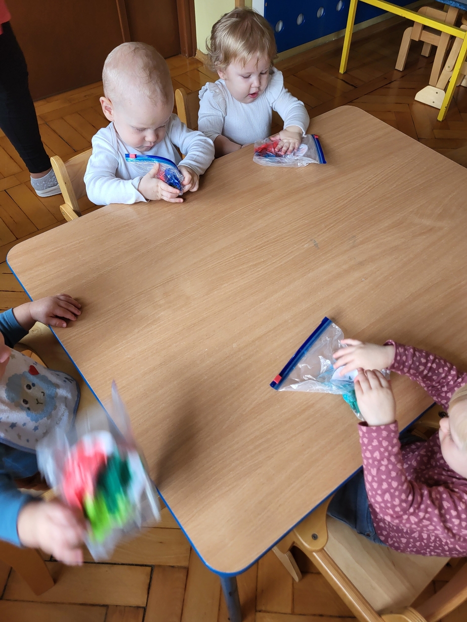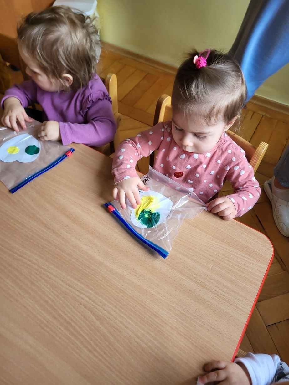 Maluszki zrobiły własne kolorowe serca ćwicząc przy tym paluszki.