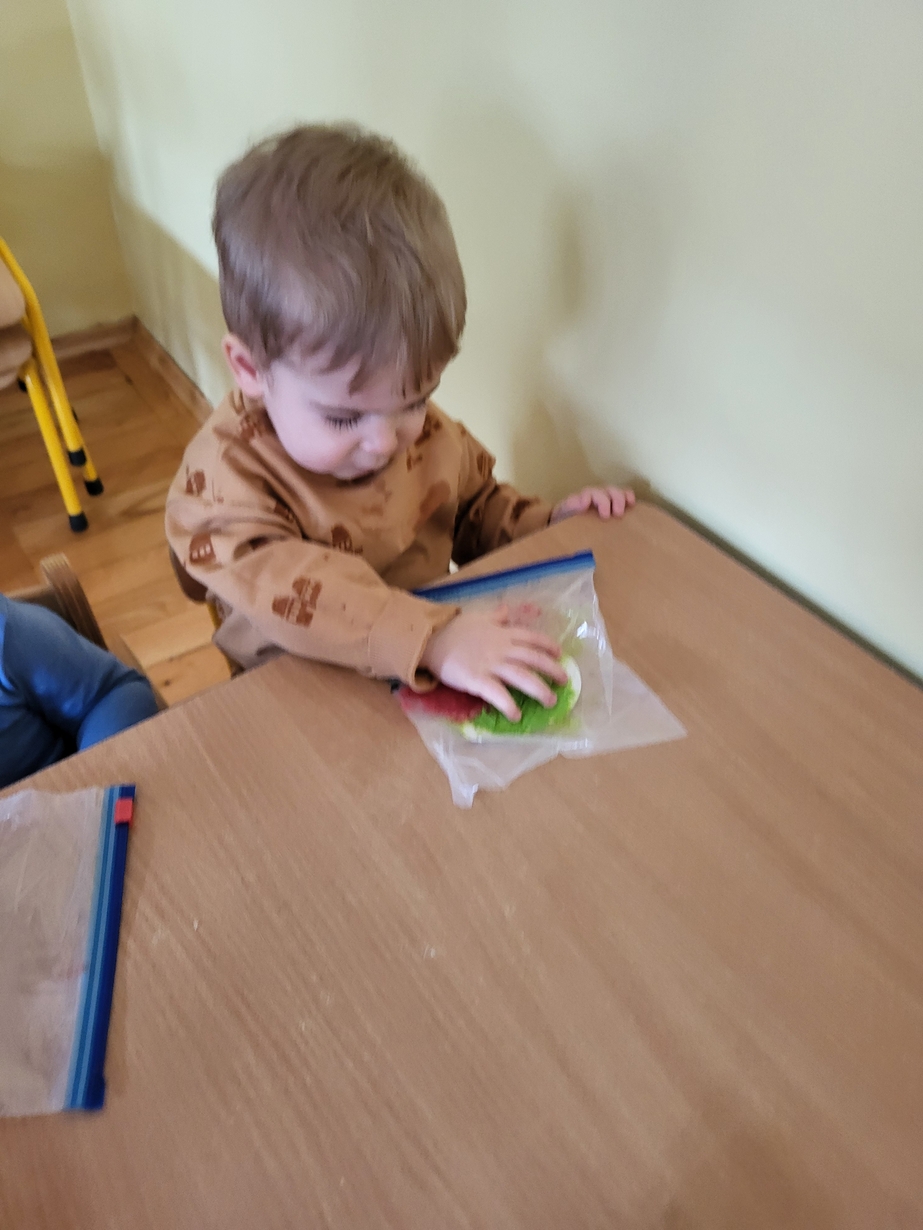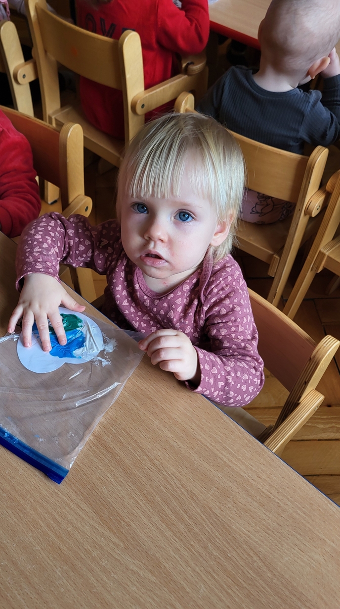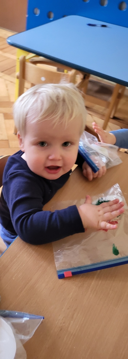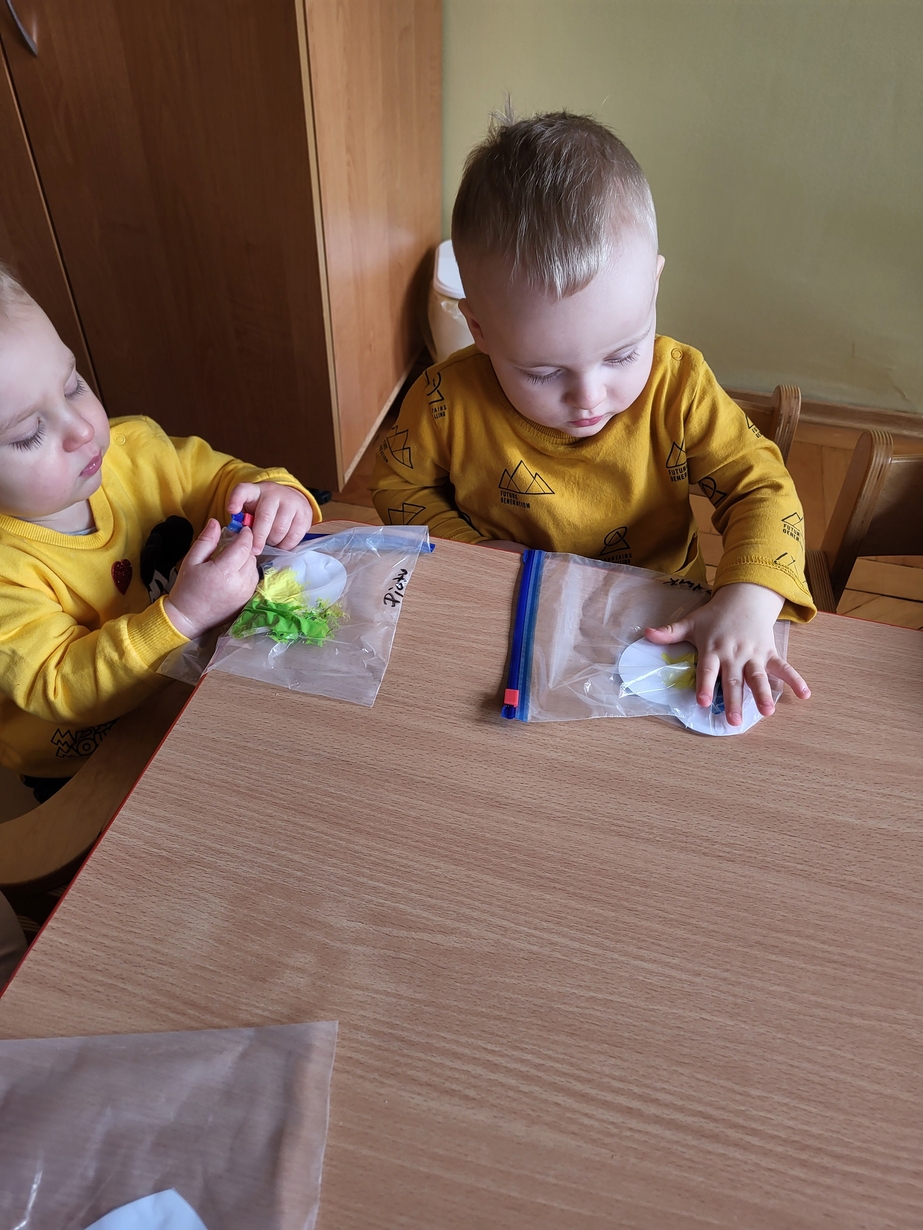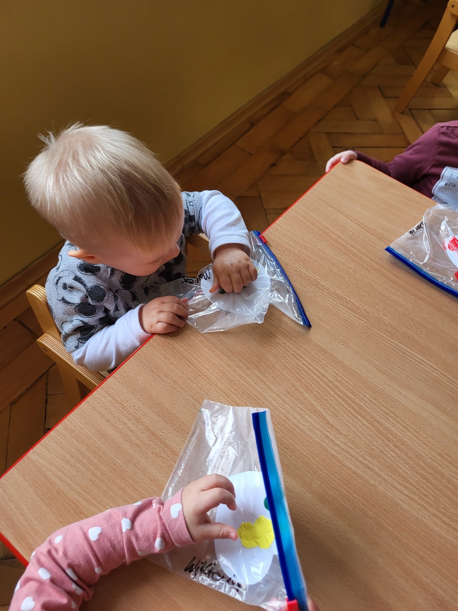 Maluszki zrobiły własne kolorowe serca ćwicząc przy tym paluszki.