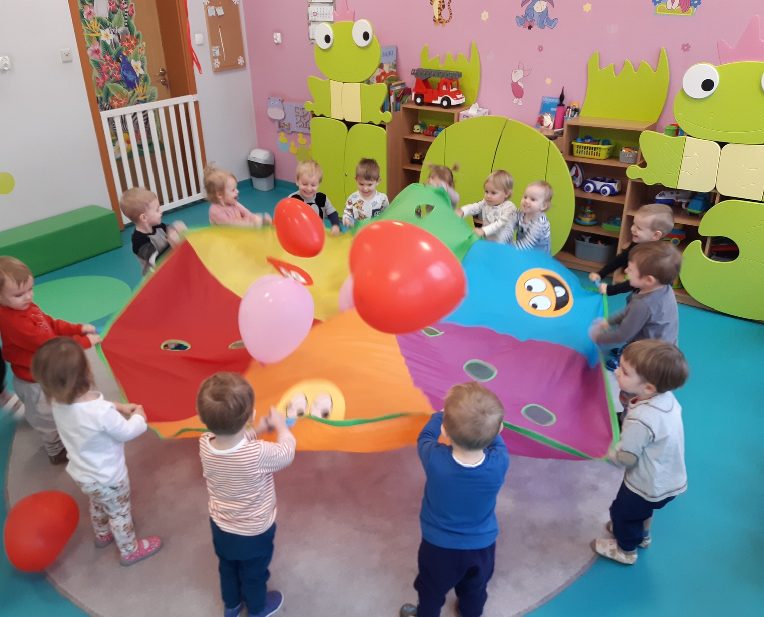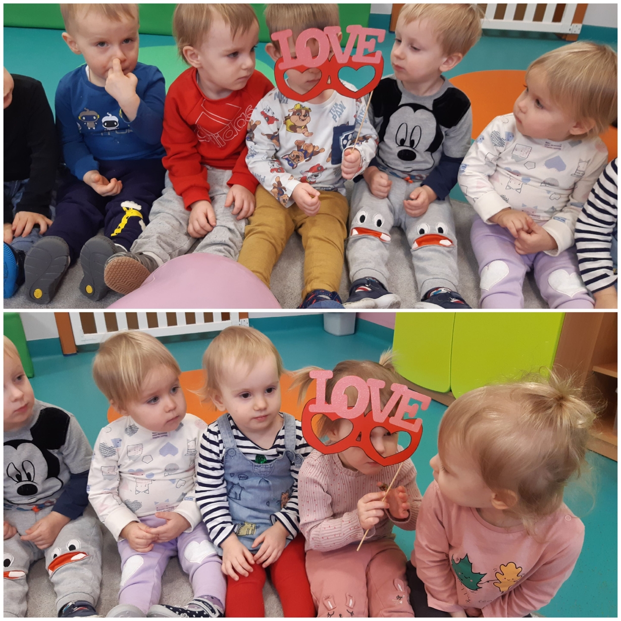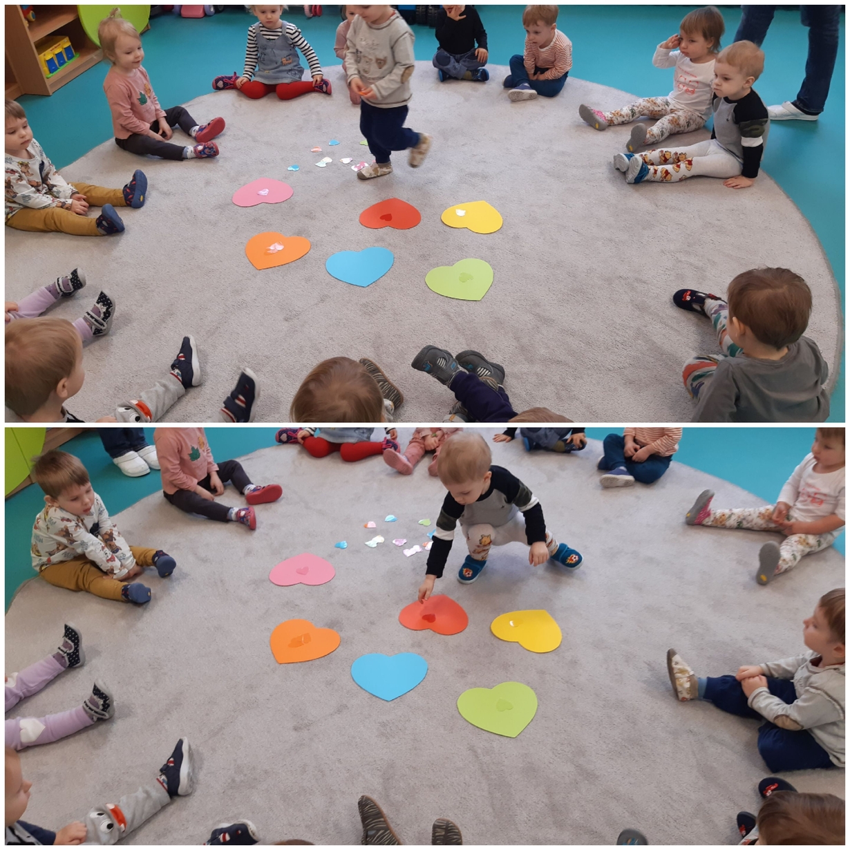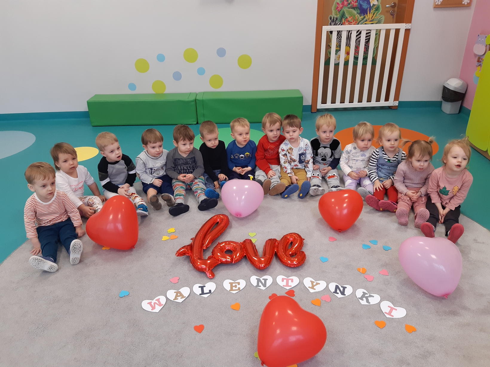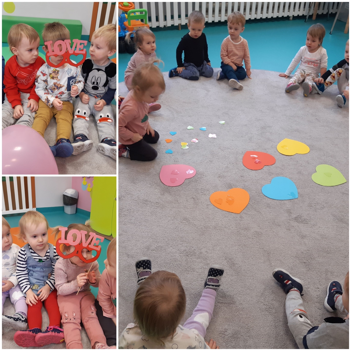 Dziś 14 lutego na grupie Żabki obchodziliśmy Walentynki. Tuż po śniadaniu w ramach pogadanki dzieci poznały tradycje walentynkowe oraz dowiedziały się jak ważne jest okazywanie uczuć przyjażni i sympatii. Później nadszedł czas na przypomnienie sobie podstawowych kolorów poprzez dopasowywanie malutkich serduszek do odpowiadających im kolorów. Nasze Żabki wykonały także pracę plastyczną związaną z tematyką tego święta a mianowicie kolorowały kredkami oraz przyklejały kolorowe serduszka. Po zajęciach nadszedł czas na wspólną zabawę z chustą animacyjną oraz tańce przy piosenkach,,Walentynki, walentynki..", ,,Mała Ulijanko..." oraz pamiątkowe zdjęcia.