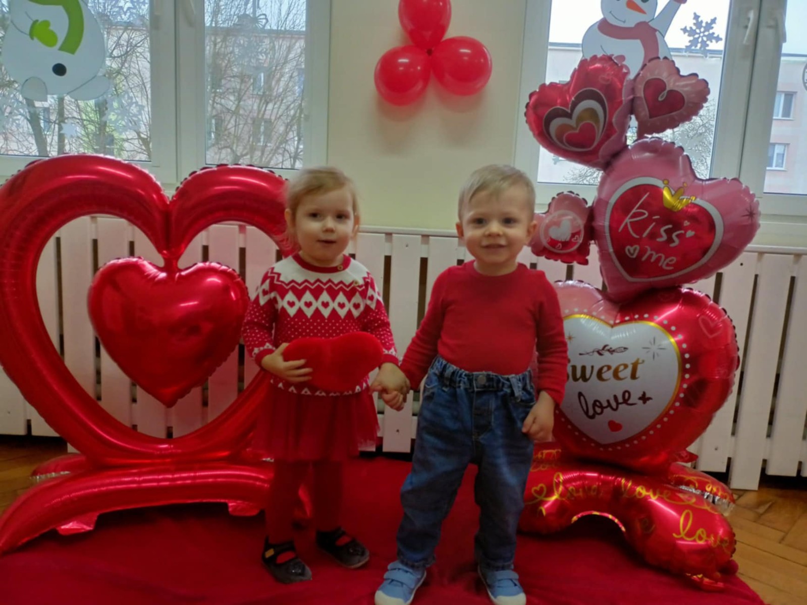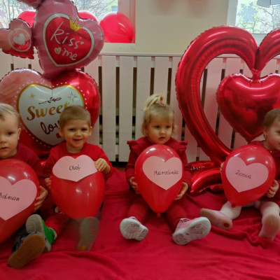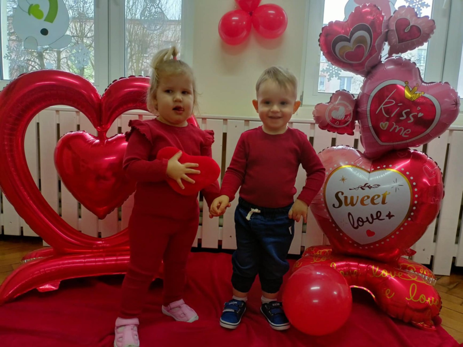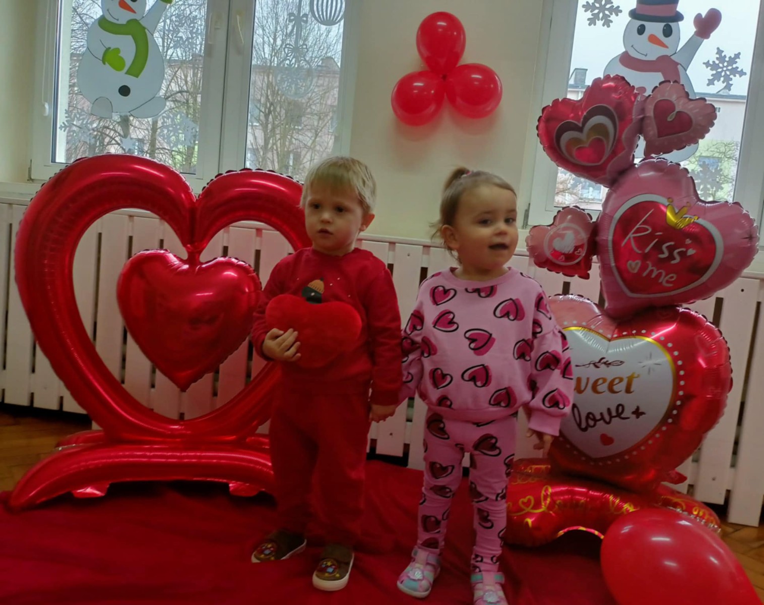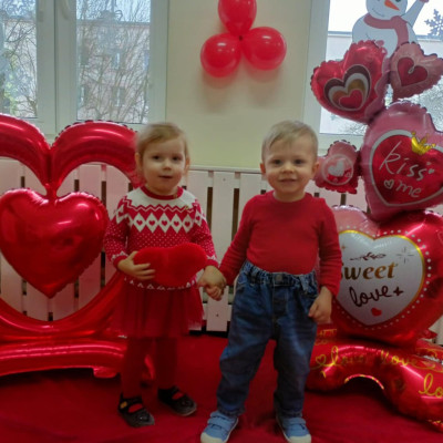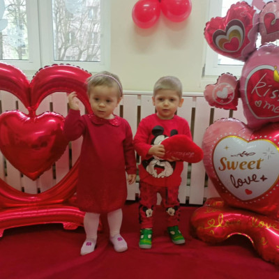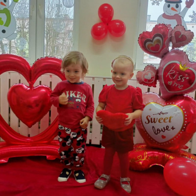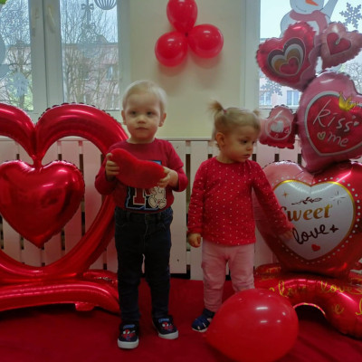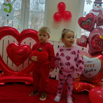 Zdjęcie przedstawia dzieci podczas sesji walentynkowej.