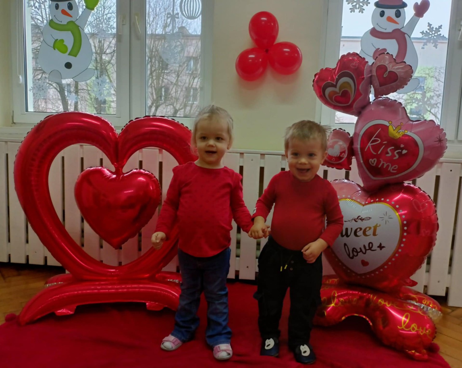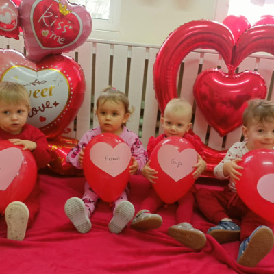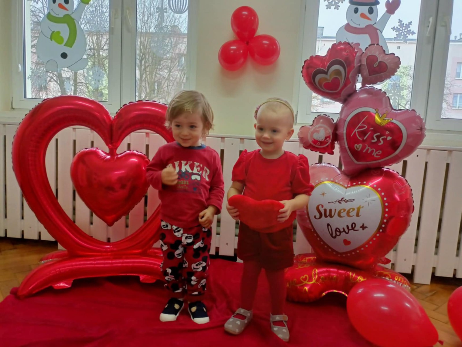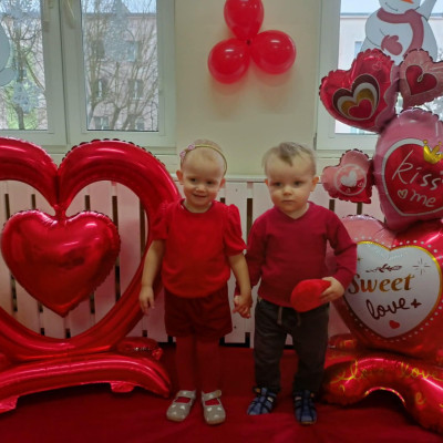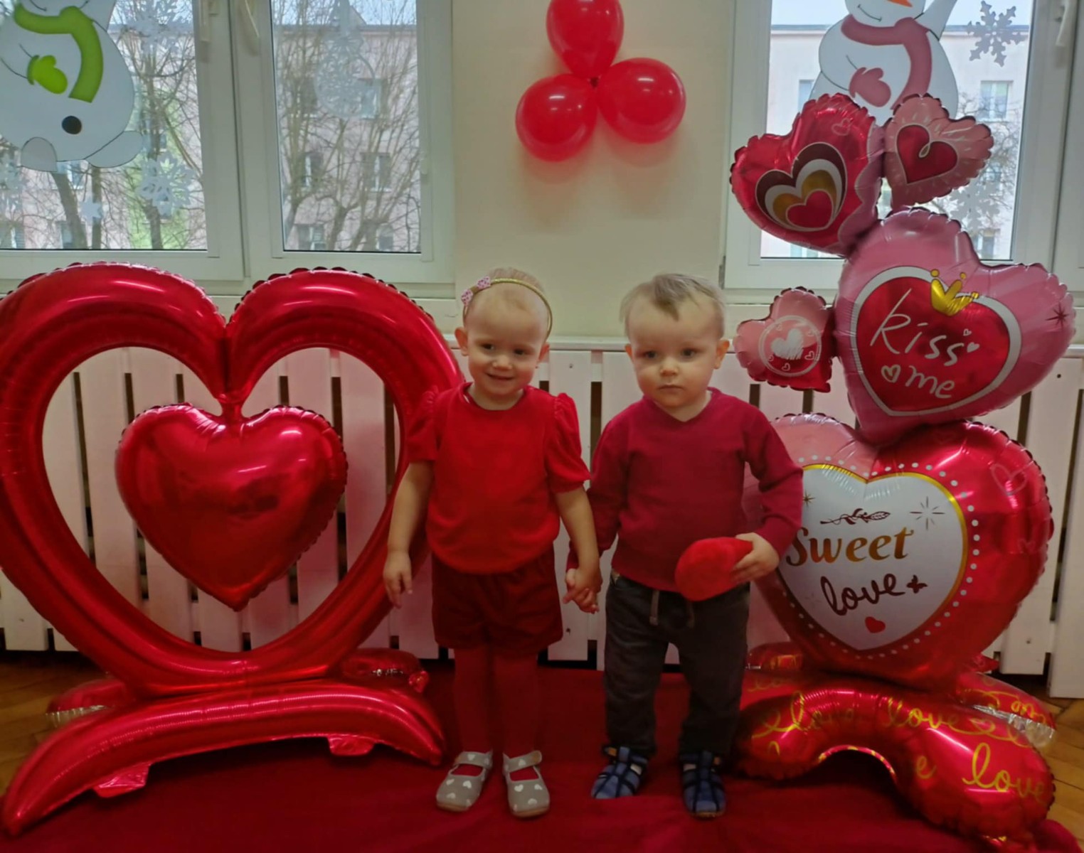 Zdjęcie przedstawia dzieci podczas sesji walentynkowej.