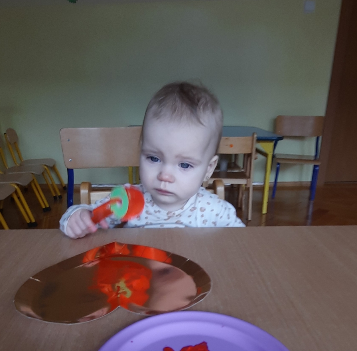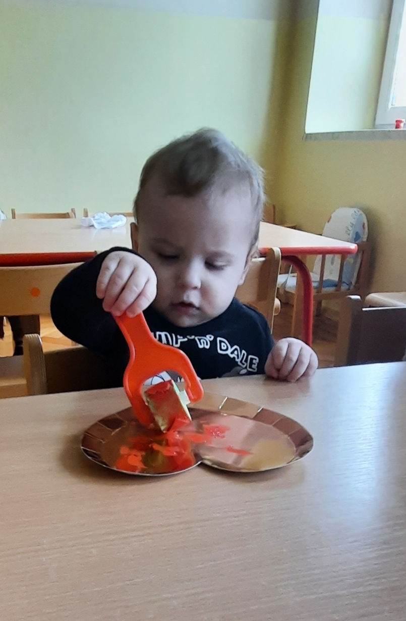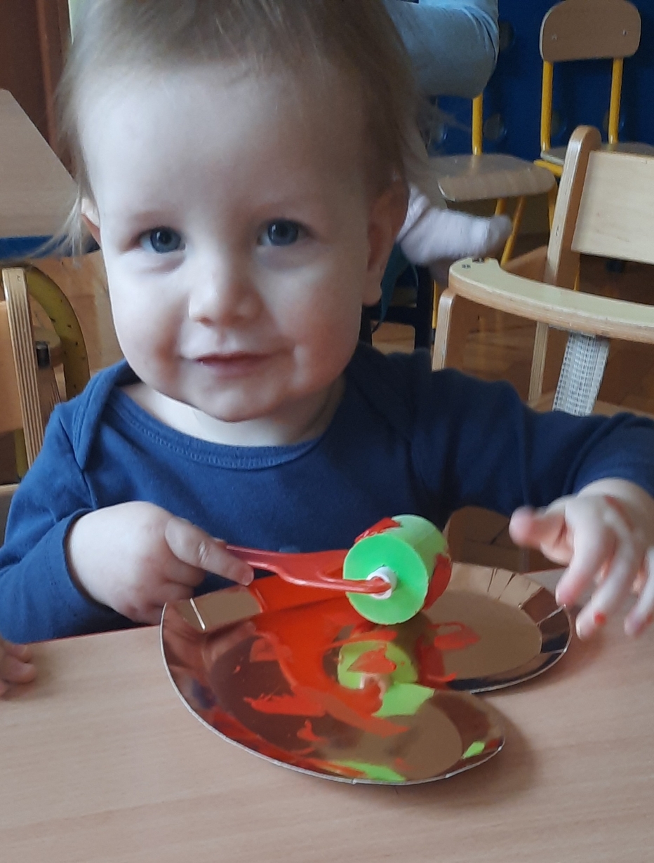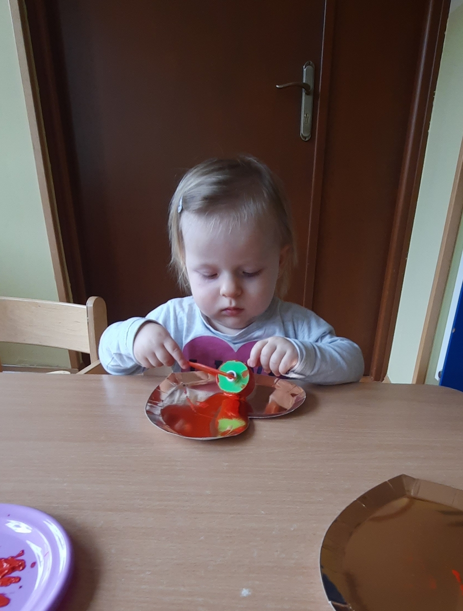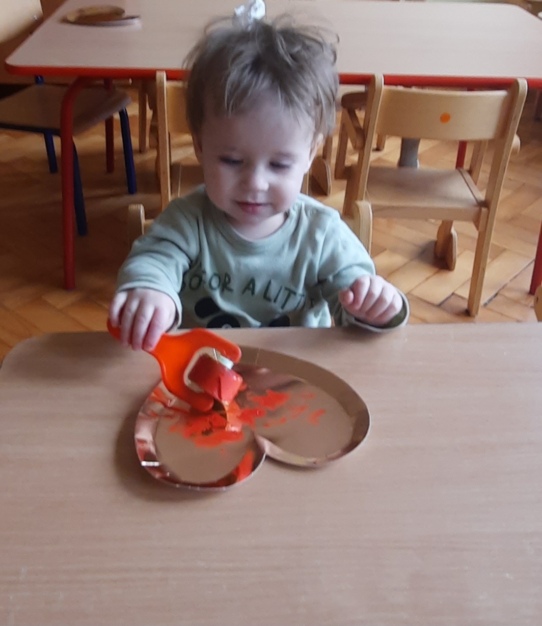 Serduszkowe święto Ciocie postanowiły wykorzystać do ćwiczenia małych rączek?. Złote serce ,czerwona farbka, malutki wałeczek i stworki walentynkowe gotowe. Serduszkowa zabawa połączona z nauką przyniosła wiele radości Naszym maluszkom i powstały piękne prace.