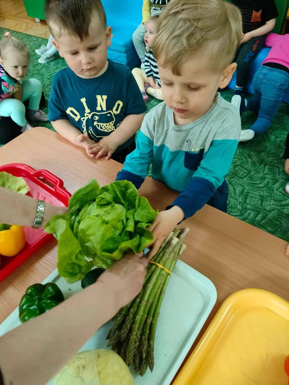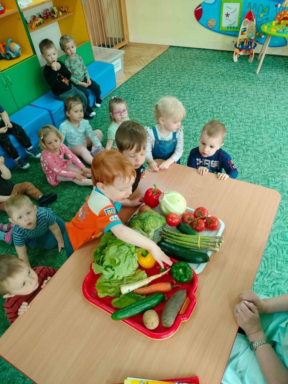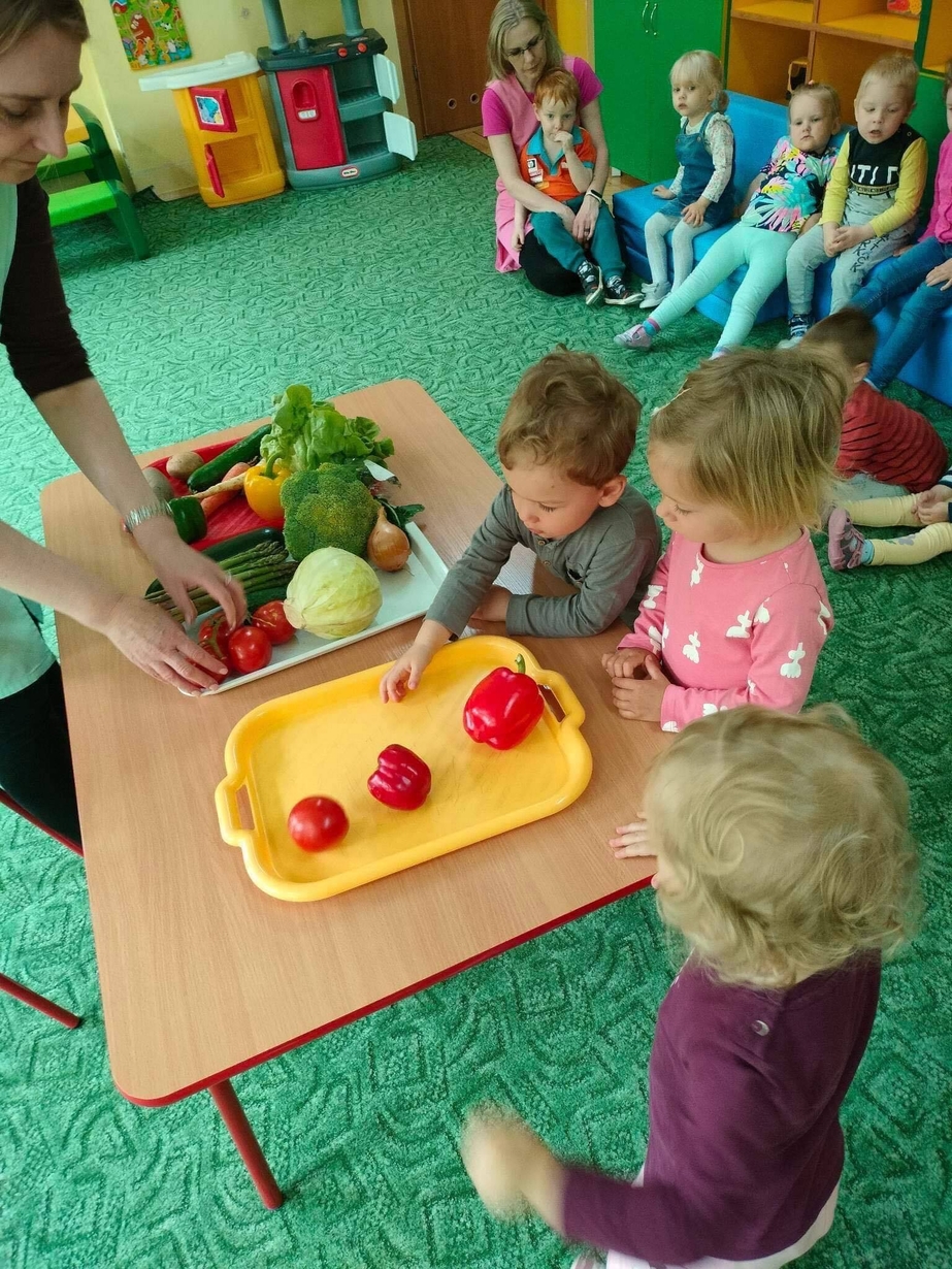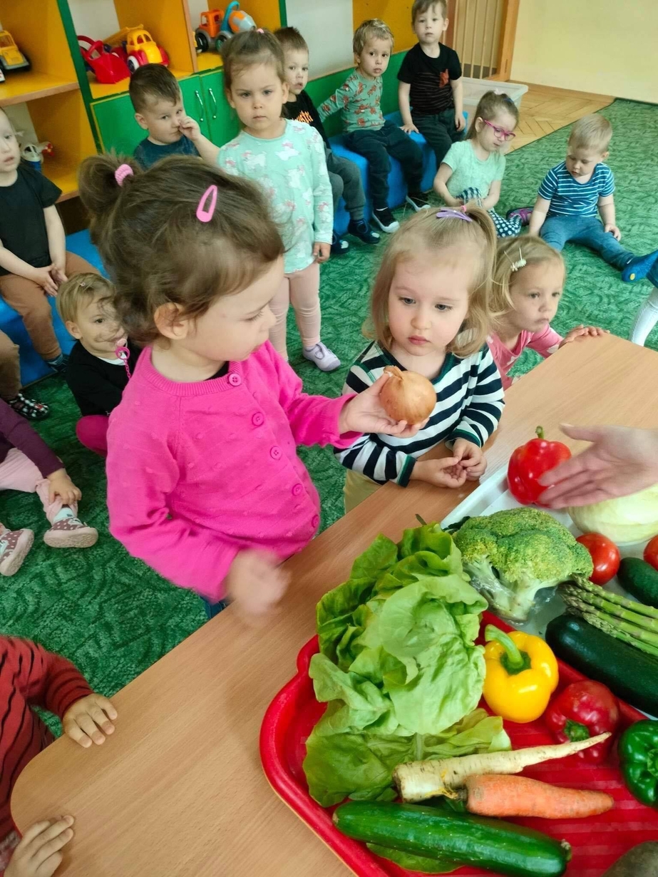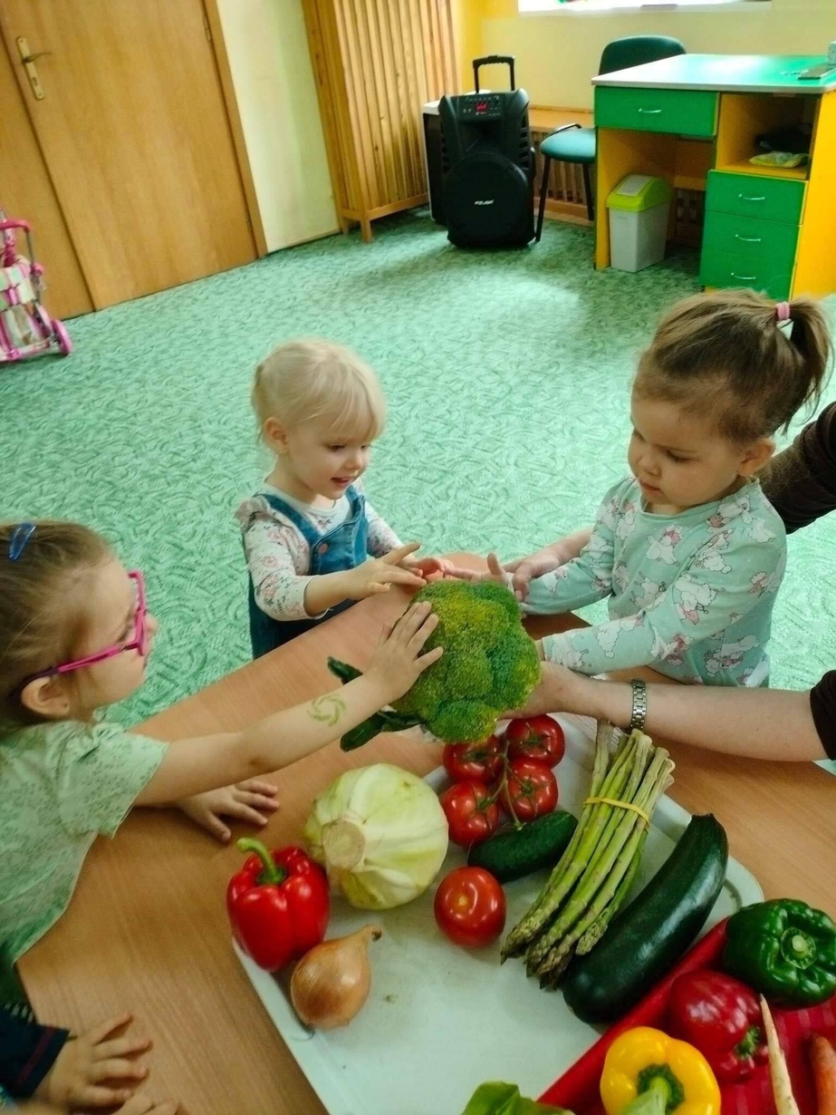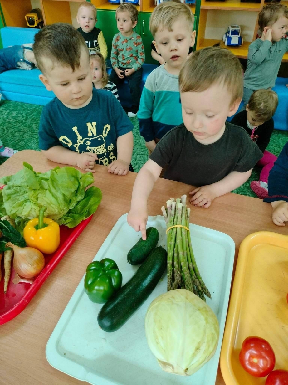 Dzieci z grupy „Misie” poznawały różne warzywa, ich wygląd i nazwy. Wykonały pracę plastyczną oraz uczestniczyły w zabawie kształtującej sprawność ruchową.