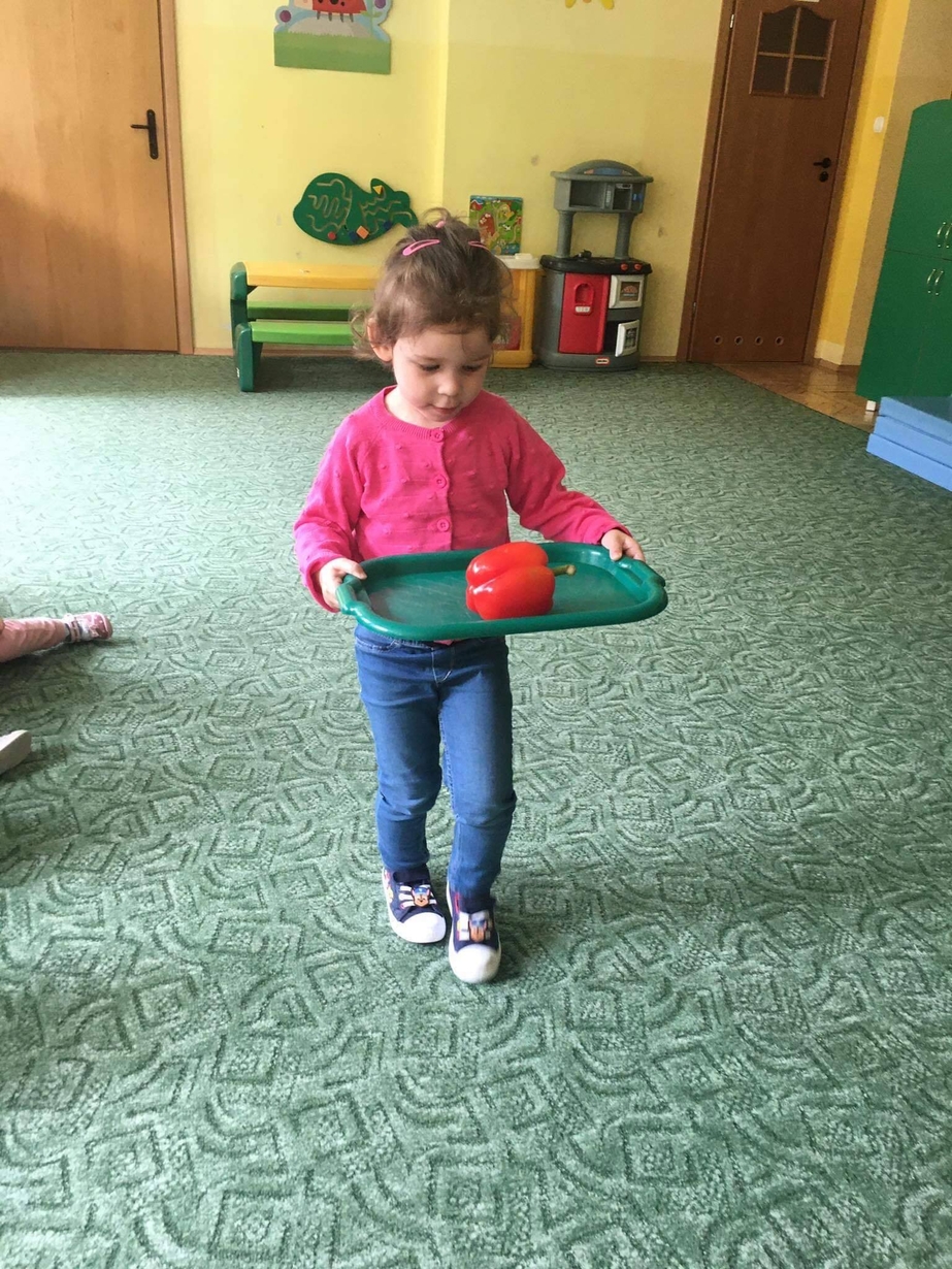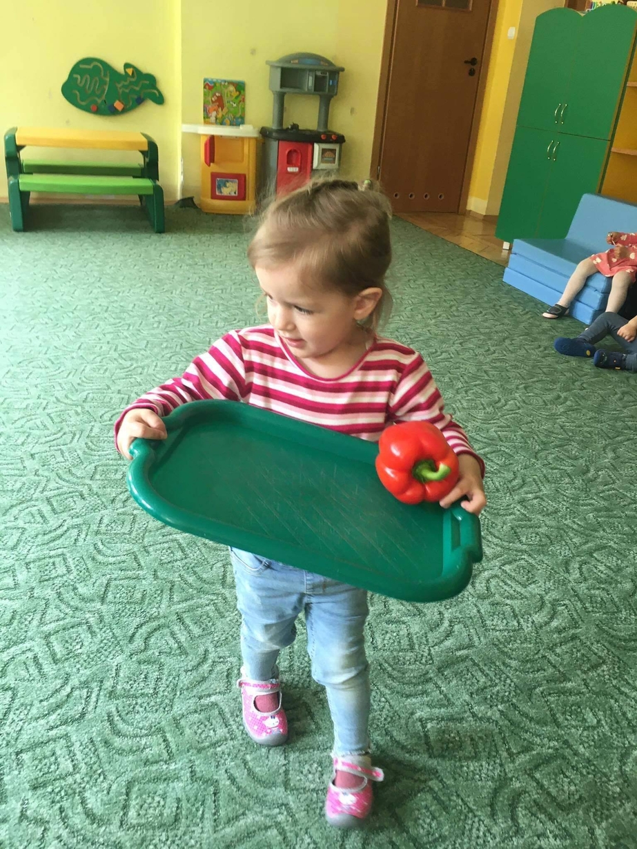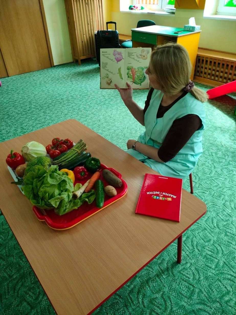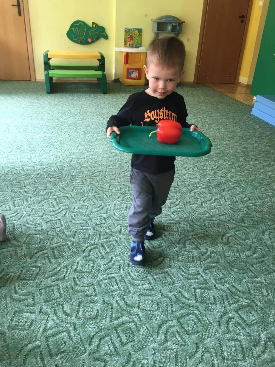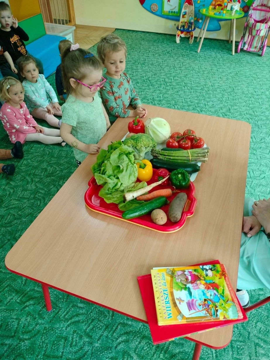 Dzieci z grupy „Misie” poznawały różne warzywa, ich wygląd i nazwy. Wykonały pracę plastyczną oraz uczestniczyły w zabawie kształtującej sprawność ruchową.