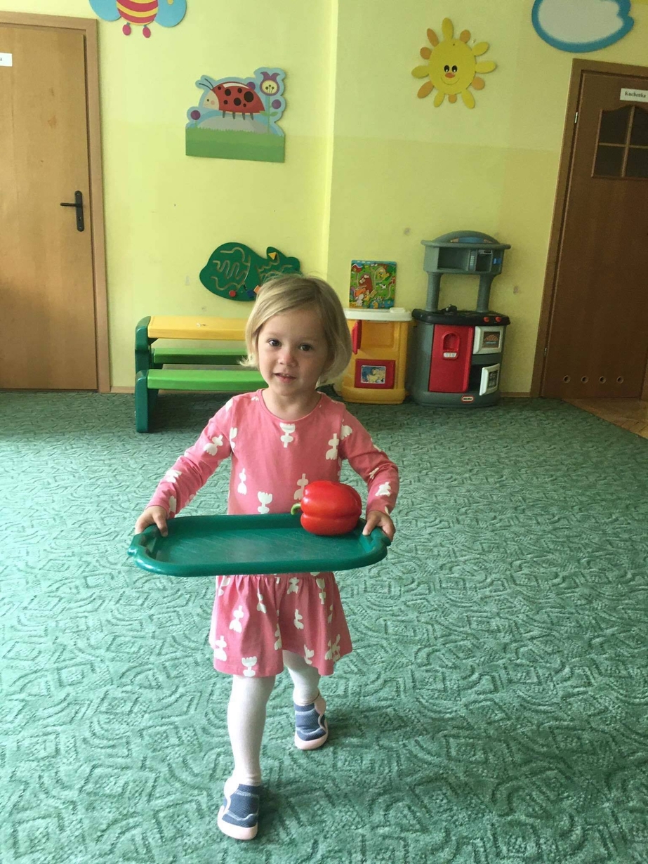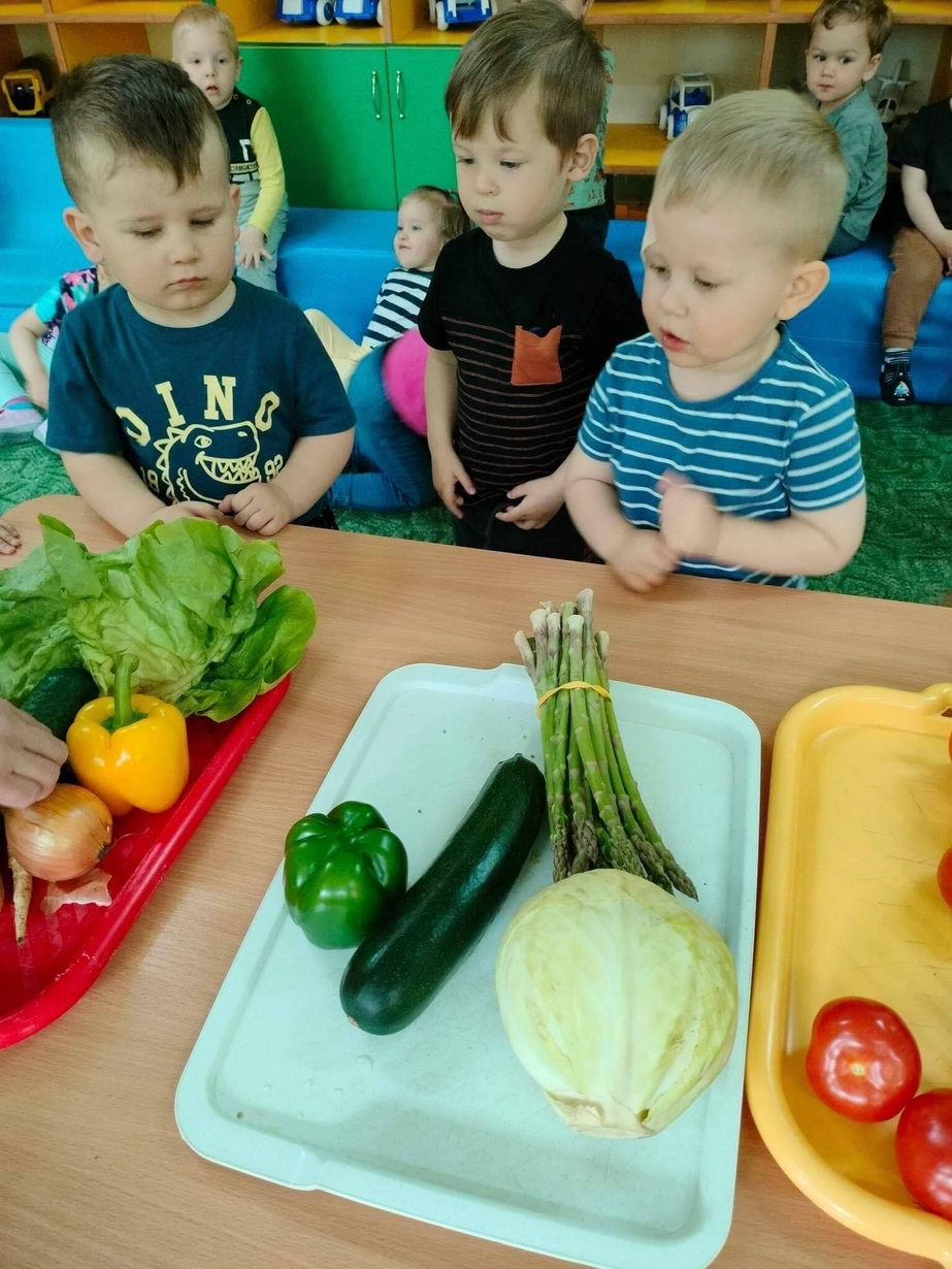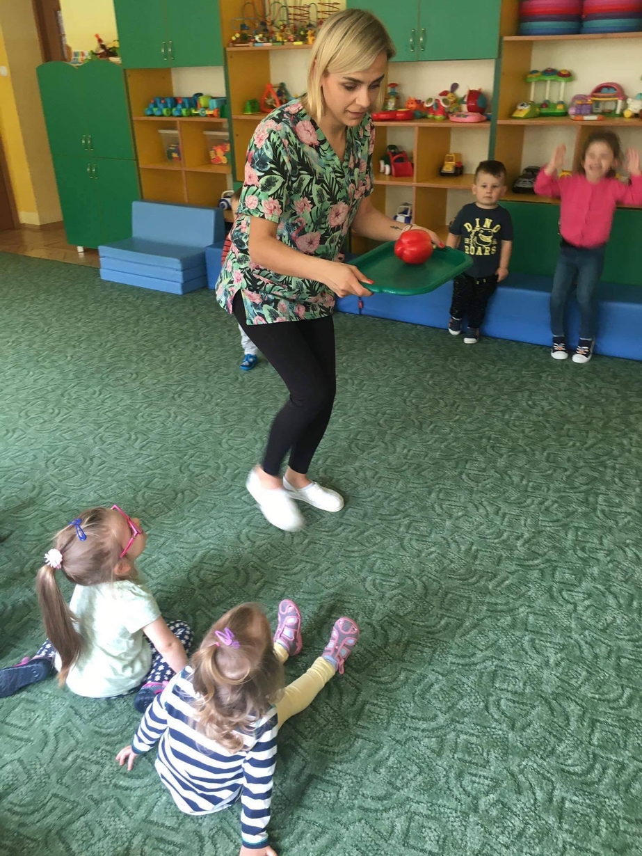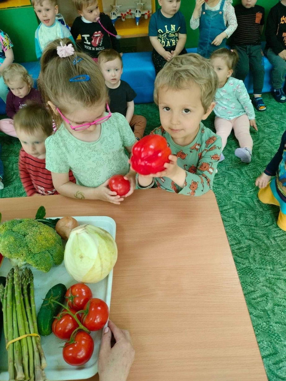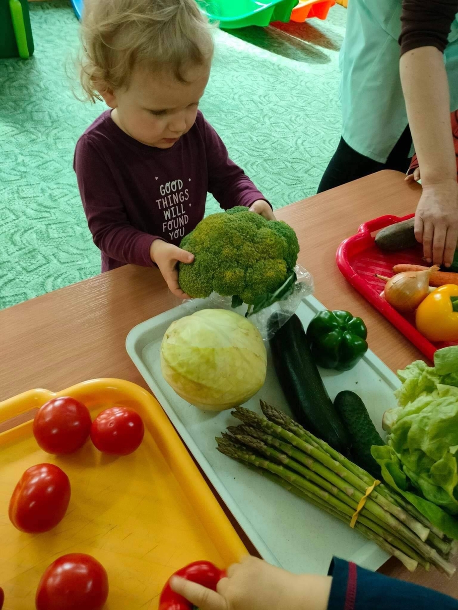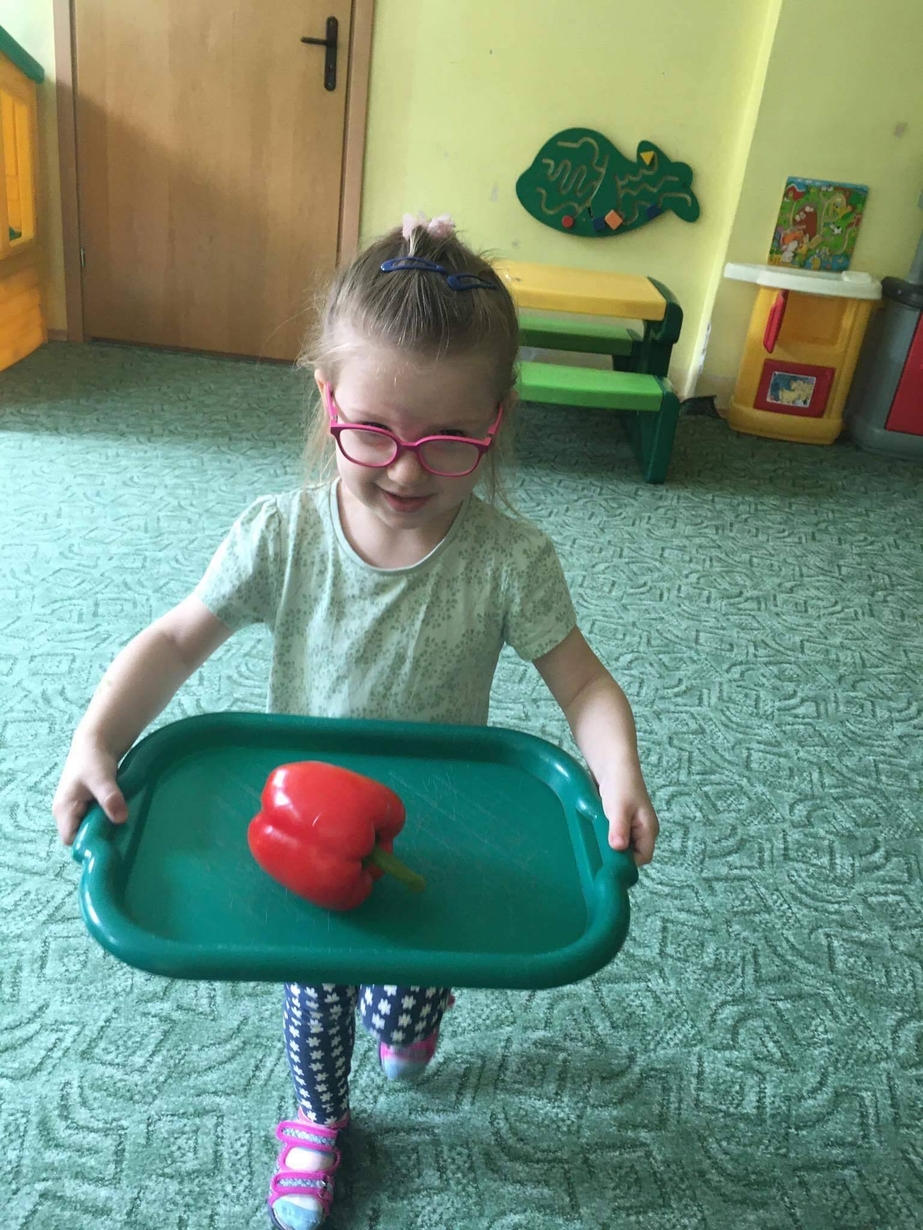 Dzieci z grupy „Misie” poznawały różne warzywa, ich wygląd i nazwy. Wykonały pracę plastyczną oraz uczestniczyły w zabawie kształtującej sprawność ruchową.