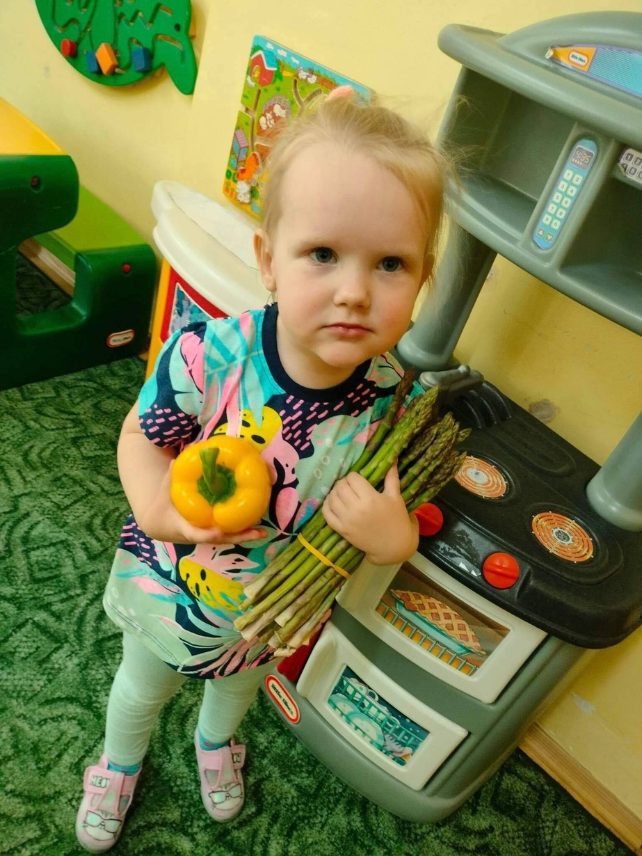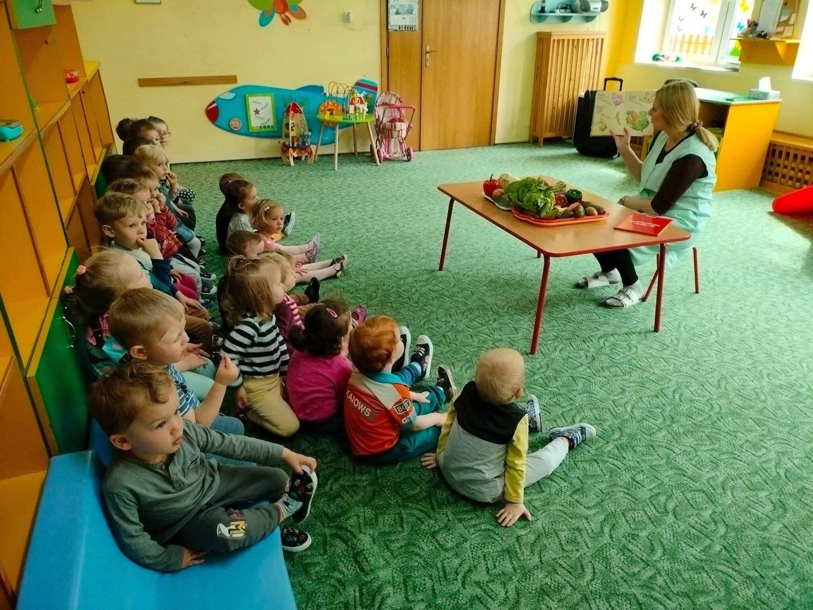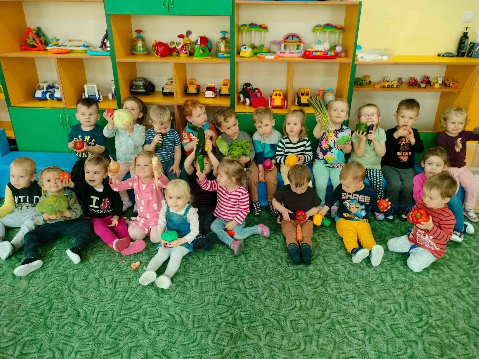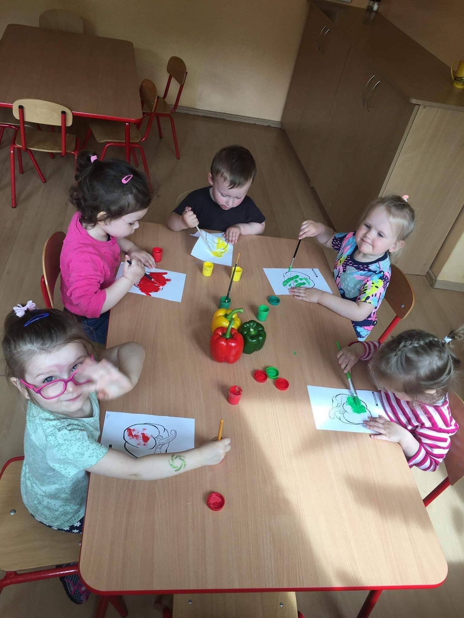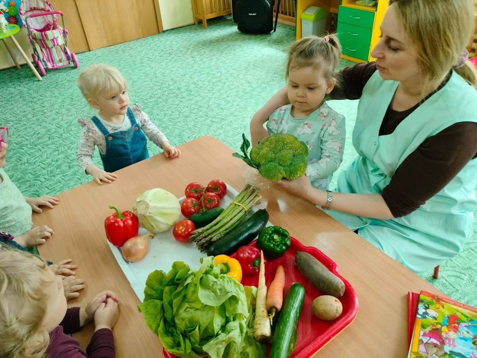 Dzieci z grupy „Misie” poznawały różne warzywa, ich wygląd i nazwy. Wykonały pracę plastyczną oraz uczestniczyły w zabawie kształtującej sprawność ruchową.