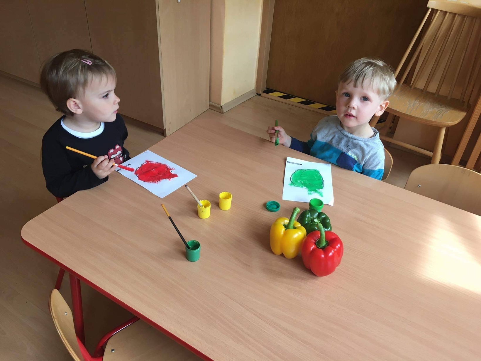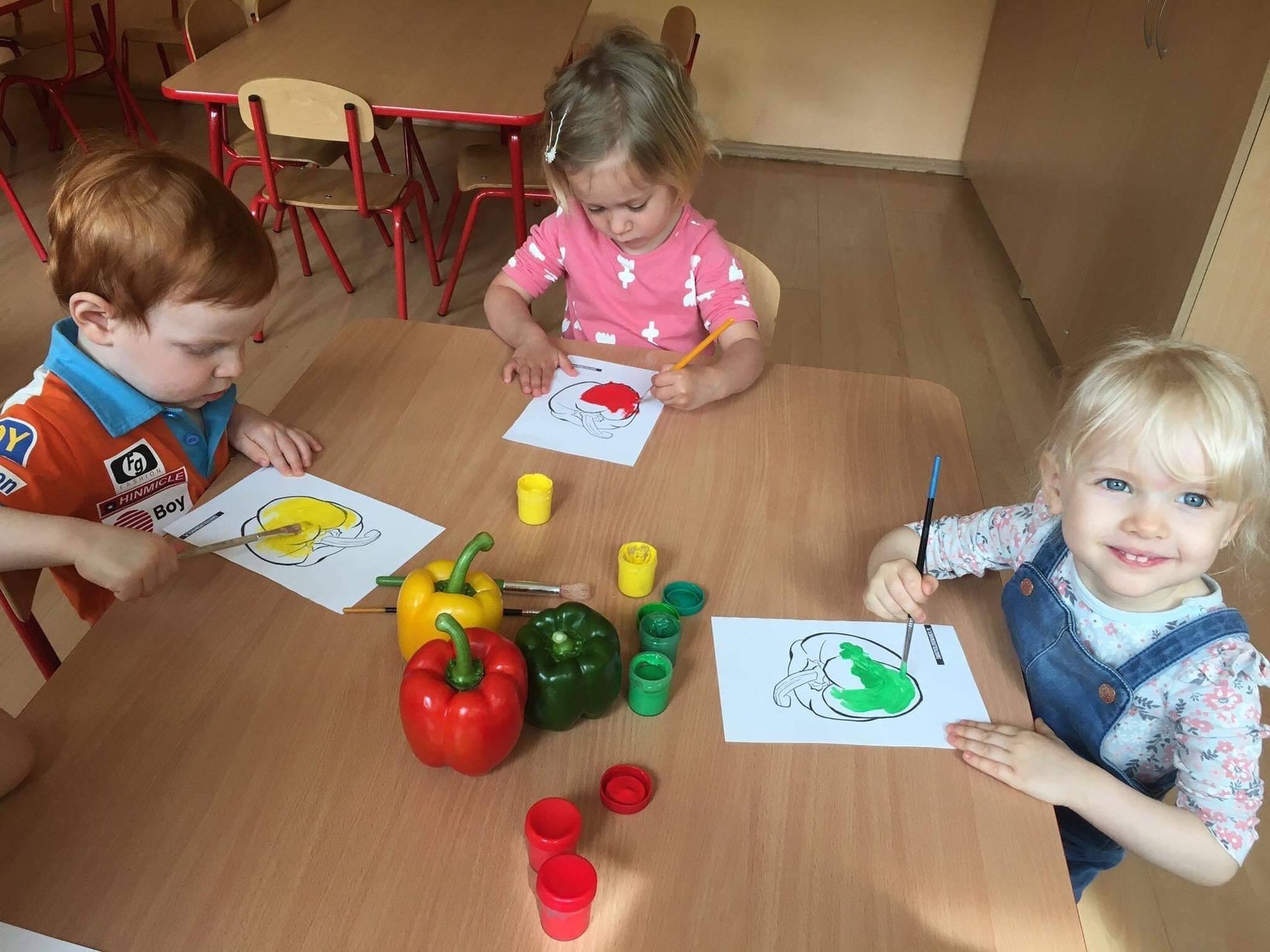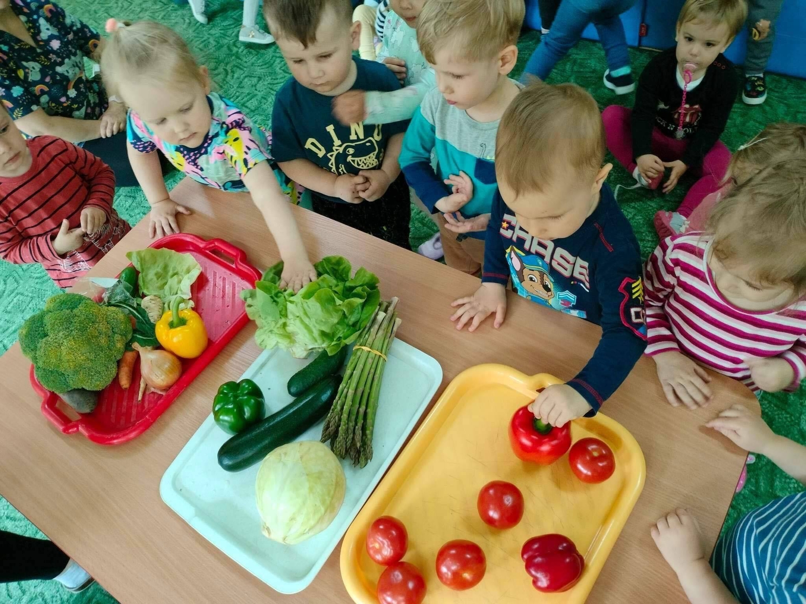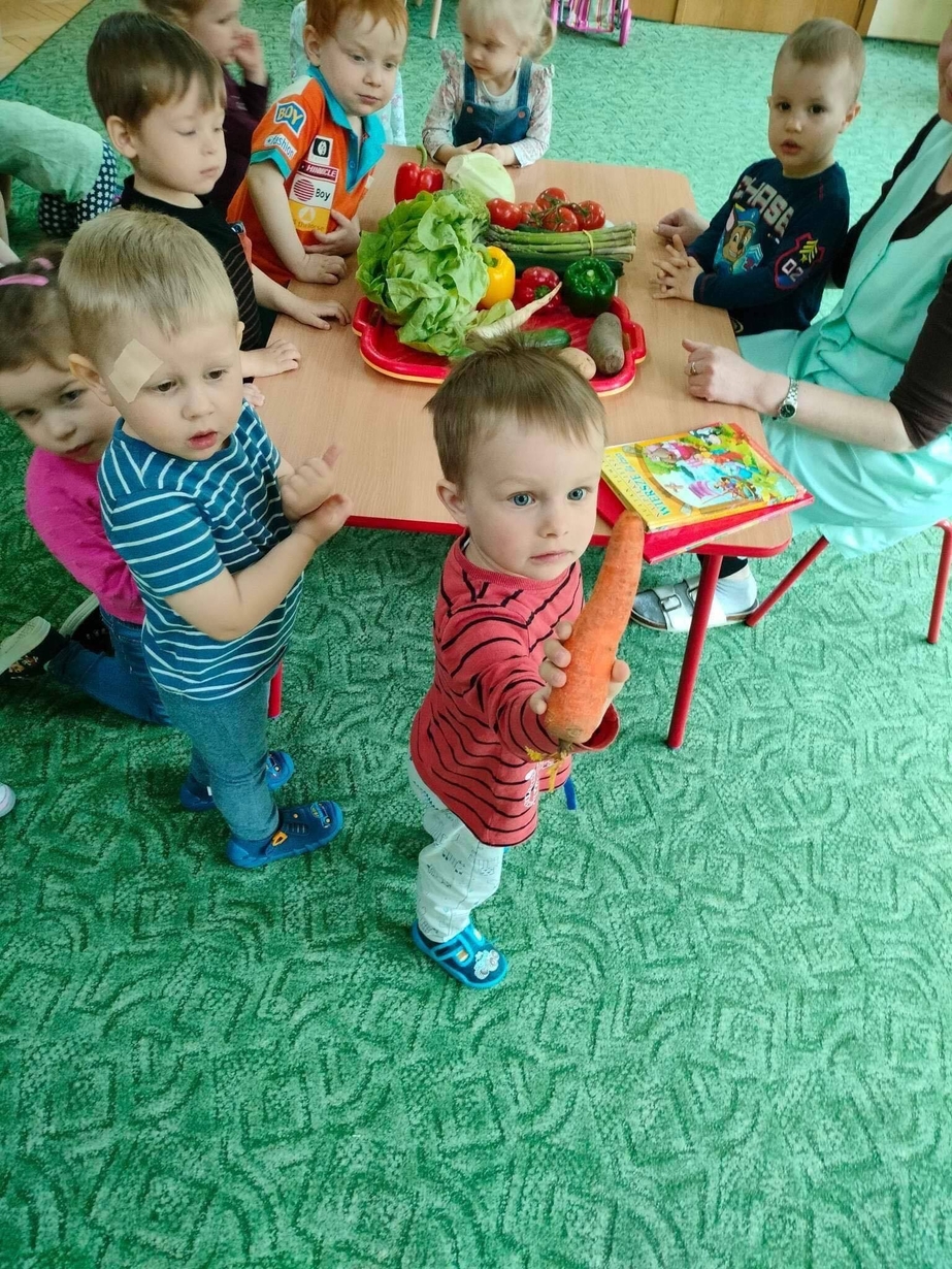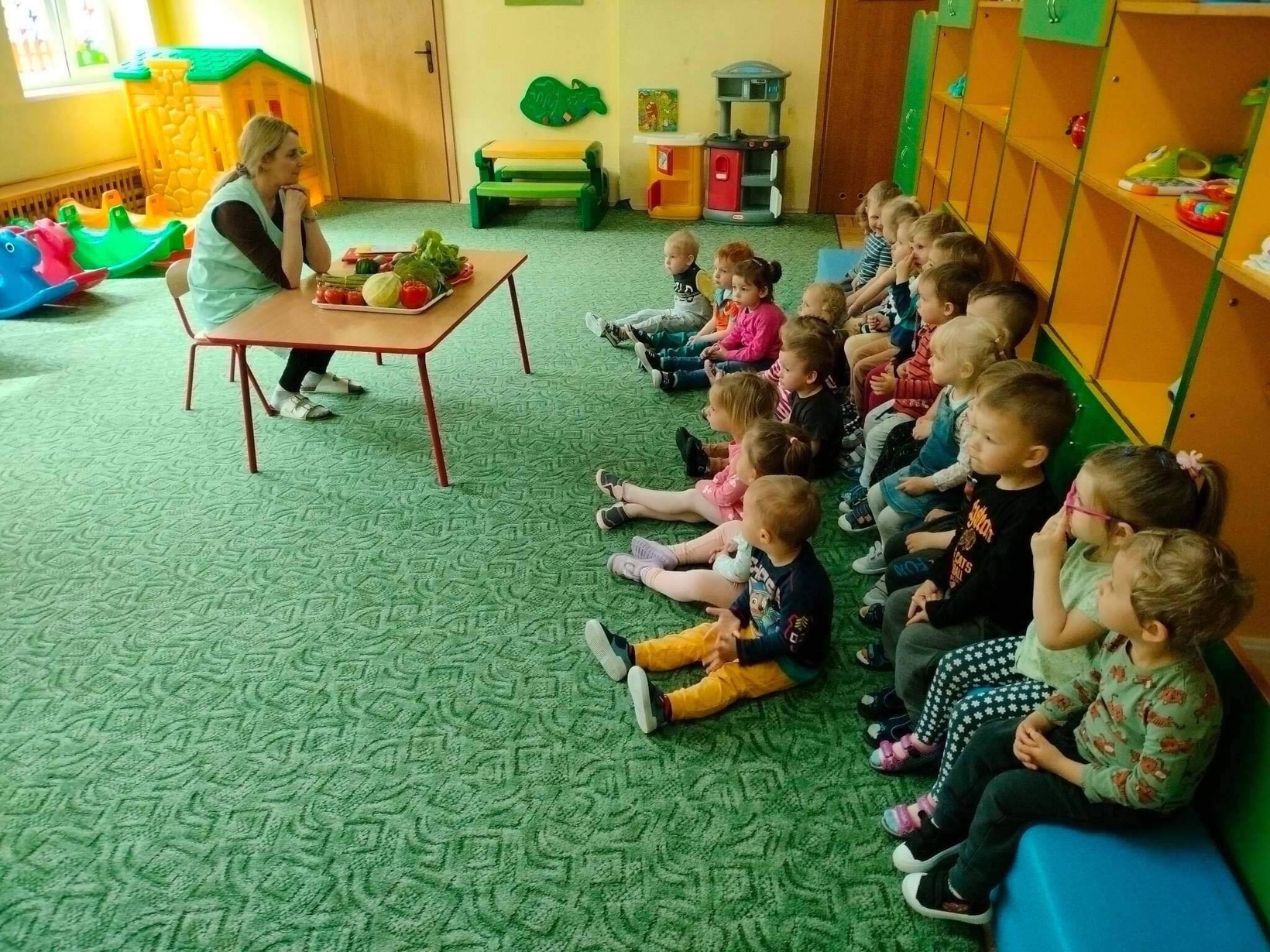 Dzieci z grupy „Misie” poznawały różne warzywa, ich wygląd i nazwy. Wykonały pracę plastyczną oraz uczestniczyły w zabawie kształtującej sprawność ruchową.