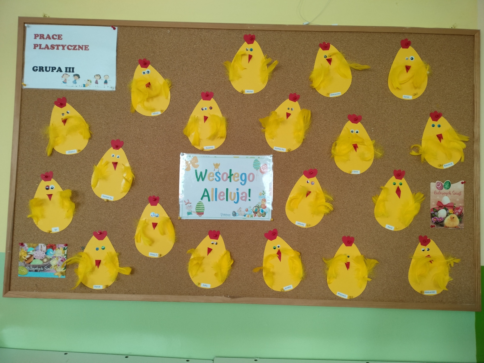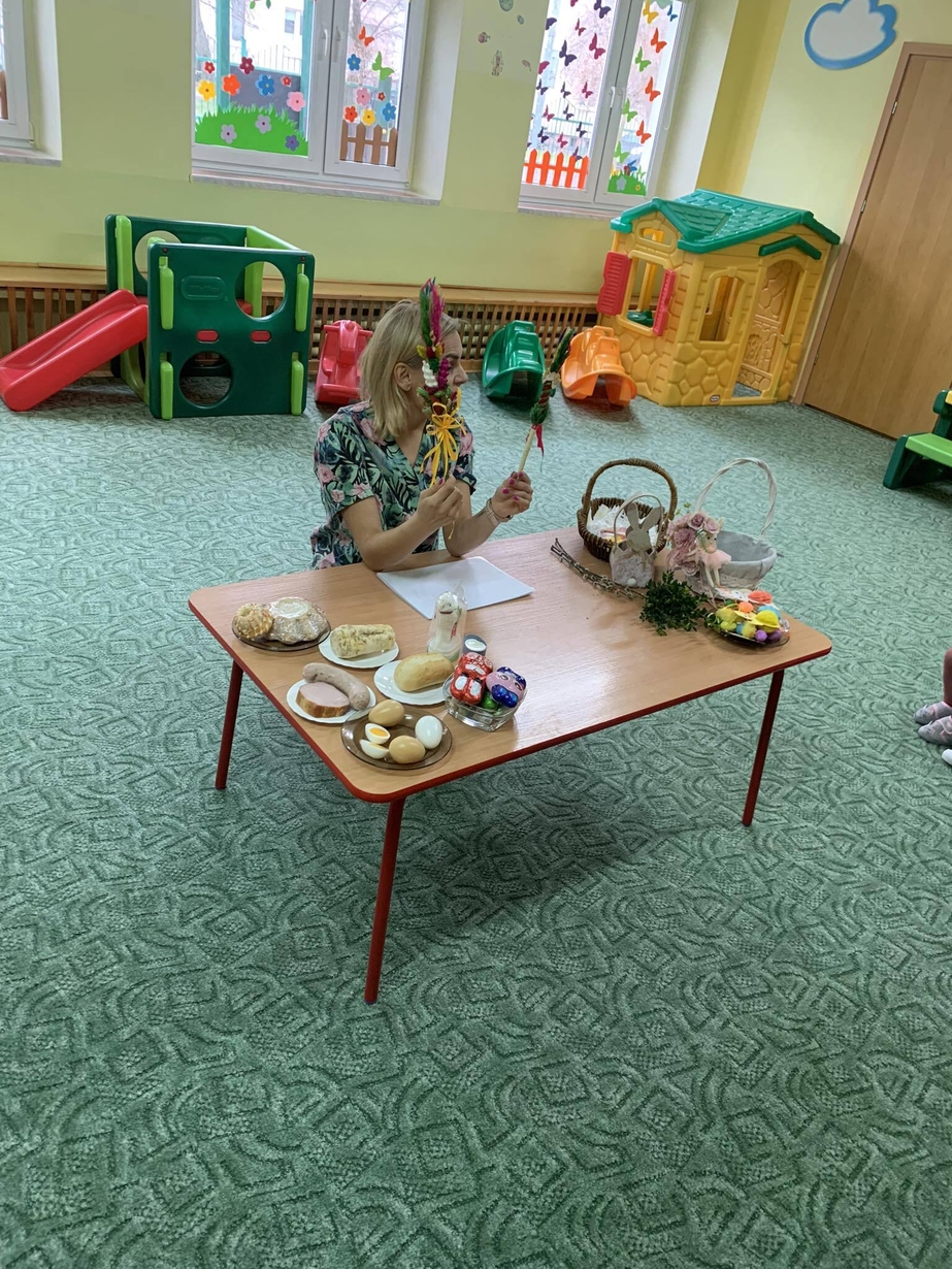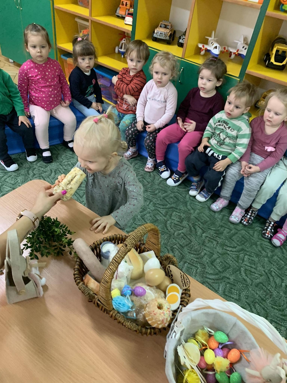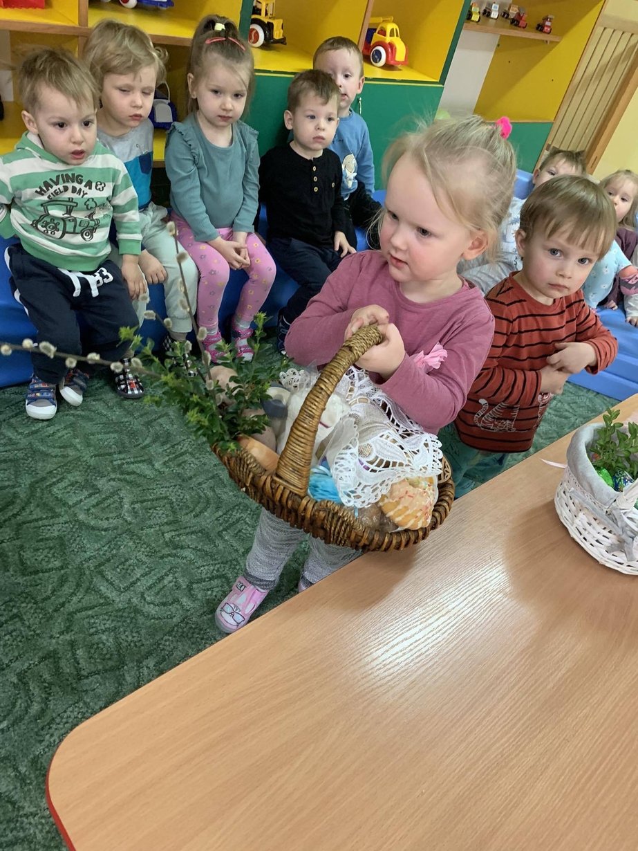 Dzieci uwielbiają przygotowania do świąt, jednak na pewno nie wszystkie tradycje i zwyczaje są im dobrze znane. Dzisiejszy dzień był okazją do rozmowy o symbolice świąt i towarzyszących im obyczajach??. Jedną z tradycji jest przygotowanie koszyczka wielkanocnego z pokarmami, które po poświęceniu wykładamy na stół w Wielką Niedzielę. Dziś wspólnie przygotowaliśmy święconkę w koszyczku?. Dzieci zobaczyły oraz dotykały rzeczy, które według tradycji powinny się obowiązkowo w tym świątecznym koszyku znaleźć. Przygotowaliśmy także świąteczne kurczaczki, które pięknie zdobią nasz żłobkowy hol.