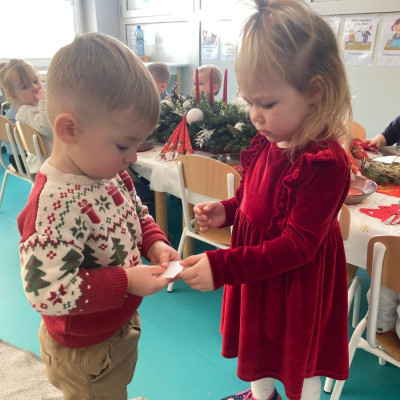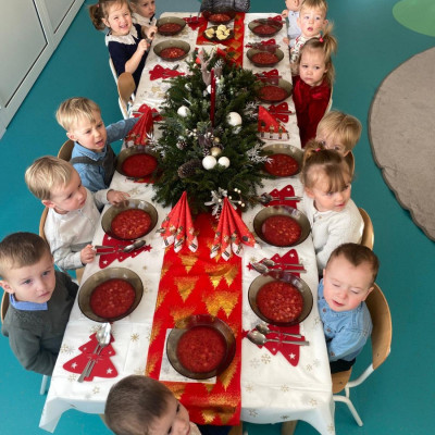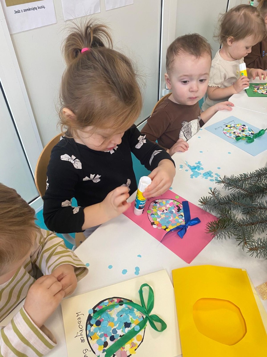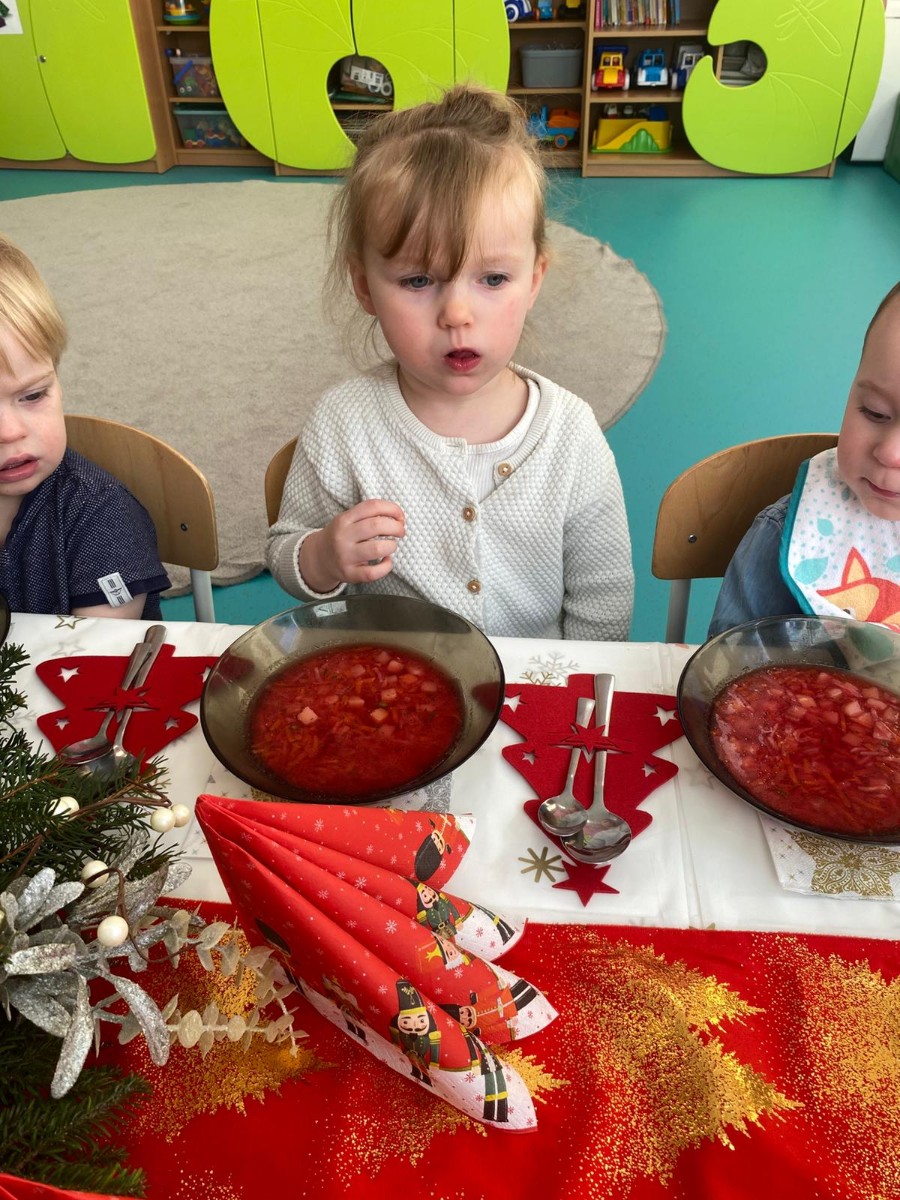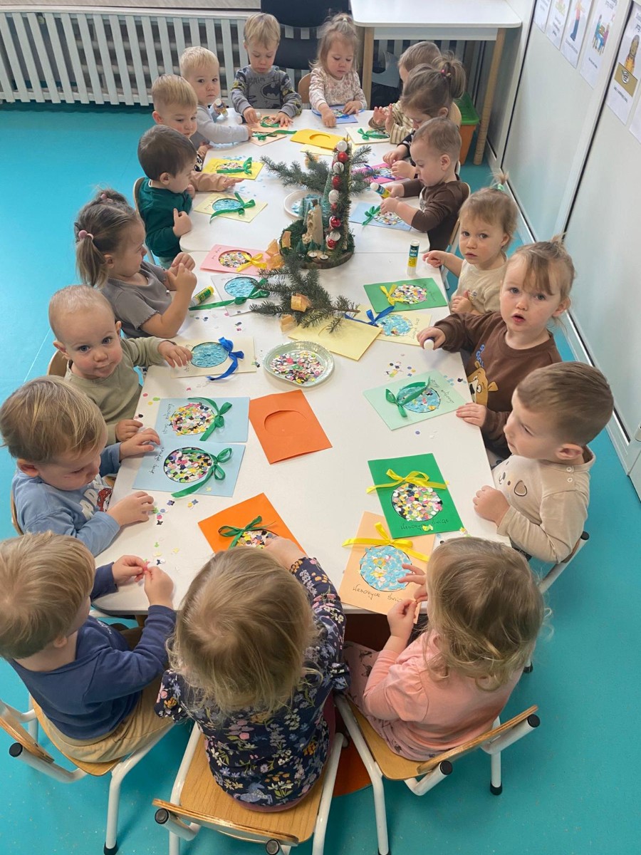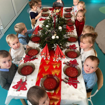 Święta Bożego Narodzenia to magiczny czas. Dla wielu z nas jest to dzień niezwykle radosny ,spędzony w gronie najbliższych.W dniu 19.12.2025r. w grupie Żabek odbyła się Wigilia . Dzieci wspólnie śpiewały kolędy ,składały sobie życzenia oraz dzieliły się opłatkiem. Panowała radosna i świąteczna atmosfera.Spotkanie miało na celu kultywowanie tradycji Bożonarodzeniowych oraz integrację dzieci w grupie.