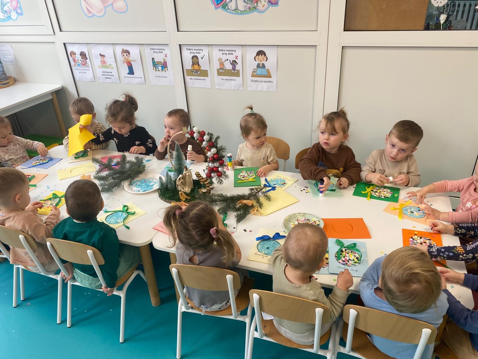 zdjęcia przedstawiają dzieci przygotowujące się do Świąt Bożego Narodzenia.