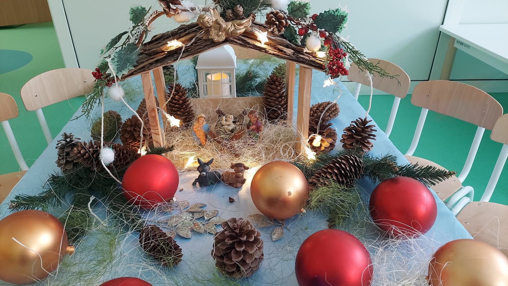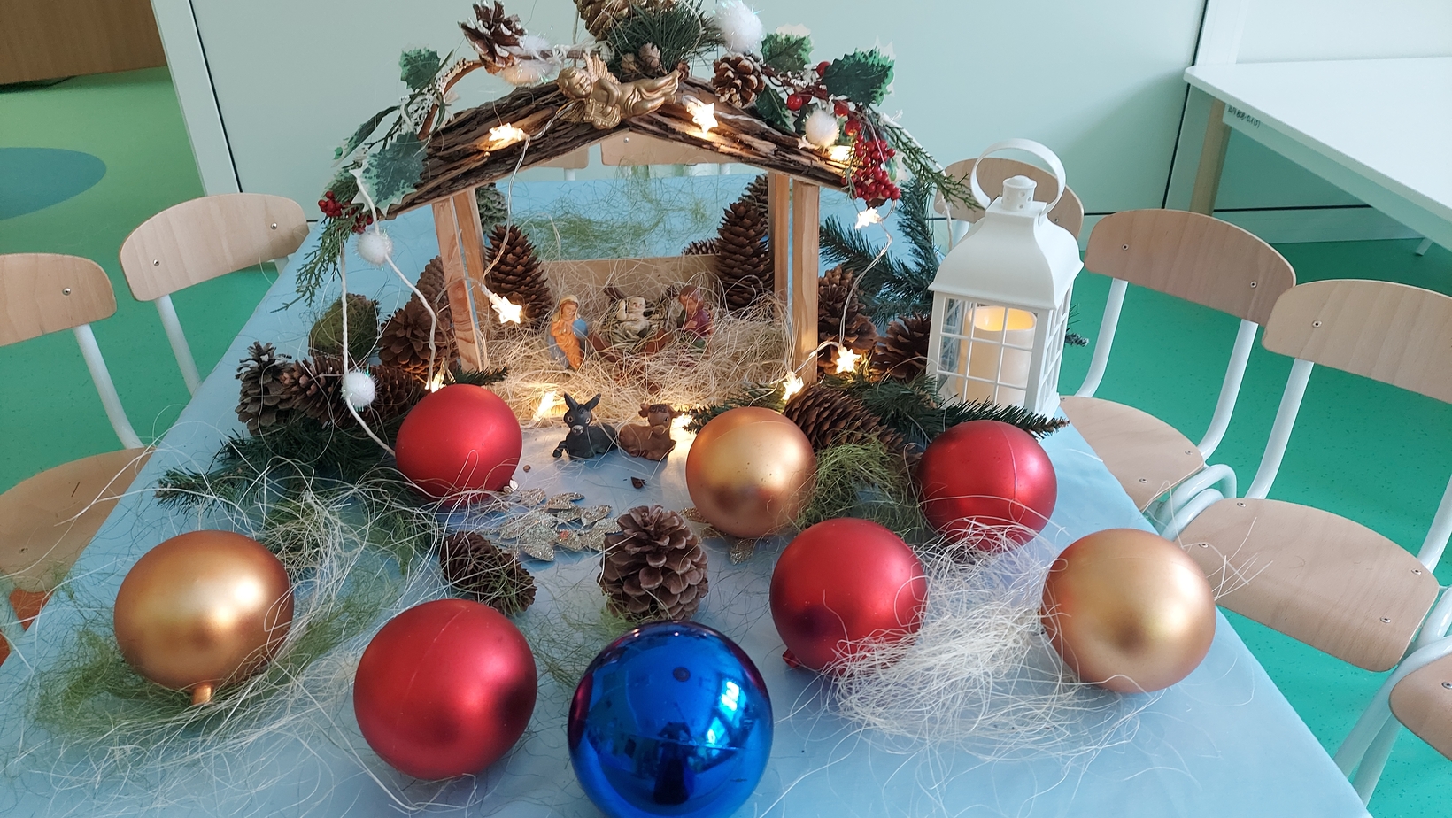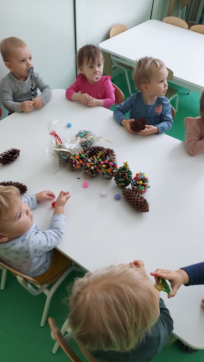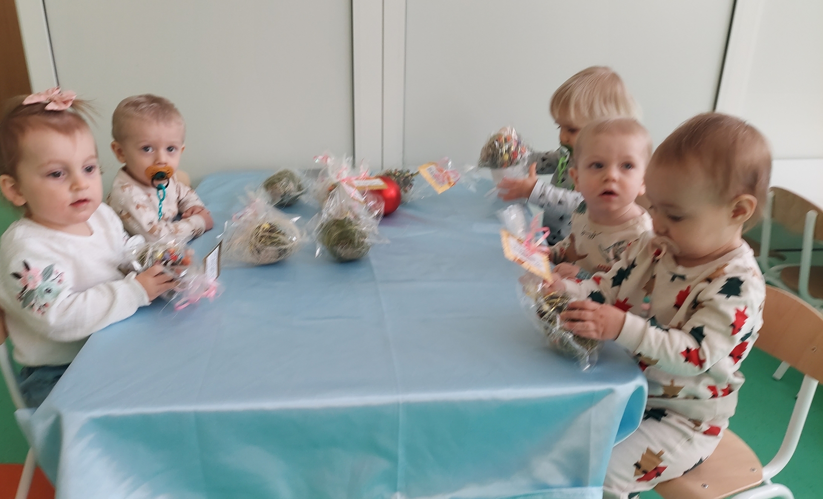 Dla wielu z nas jest to dzień niezwykle radosny, spędzony w gronie najbliższych. Także w  naszej  grupie , nastąpił wspaniały moment  Wigili. Wszyscy zgromadziliśmy się wokół stołu podziwiając małą szopkę pięknie przystrojoną, i przy dzwiękach gitary, bębenka i tamburyna razem śpiewaliśmy kolędy, świąteczne piosenki, a na koniec składaliśmy sobie  życzenia. Tego dnia dzieci również zabrały dla  swoich najbliższych mały prezent na  święta. Były to małe choineczki które,wcześniej  zrobiły wraz z paniami. Ten dzień  spędziliśmy pięknie utrwalając dzieciom znajomośc tradycji i zwyczajów świątecznych.