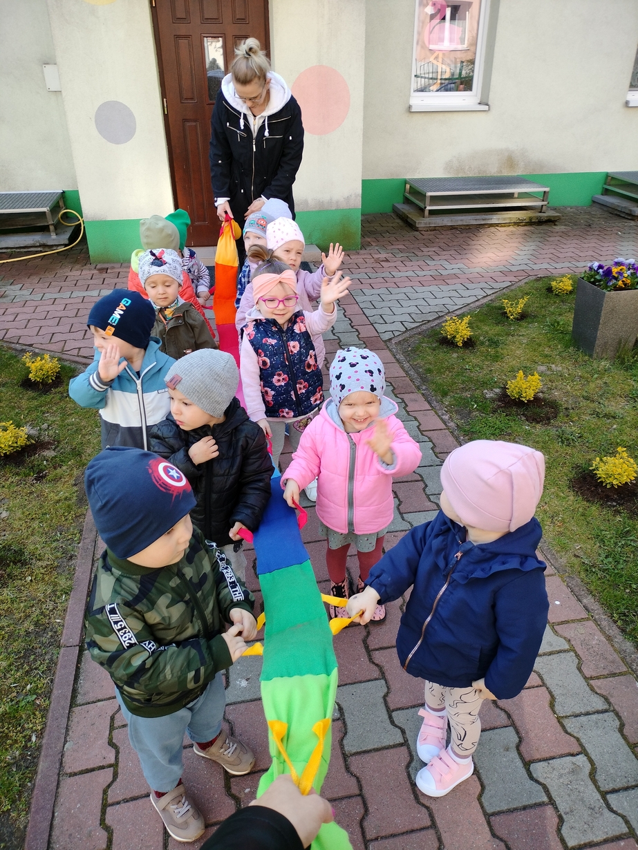 Korzystając z pięknej pogody ? postanowiliśmy wyruszyć na spacer dookoła naszego żłobka. Dzieci w towarzystwie „węża" dzielnie wędrowały obserwując z zaciekawieniem, jak wiosna na dobre rozgościła się w przyrodzie??. Po udanym spacerze był czas na zabawę i odpoczynek☺️☺️☺️.