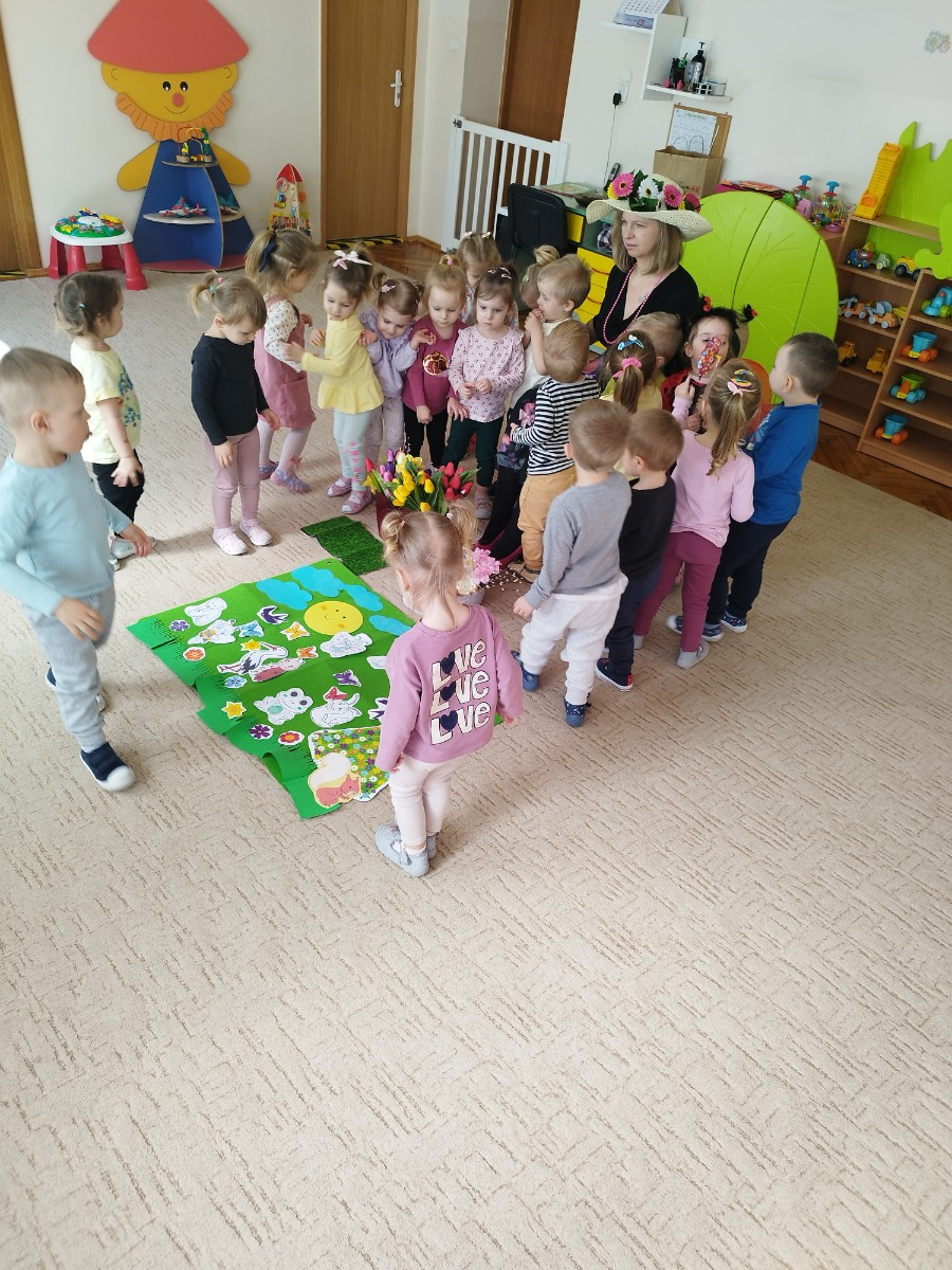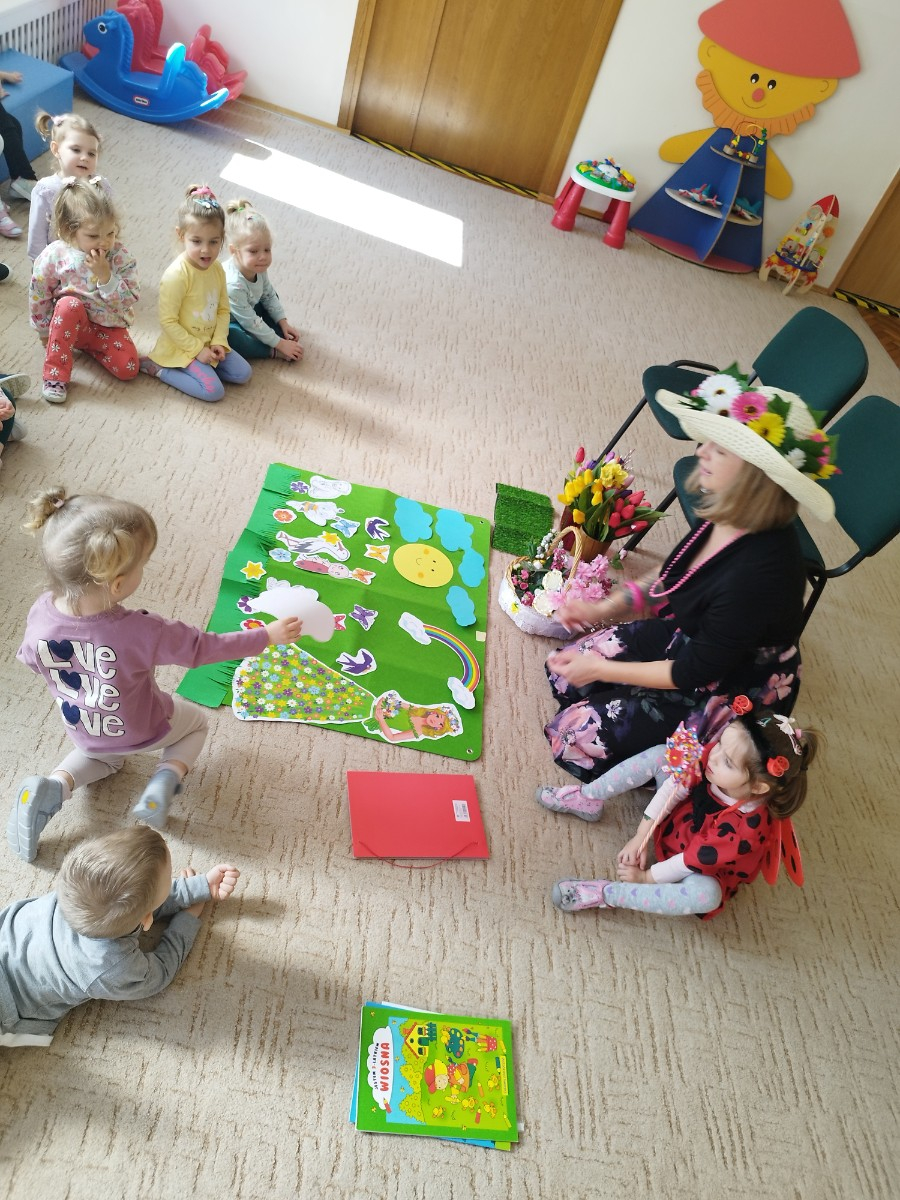 Urośnie młoda trawa, rozwiną się pąki na drzewach. Dla ciebie miłe słoneczko każdy ptaszek zaśpiewa. Wiosna, wiosna już tuż, tuż. Płaszcz słomiany spada z róż, Pączki ma już każdy krzak - To jest wiosny pierwszy znak.
