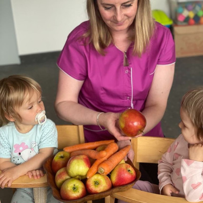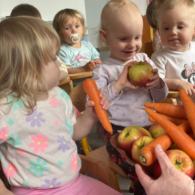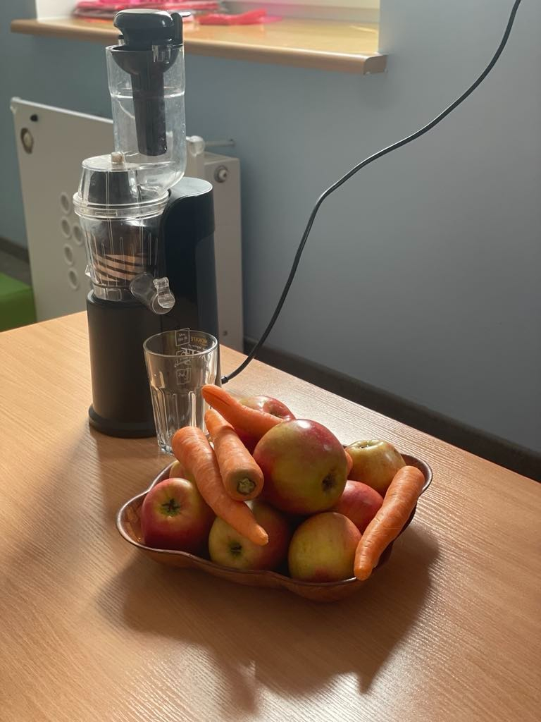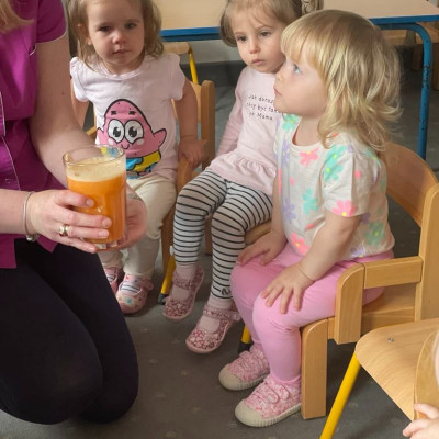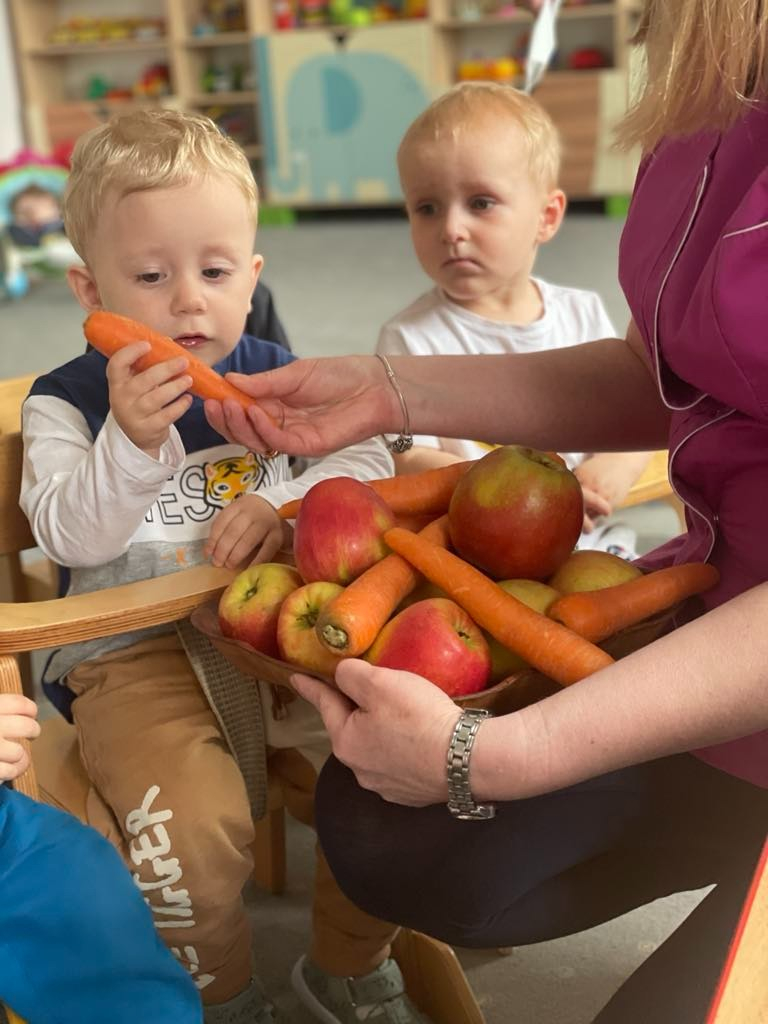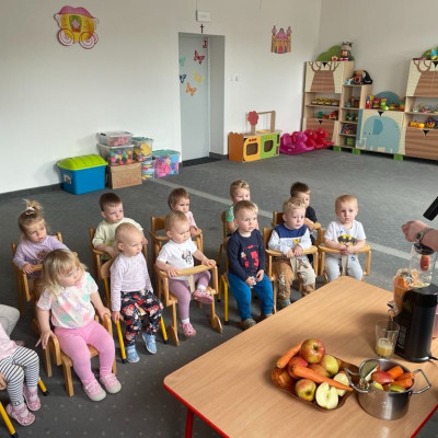 Aby być zdrowym trzeba się dobrze odżywiać, a najwięcej witamin mają owoce i warzywa. „Biedroneczki “ dowiedziały się jak zrobić pyszny sok z marchewki i jabłka. Na końcu delektowały się jego smakiem.