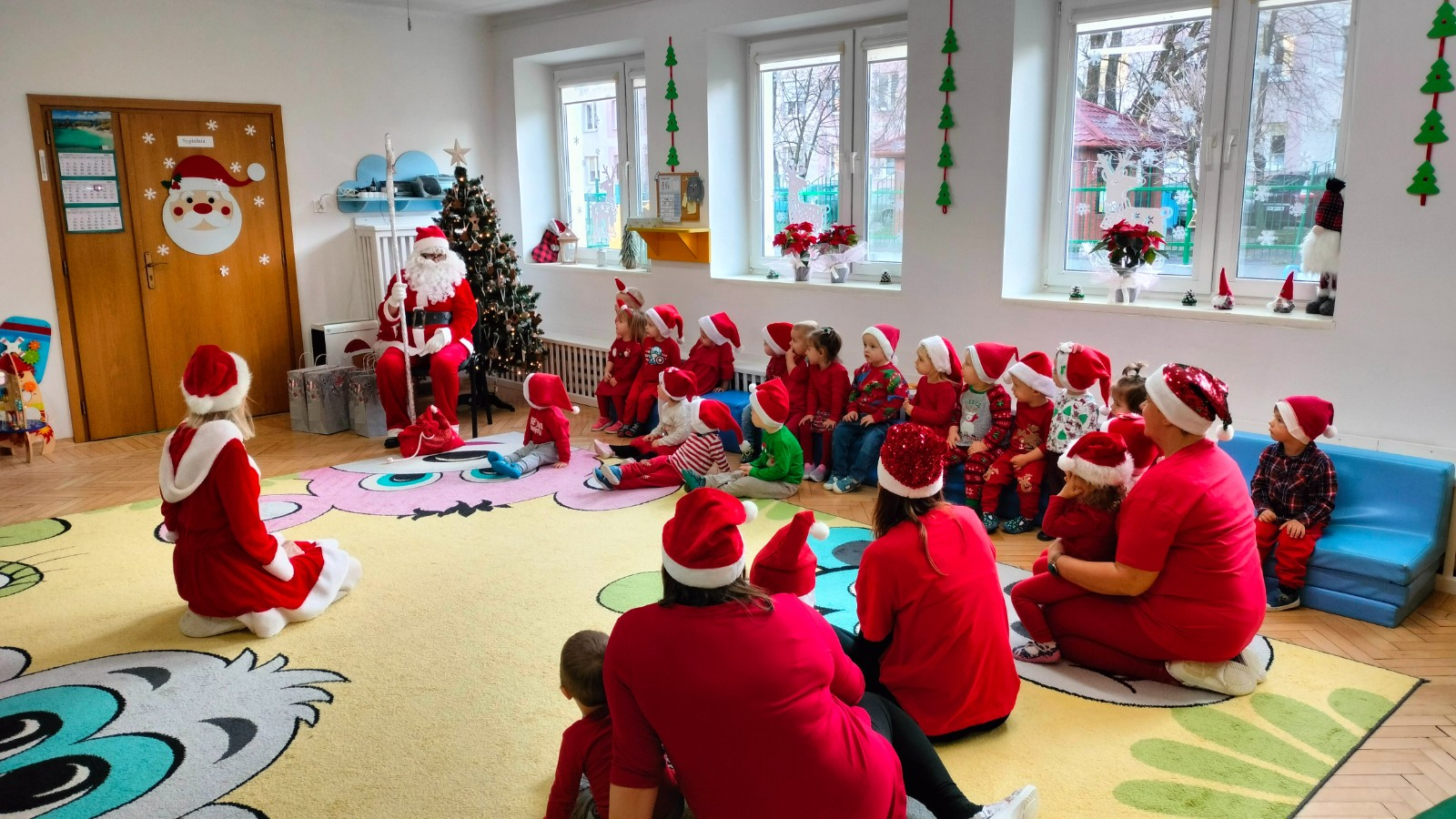 Zdjęcia przedstawiają dzieci podczas wizyty Świętego Mikołaja