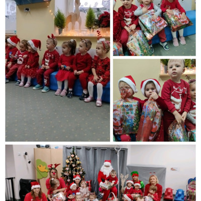 Dzieci z ogromnym zaciekawieniem i radością powitały Mikołaja, niektóre z lekką nieśmiałością, inne z entuzjazmem i głośnymi okrzykami radości. Były wspólne śpiewy, zabawy, pamiątkowe zdjęcia oraz oczywiście wręczanie prezentów🎄🎁🎅. To spotkanie było nie tylko pięknym przeżyciem, ale także wyjątkową okazją do budowania pozytywnych emocji.