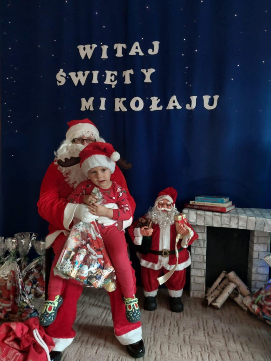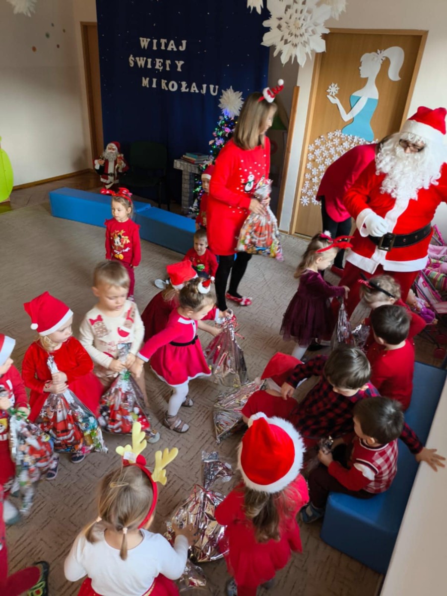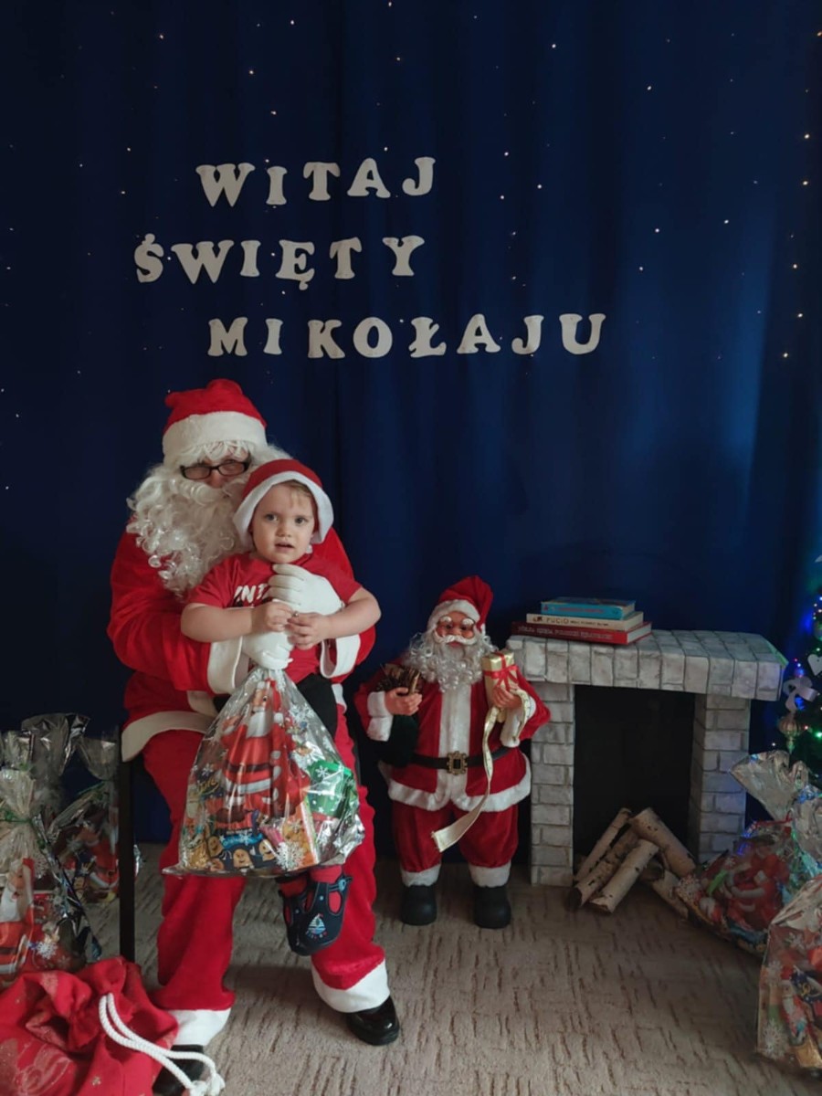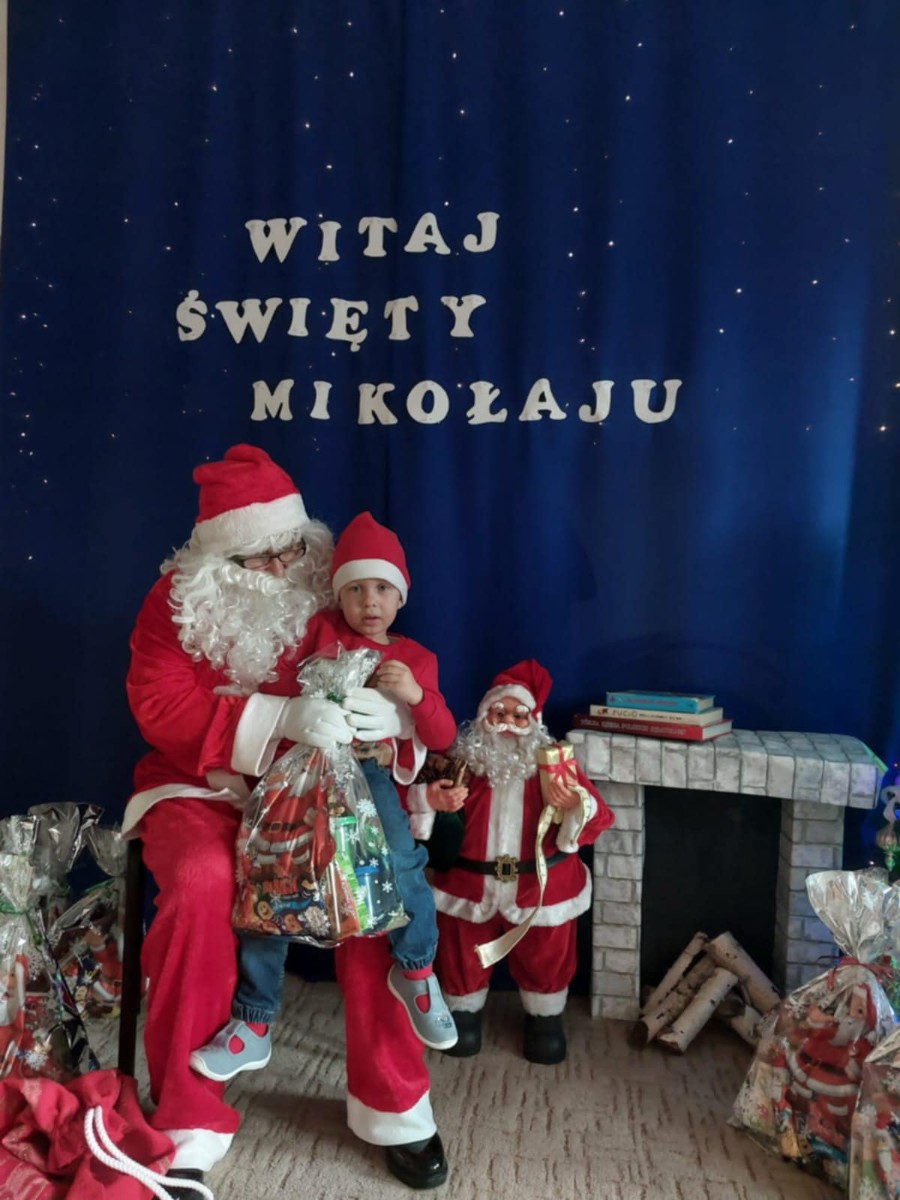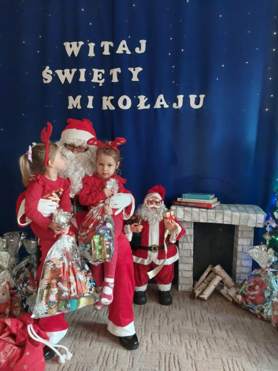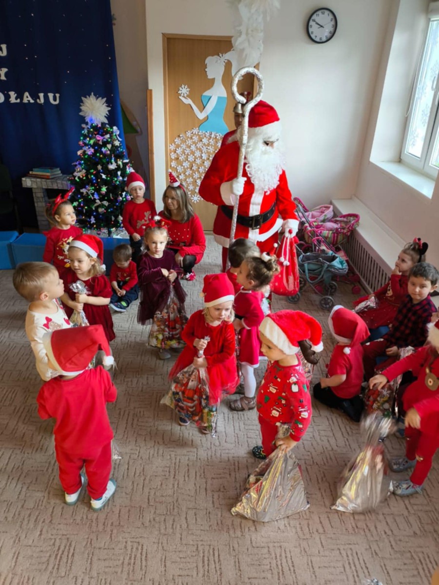 Zdjęcia przedstawiają dzieci podczas wizyty Świętego Mikołaja