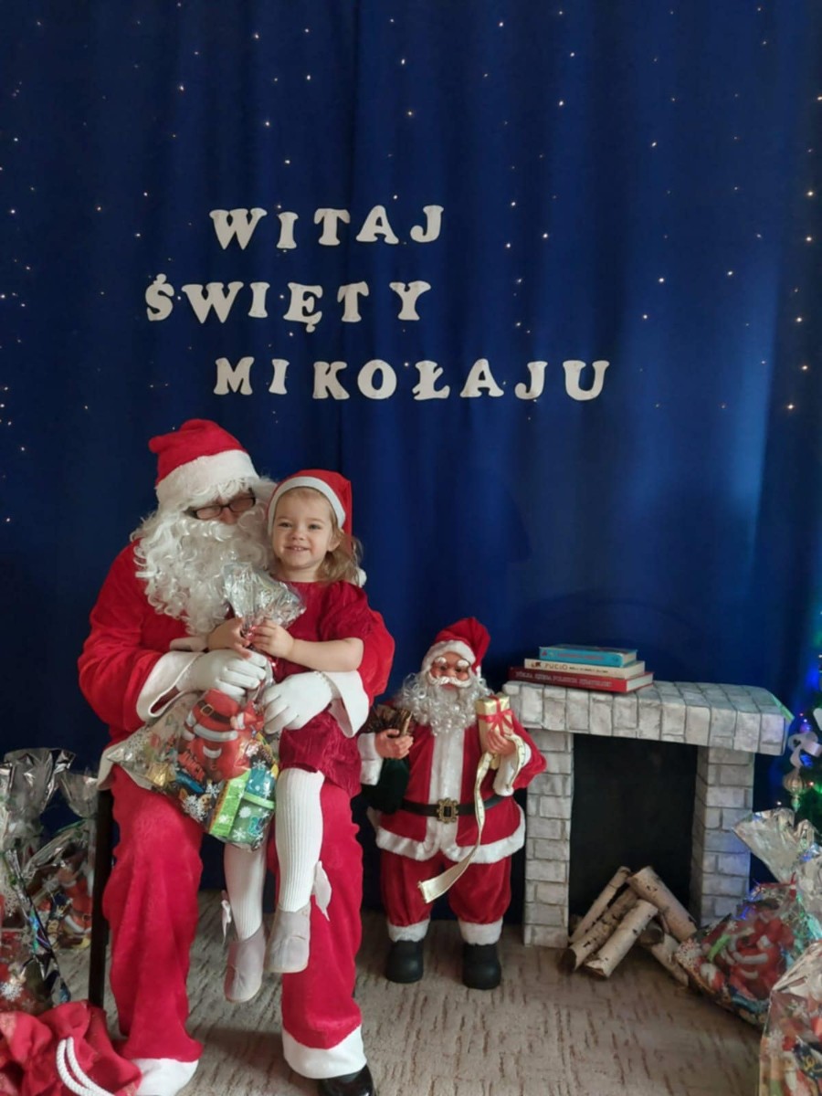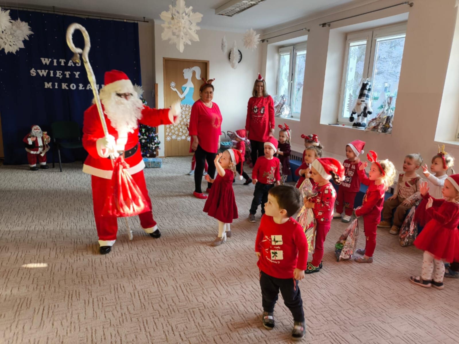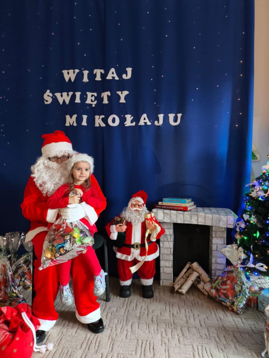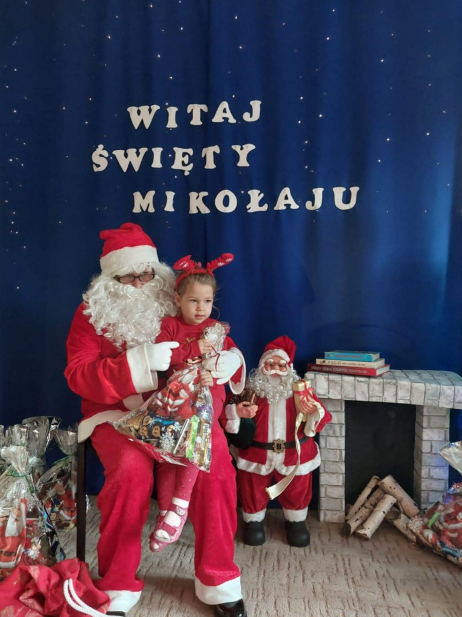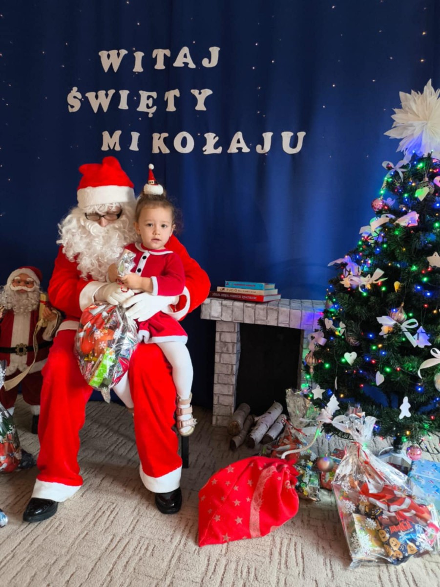 Zdjęcia przedstawiają dzieci podczas wizyty Świętego Mikołaja