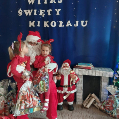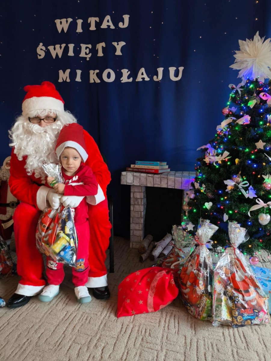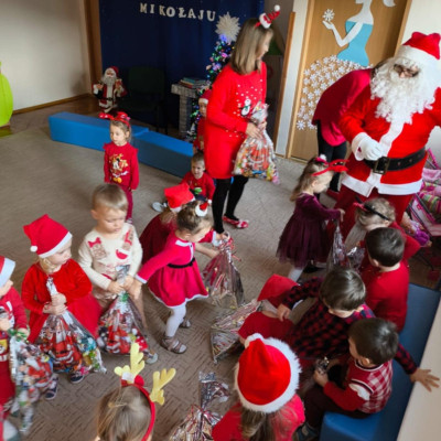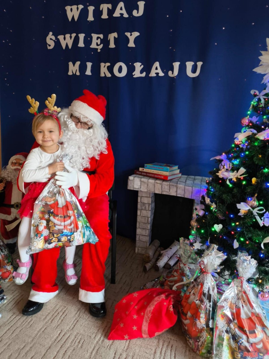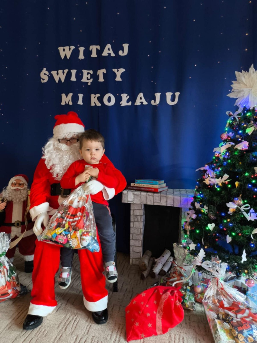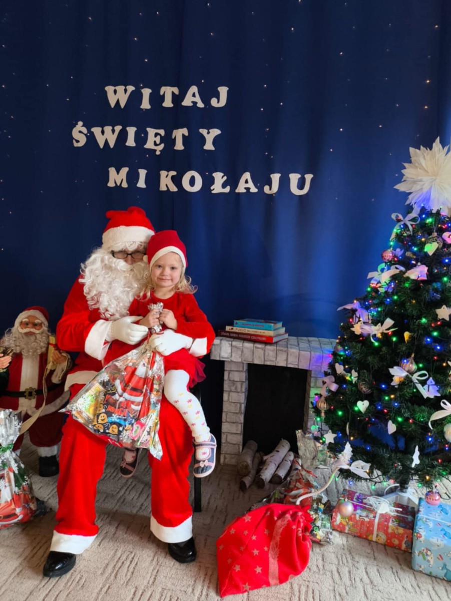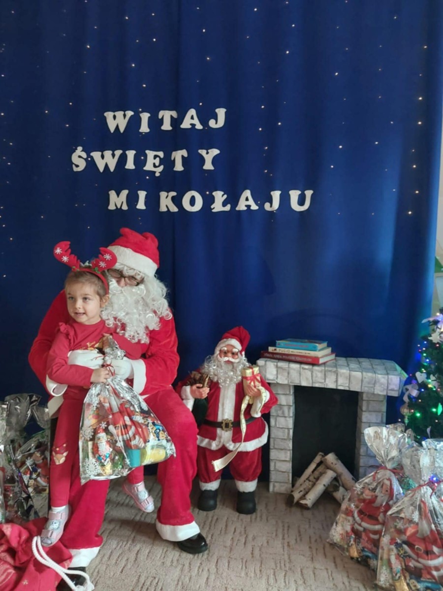 Zdjęcia przedstawiają dzieci podczas wizyty Świętego Mikołaja